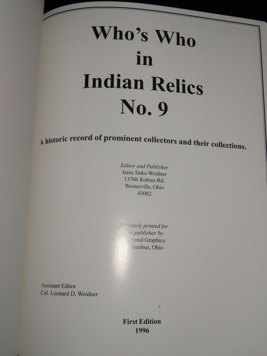 FIRST EDITION WHO’S WHO IN INDIAN RELICS #9, GREAT CONDITION, HARDBACK, 400 PAGES, MANY GREAT COLLECTIONS PICTURED HERE