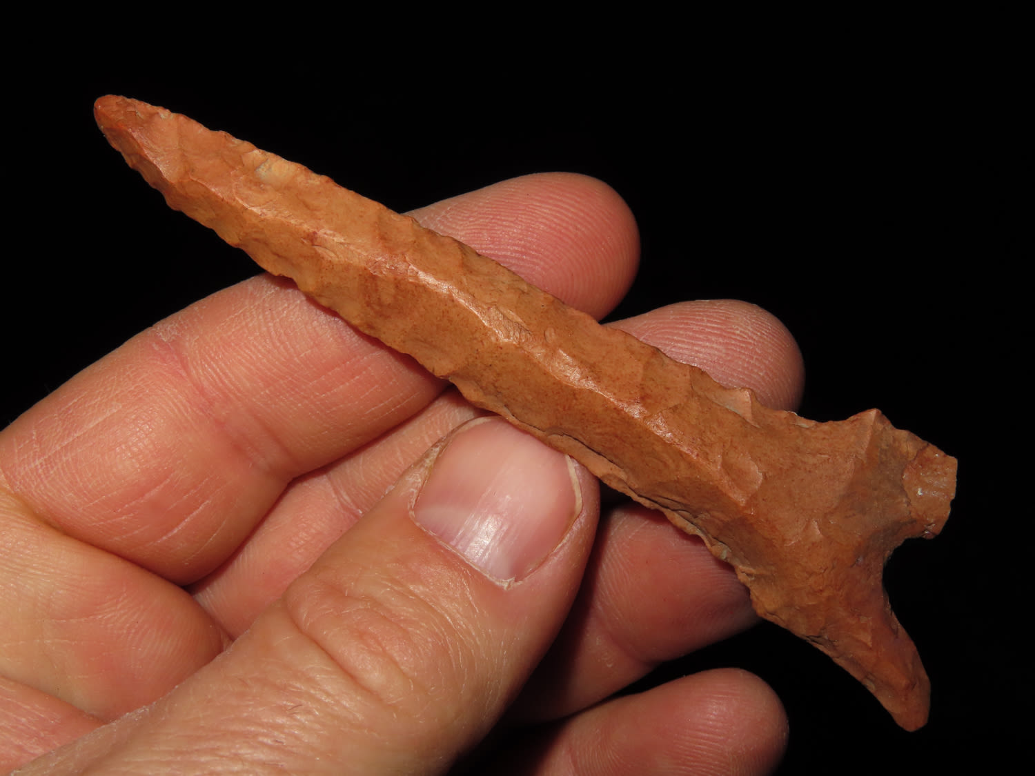 HUGE 3 7/8″ CLASSIC DALTON DRILL FOUND IN SALINE COUNTY MISSOURI, VERY WELL FLAKED EXAMPLE,INDIAN ARROWHEAD, ARTIFACT