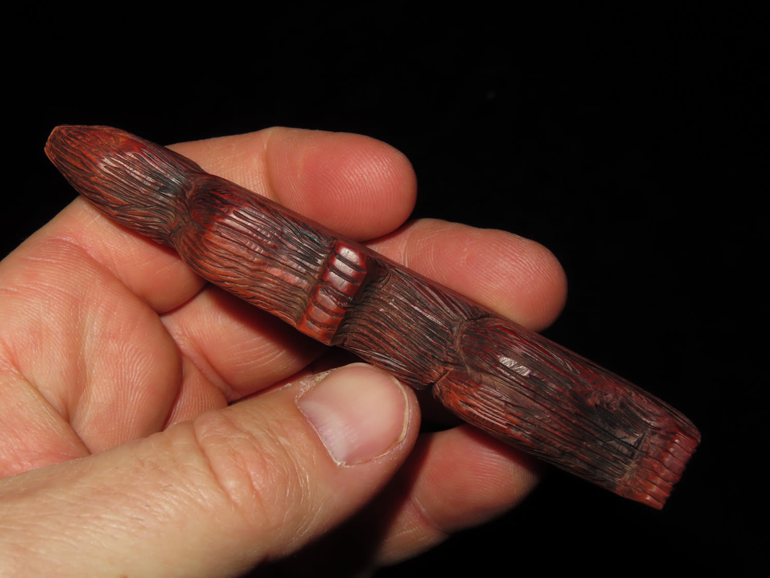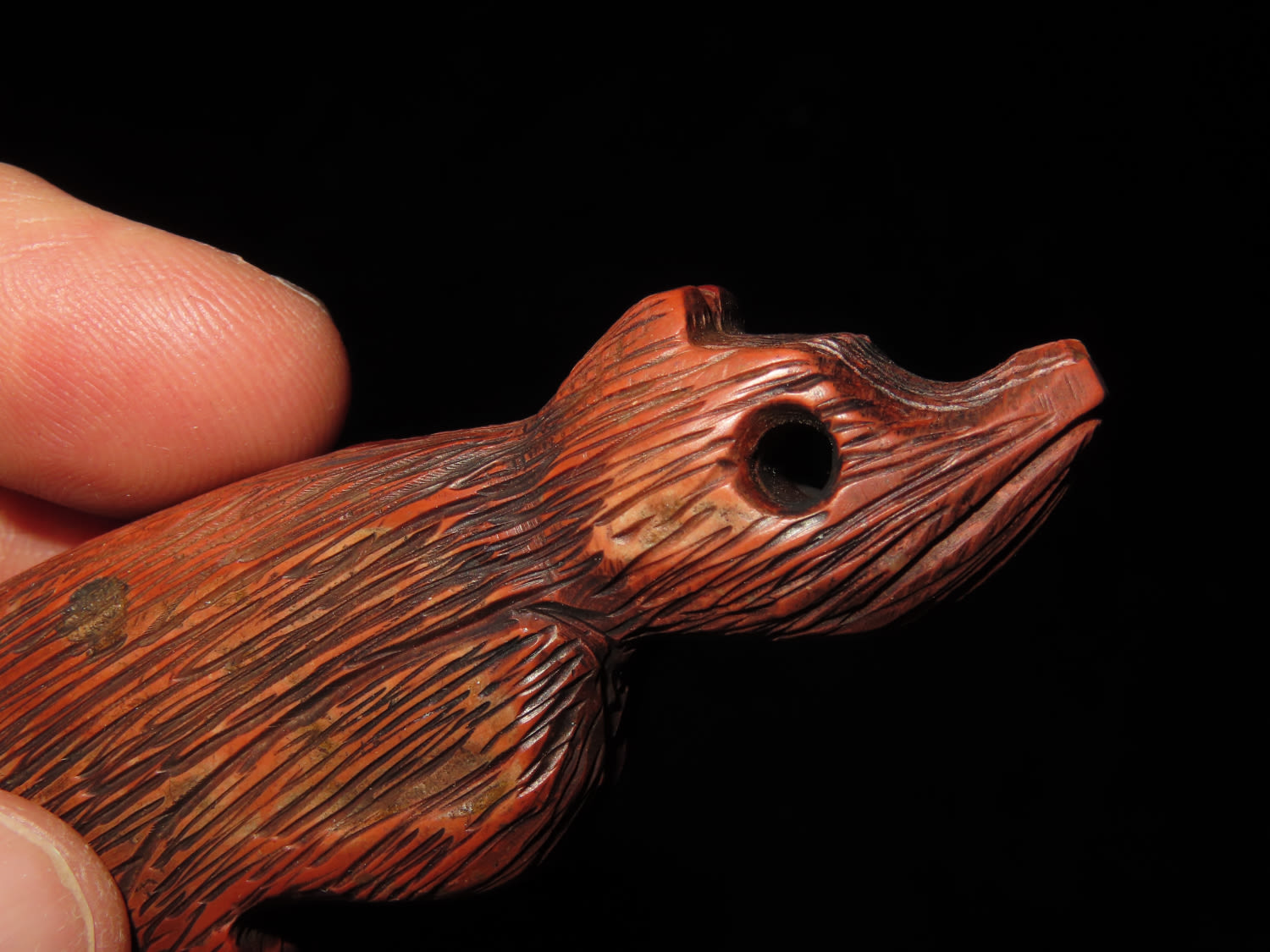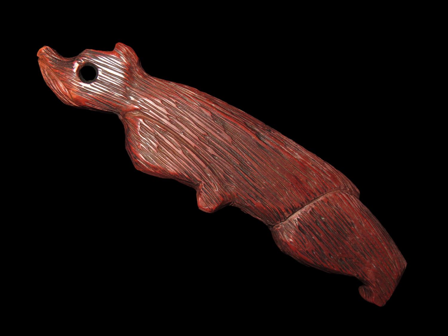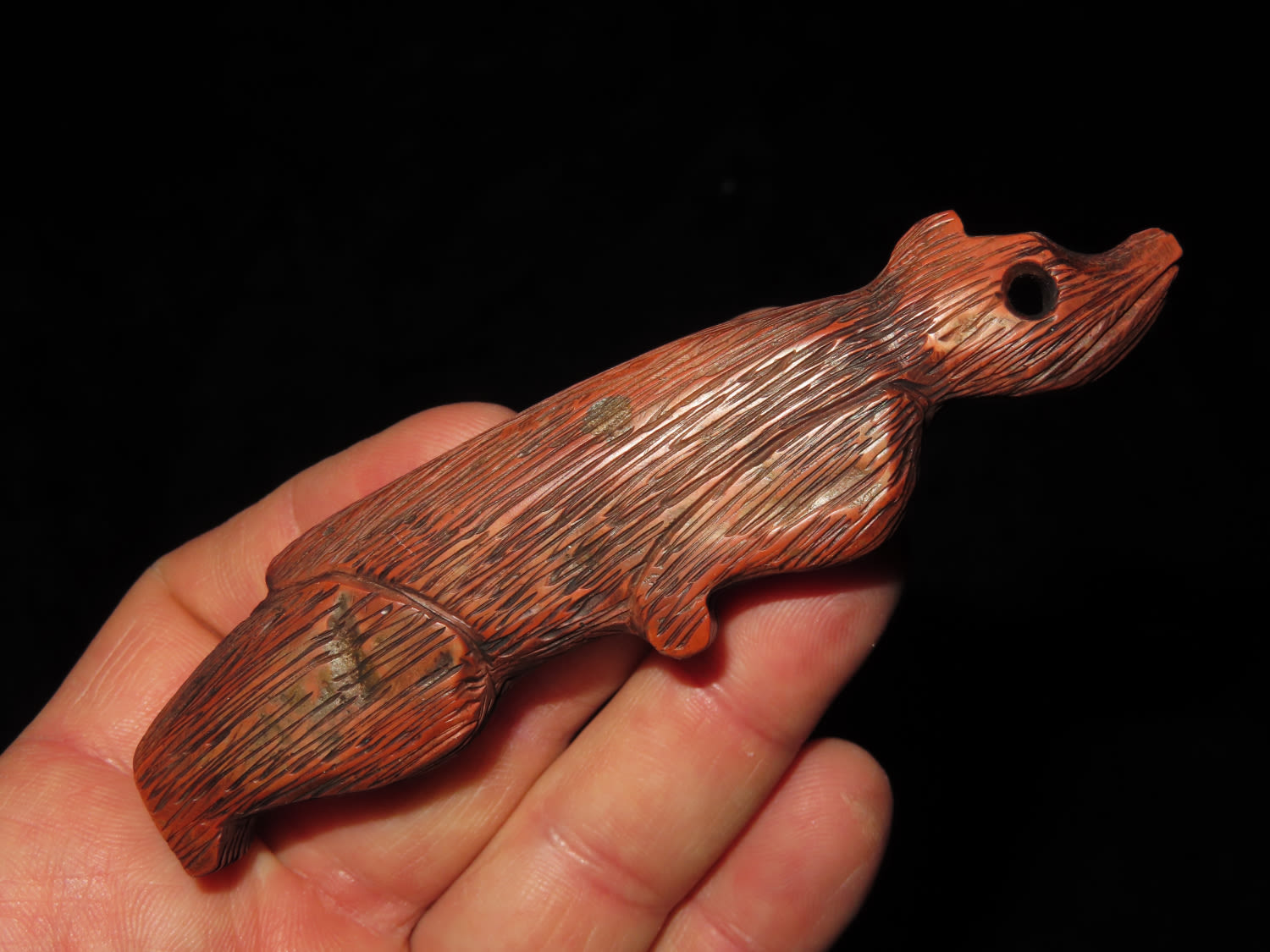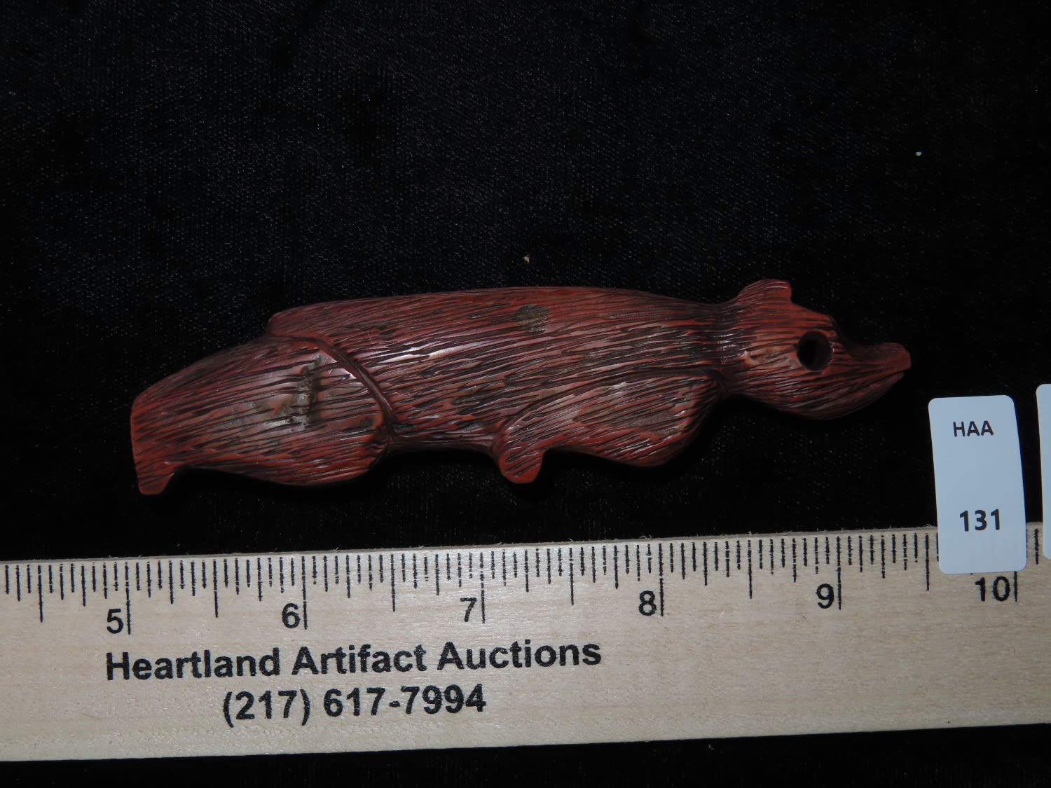 4 1/4″ CATLINITE HISTORIC SOUIX BEAR EFFIGY PENDANT FOUND NEAR HIGGINS MINNESOTA, EX ROBIN DUPPS COLLECTION