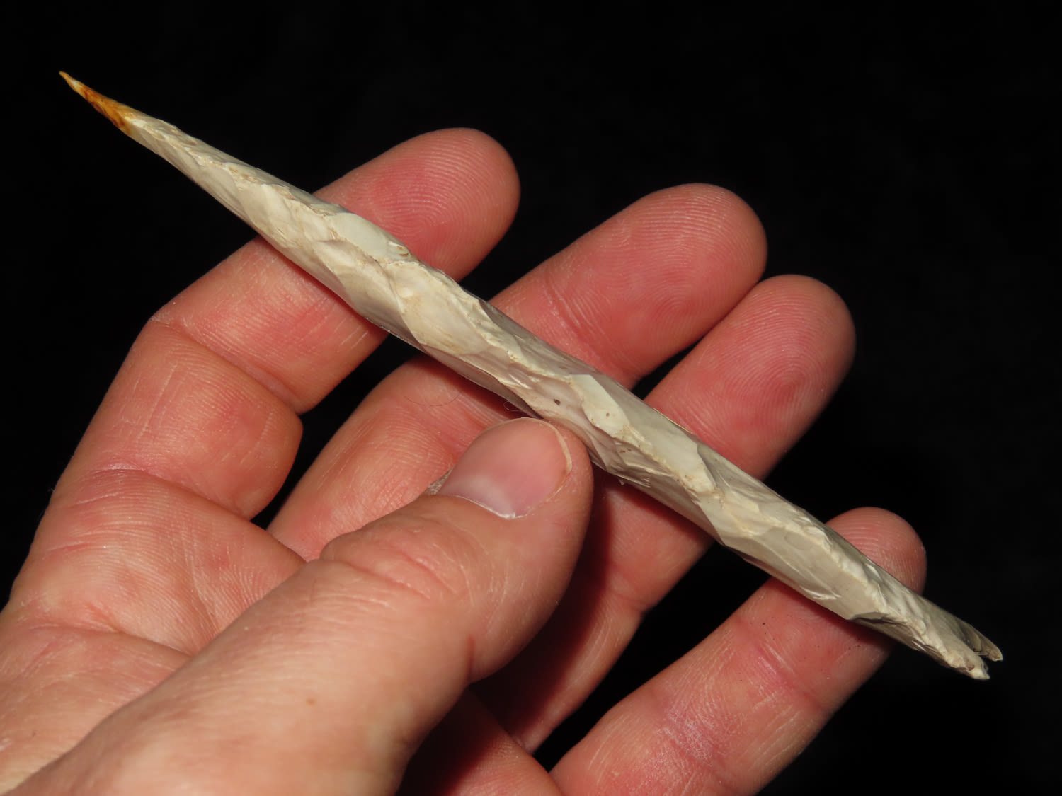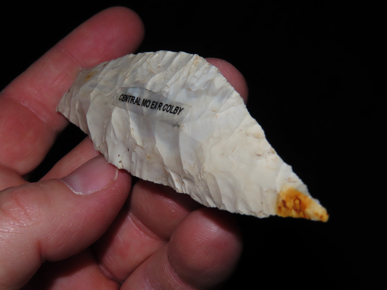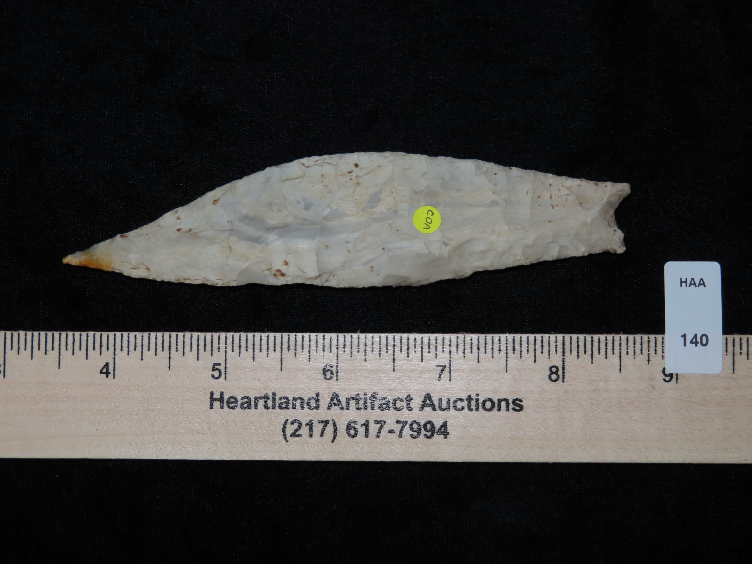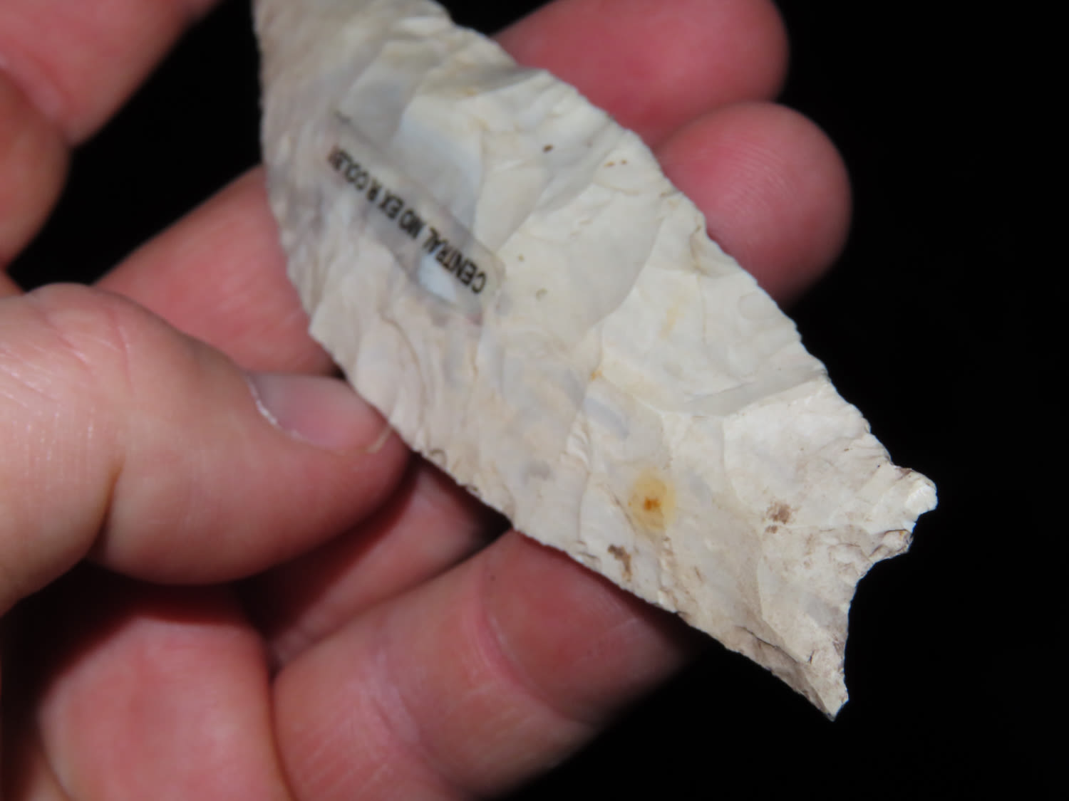 5 1/8″ NEEDLE TIPPED FISHTAIL SEDALIA, MOTLEY COA, EXCELLENT FLAKING, LONG DELICATE NEEDLE TIP, INDIAN ARROWHEAD, ARTIFACT