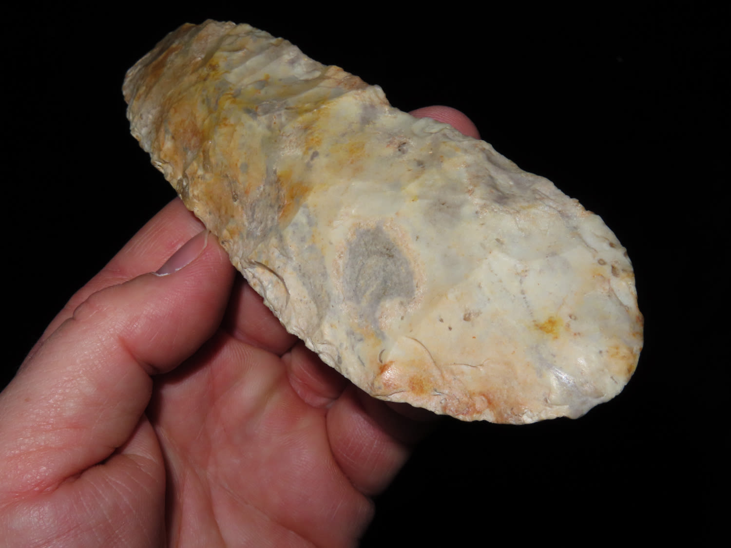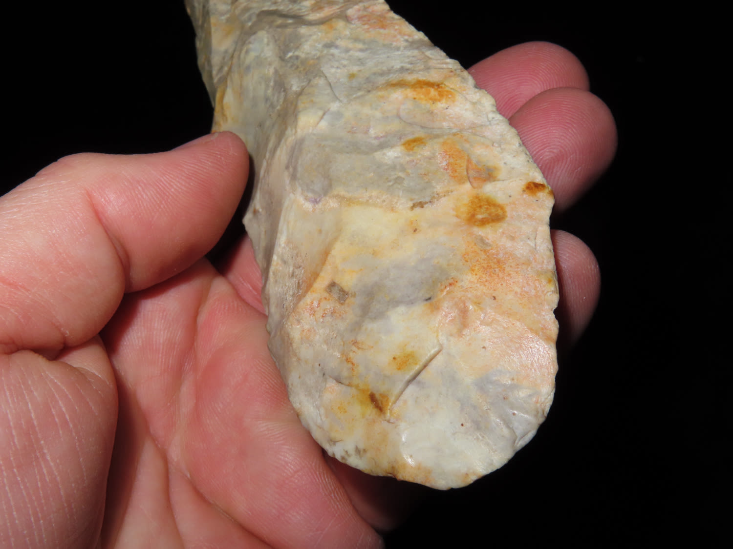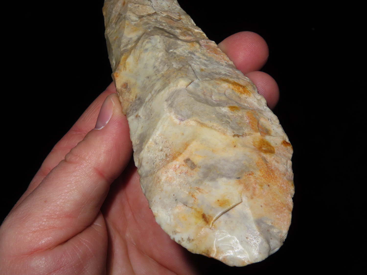 6 3/4″ SEDALIA DIGGER / SPADE, NICE SLICK BIT POLISH USE WEAR, FOUND IN COOPER COUNTY MISSOURI, VERY COLORFUL EXAMPLE