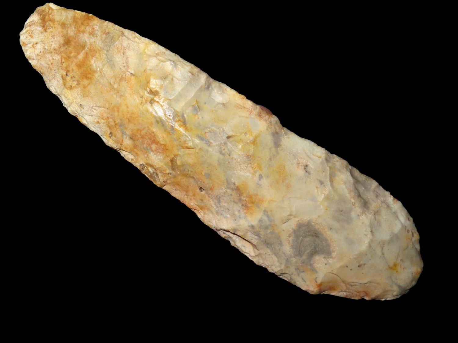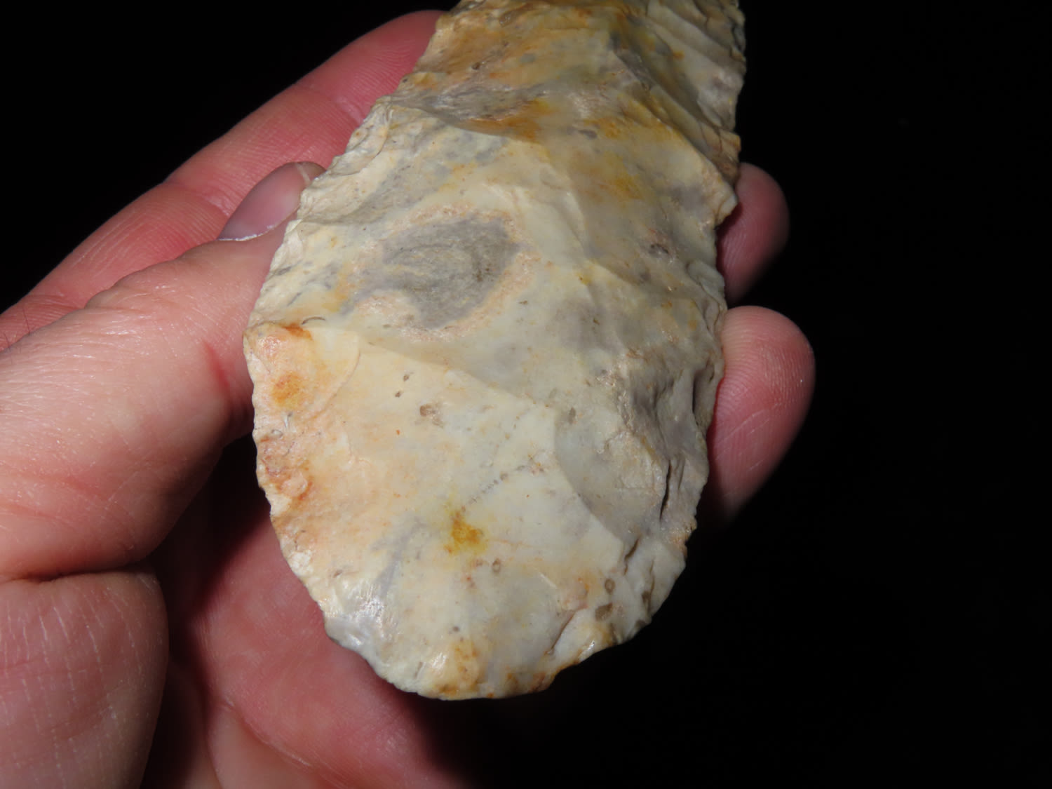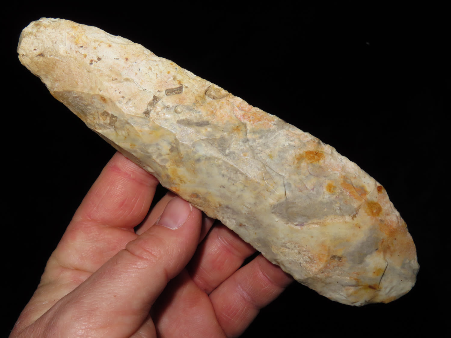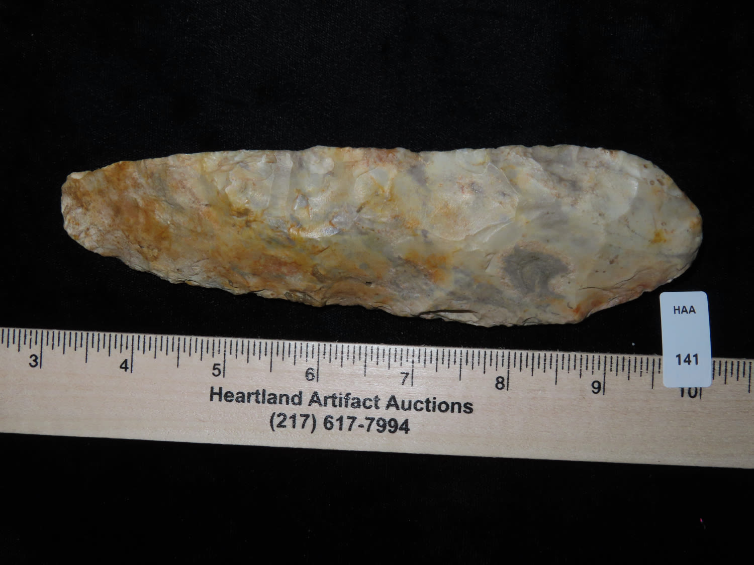 6 3/4″ SEDALIA DIGGER / SPADE, NICE SLICK BIT POLISH USE WEAR, FOUND IN COOPER COUNTY MISSOURI, VERY COLORFUL EXAMPLE