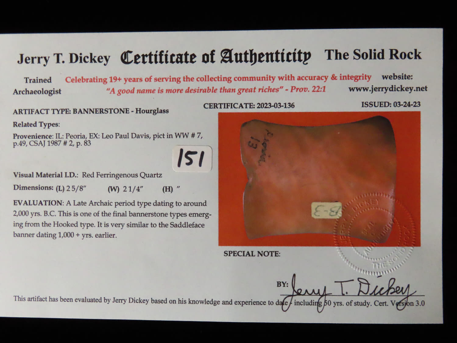 PHENOMENAL FERRINGENOUS QUARTZ HOURGLASS BANNERSTONE, FOUND IN PEORIA ILLINOIS, JERRY DICKEY, ROY MOTLEY, & TOM DAVIS COA'S, EX LEO PAUL DAVIS, PICTURED IN WHO'S WHO #7 PAGE 49, CENRAL STATES ARCH JOURNAL 1987 #2 P-83, INCREDIBLE POLISH & OUTSTANDING COLO