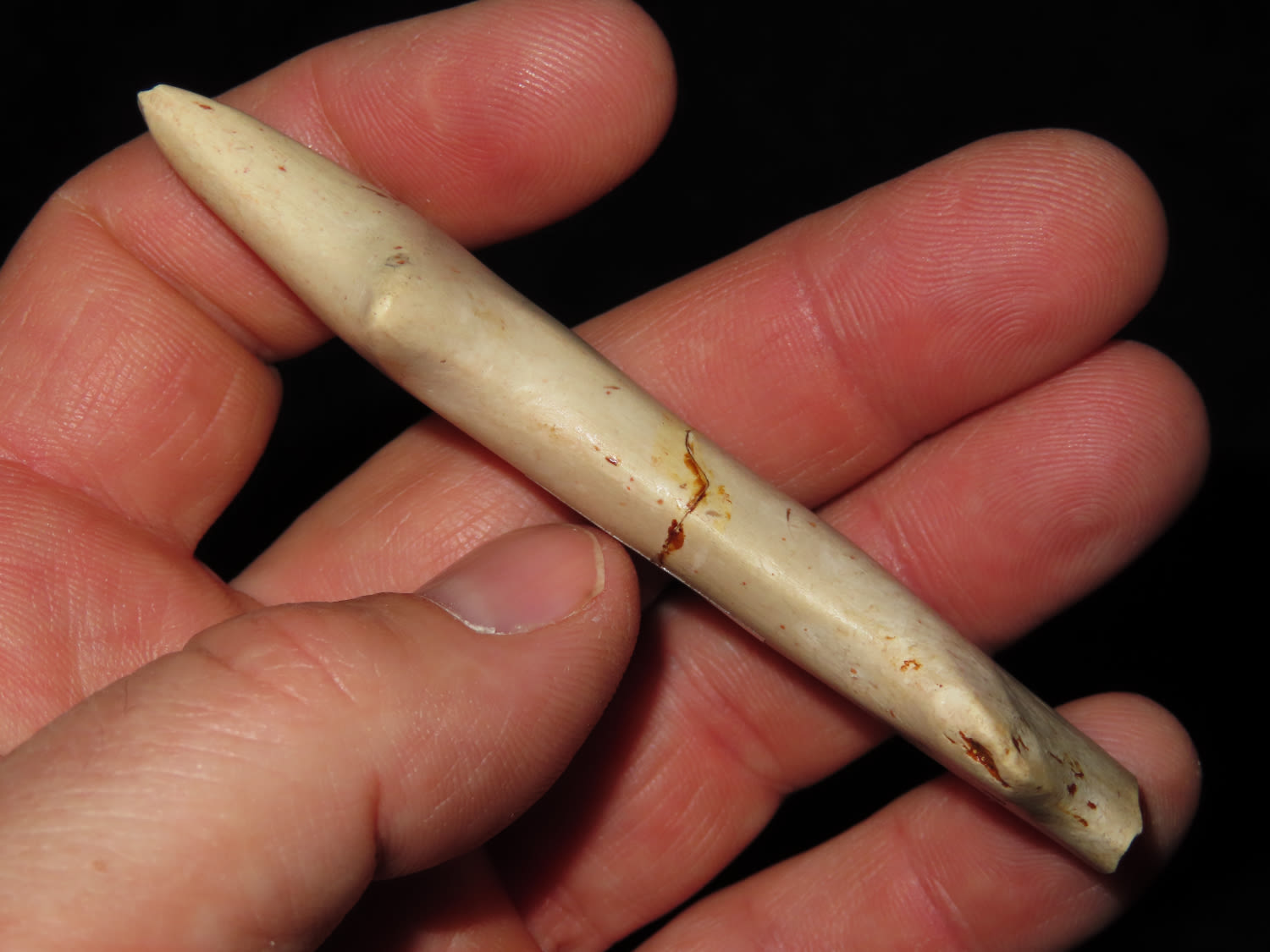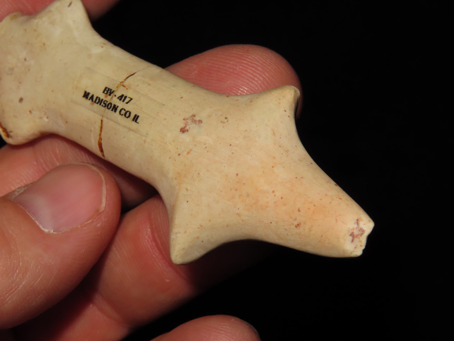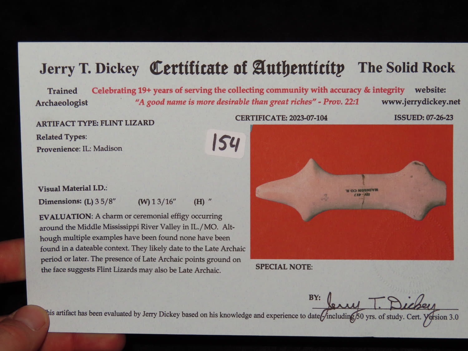 RARE 3 5/8″ POLISHED FLINT LIZARD, DICKEY COA, FOUND IN MADISON COUNTY ILLINOIS, BROKEN AND GLUED, EX BRANDON VANDERVER COLLECTION