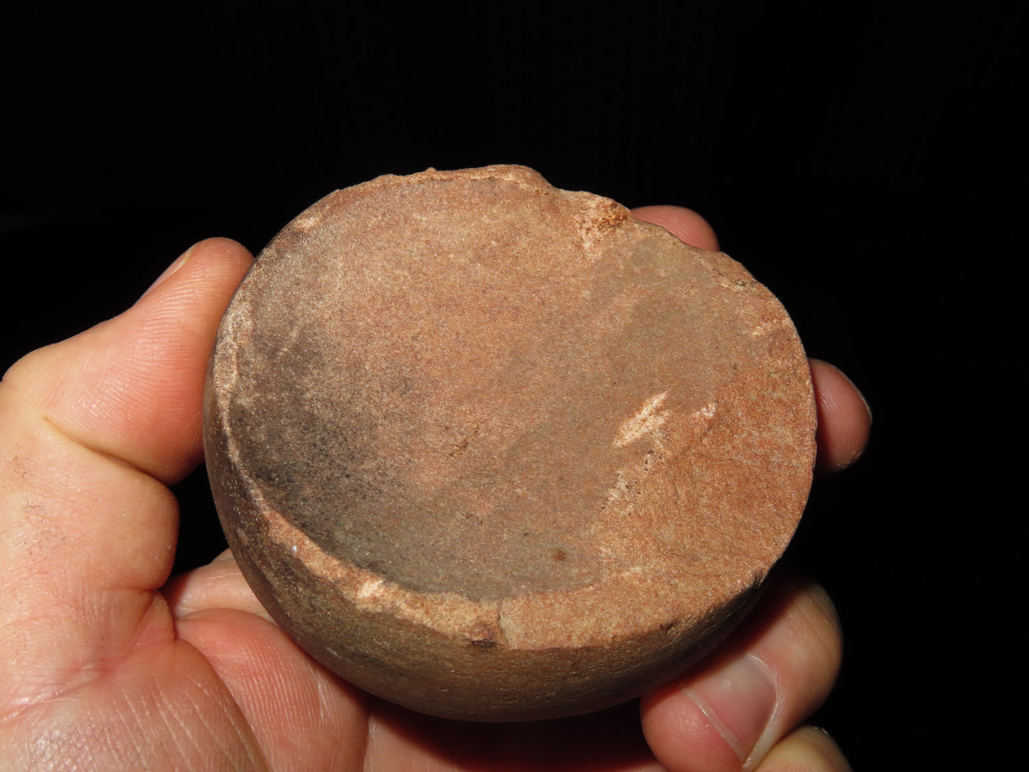 2 7/8″ WIDE QUARTZ CAHOKIA DISCOIDAL FOUND IN MADISON COUNTY ILLINOIS, GREAT POLISH AND NICE COLOR, GAME STONE DISC