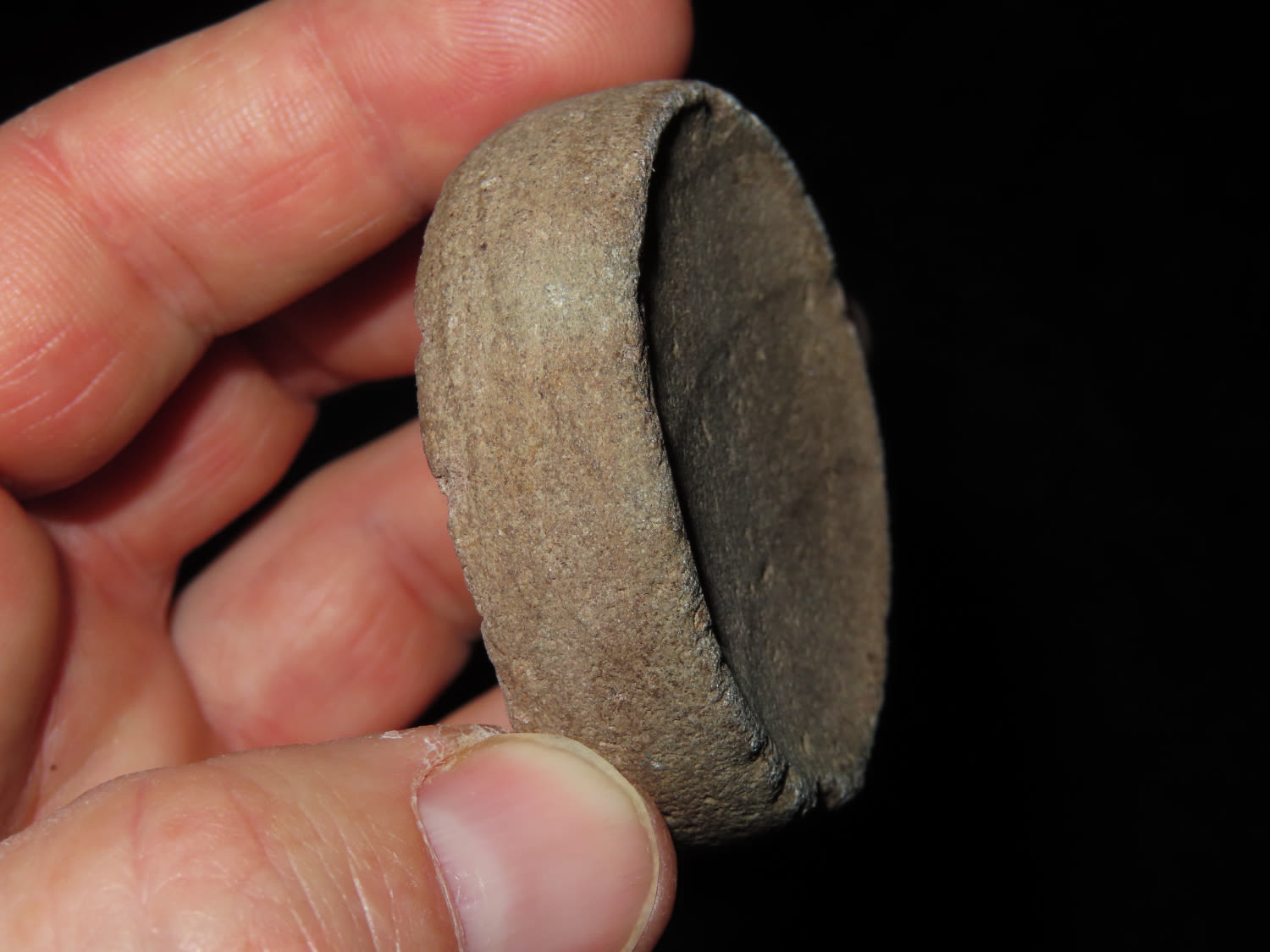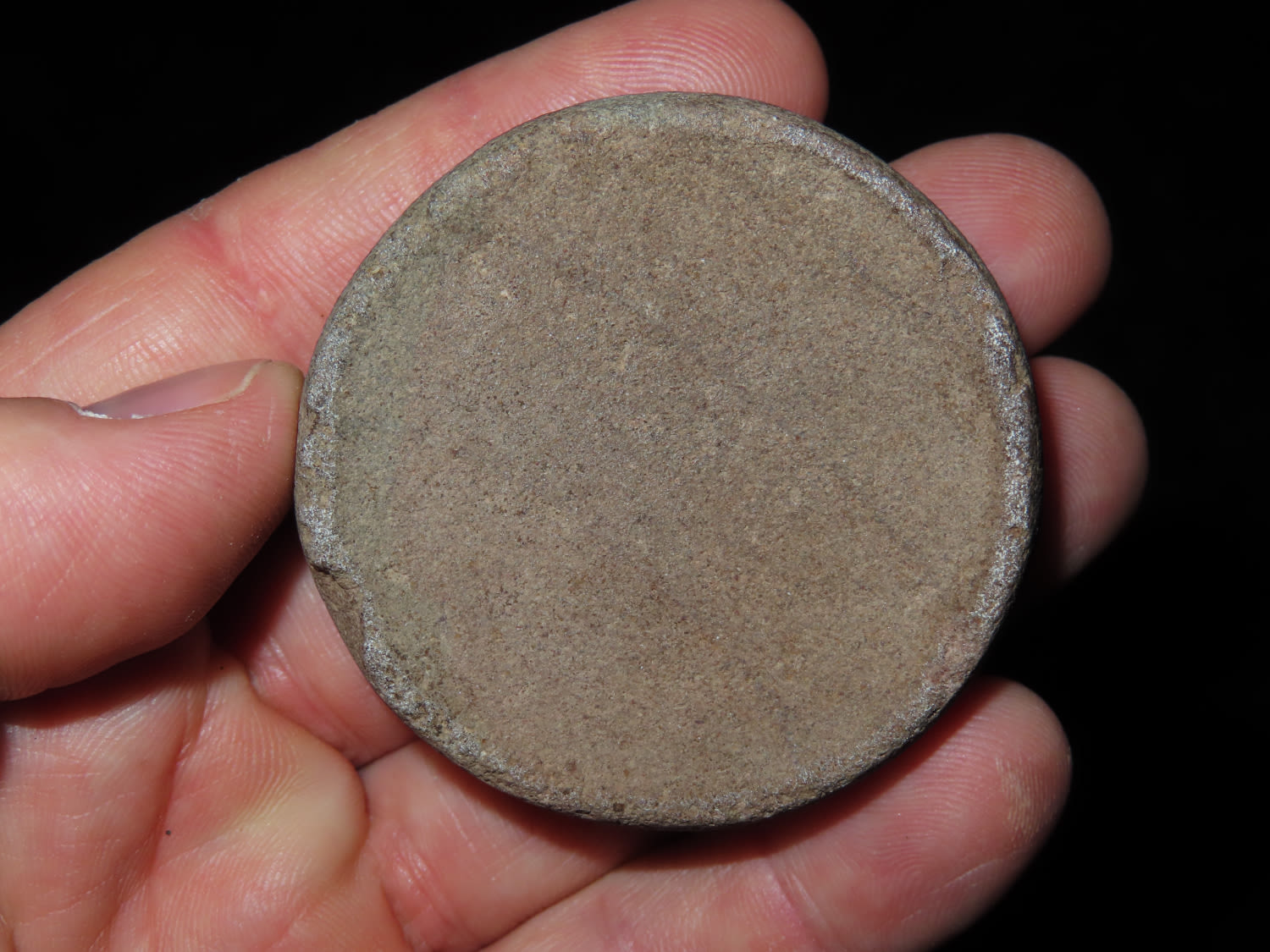2 1/16″ CAHOKIA DISCOIDAL FOUND IN DUNKLIN COUNTY MISSOURI, EX MITCH LEWIS,VERY NICE EXAMPLE, GAME STONE DISC