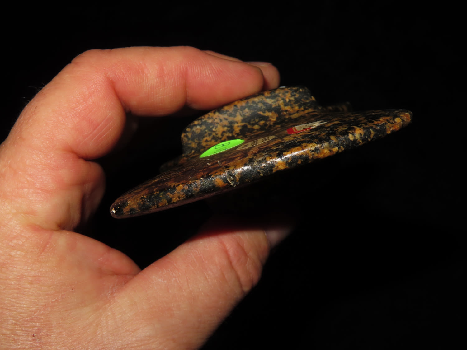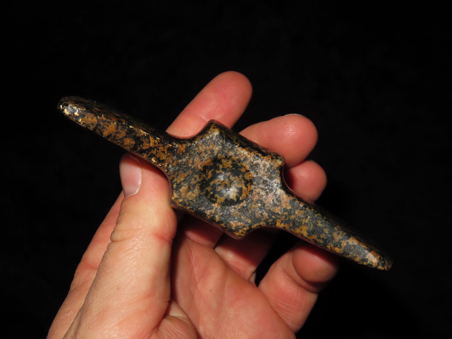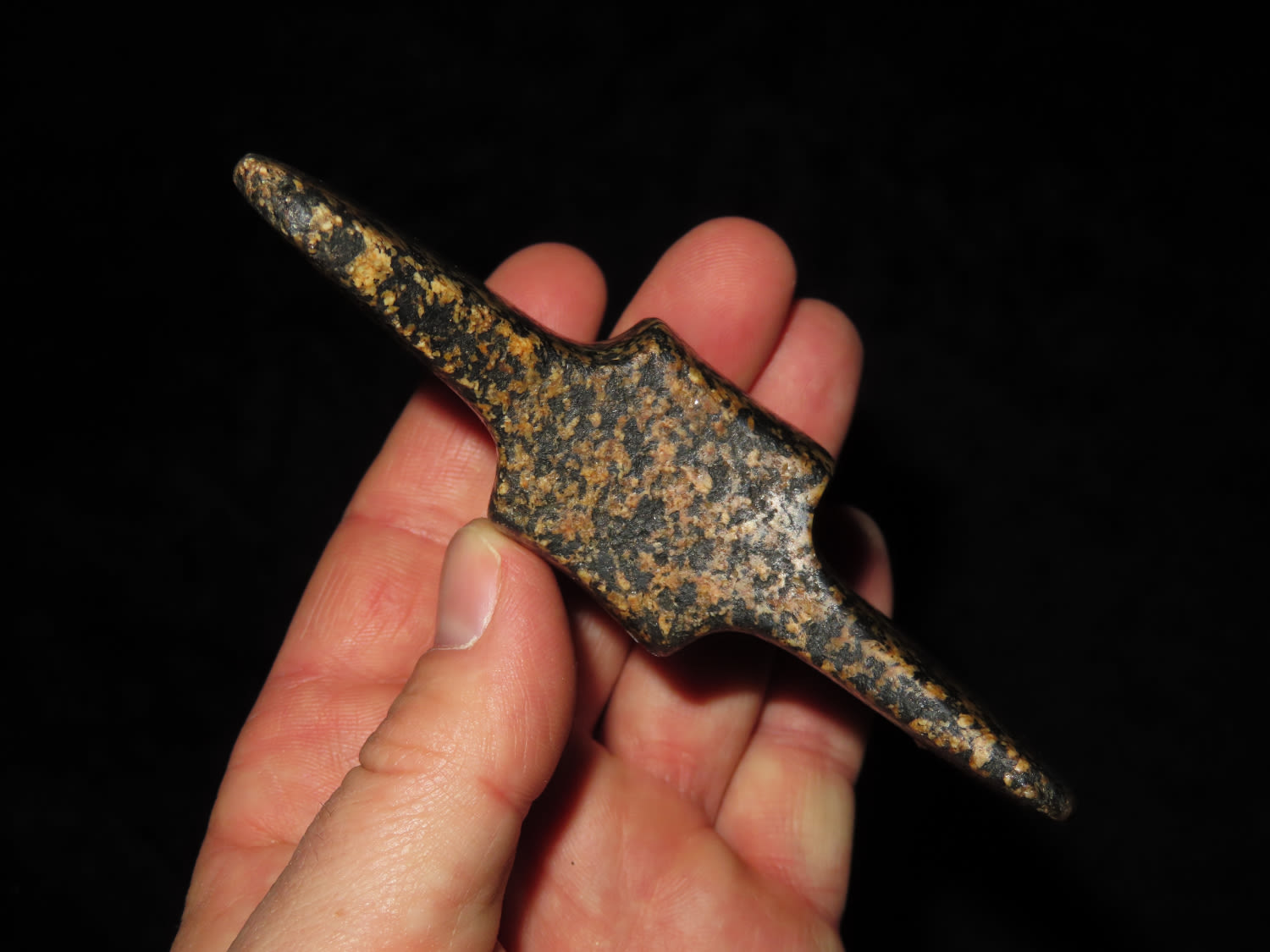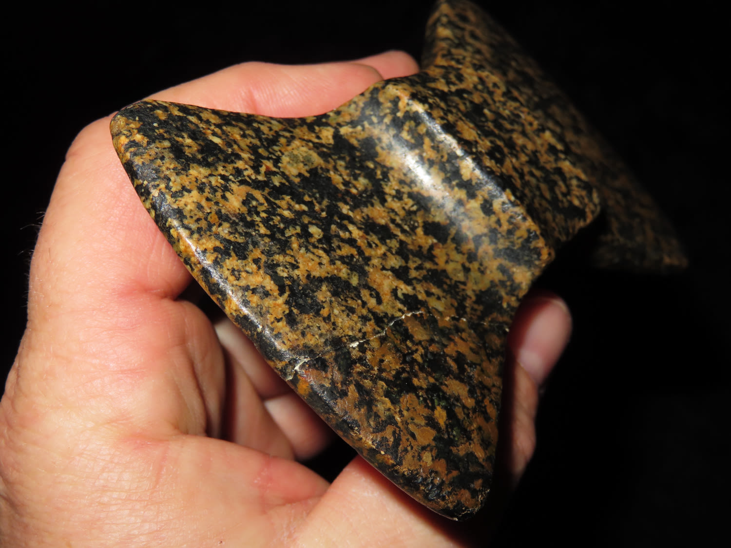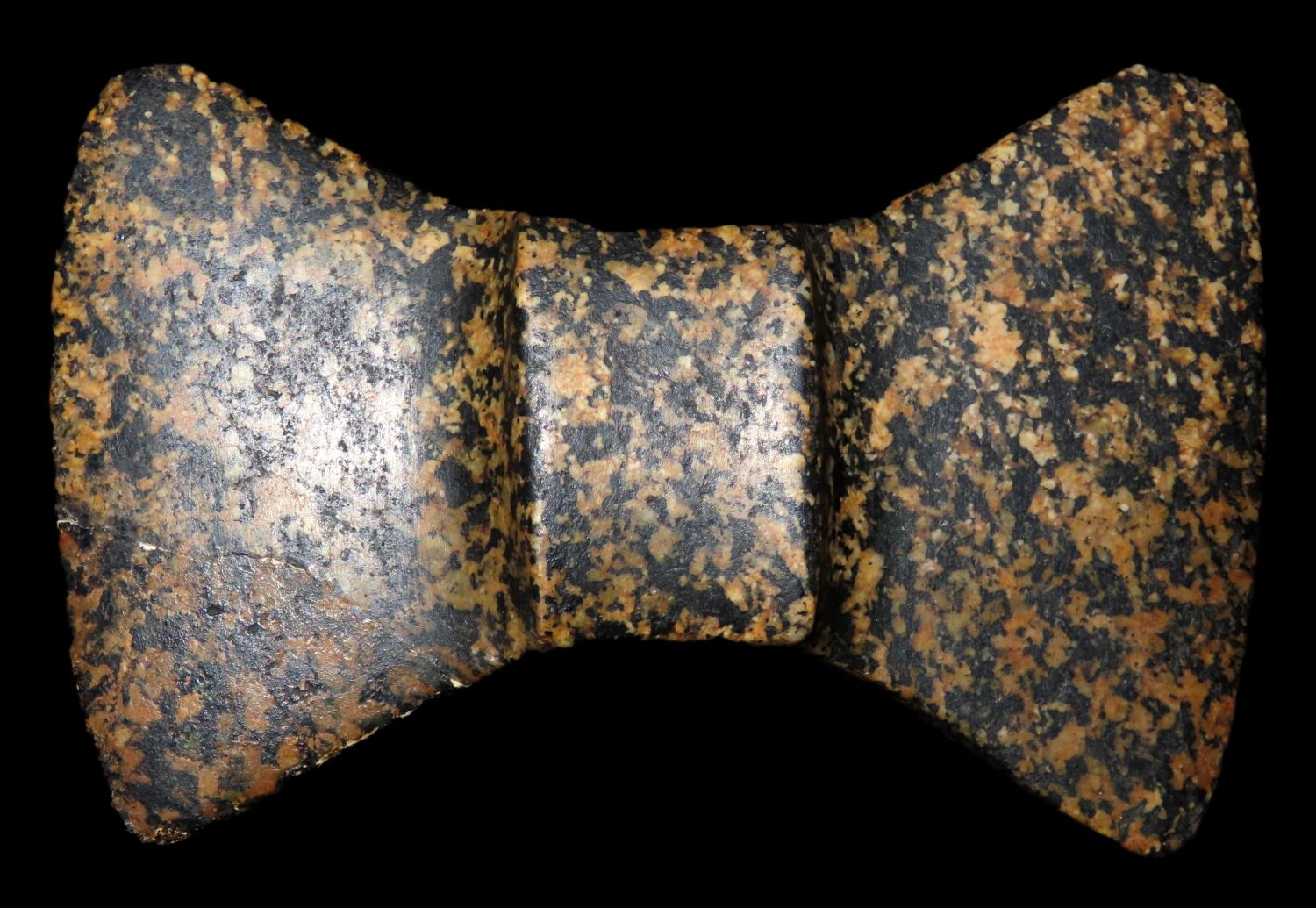 OUTSTANDING WISCONSIN WING BANNER PREFORM, DICKEY & MOTLEY COA, EX KNOBLOCK, DR COPELAND, FLOYD RITTER. MINOR OLD RESTORATION TO ONE CORNER OF A WING. AMAZING FORM & INCREDIBLE POLISH. CANE DRILLING STARTED ON ONE END, DEEPLY FLUTED BARREL ON BOTH SIDES. PICTURED IN KNOBLOCK’S BANNERSTONES OF THE NORTH AMERICAN INDIAN PAGE 441; WHO’S WHO #1 P49; WHO’S WHO #6 P49; WHO’S WHO #8 P182, 184, & 186; LEGENDS 3 P148; 1968 REDSKINS VOL3 #3 P103; 1990 PREHISTORIC AMERICAN #4 P17; CSAJ 1992 #4 P182; CSAJ 2004 #4 P25. IMPECCABLE HISTORY & PEDIGREE!