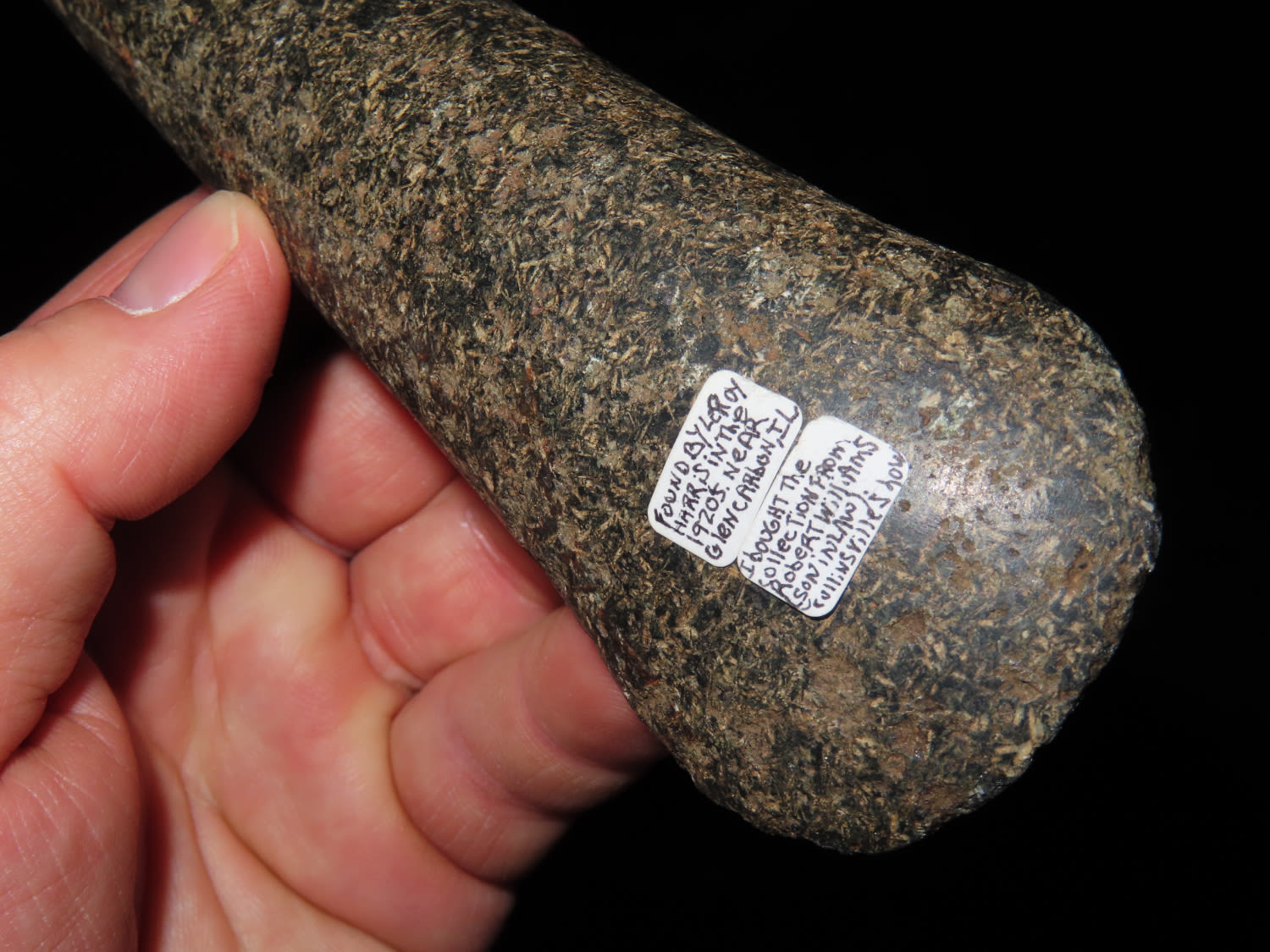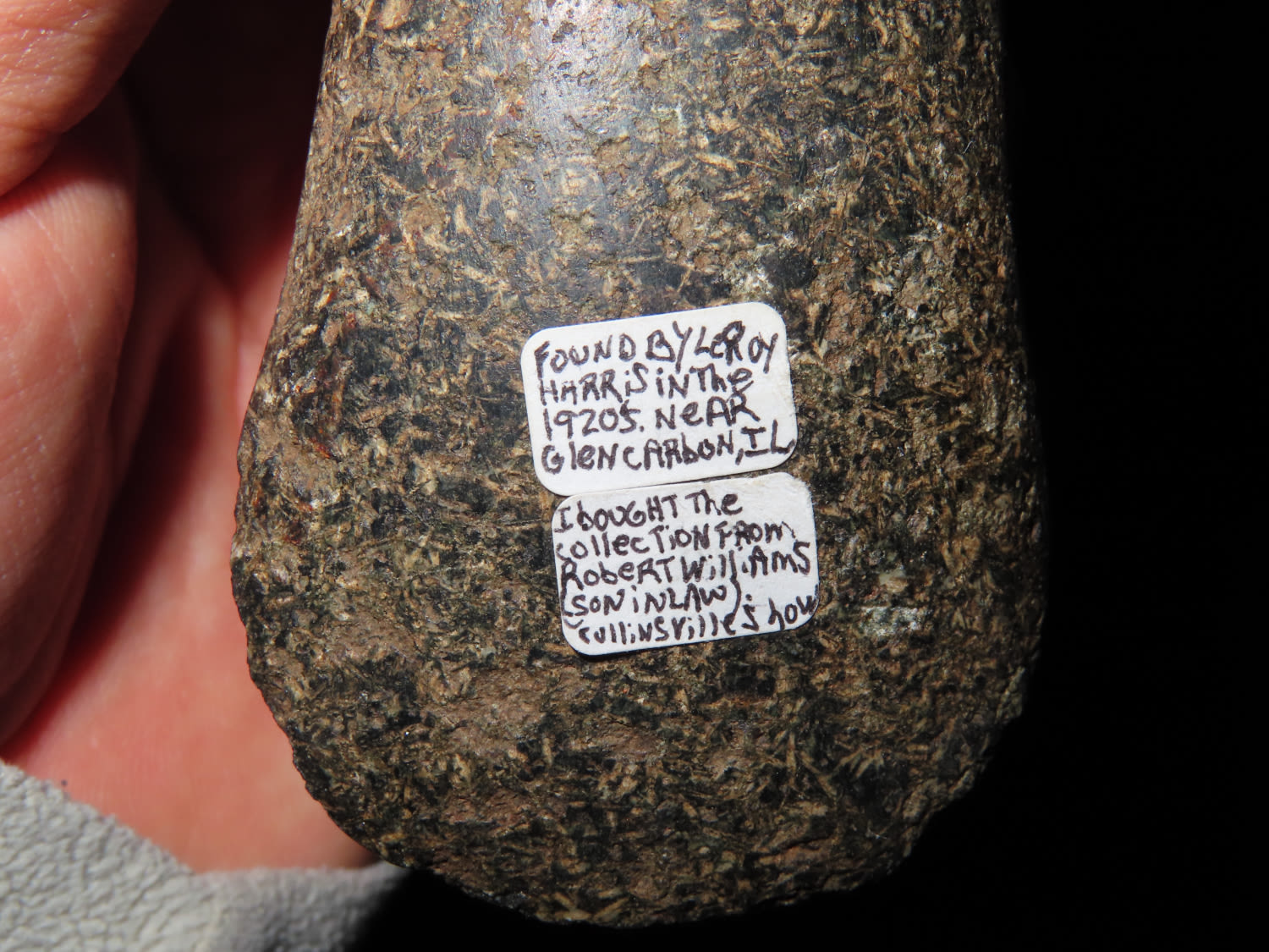RARE 6 3/8" HARDSTONE SPUD, DICKEY & MOTLEY COA, FOUND NEAR GLEN CARBON ILLINOIS IN MADISON COUNTY BY LEROY HARRIS IN THE 1920'S, WAS PURCHASED FROM HIS SON IN LAW (ROBERT WILLIAMS) AT THE COLLINSVILLE SHOW YEARS AGO. NICE WELL SHAPED AND HIGHLY POLISHED