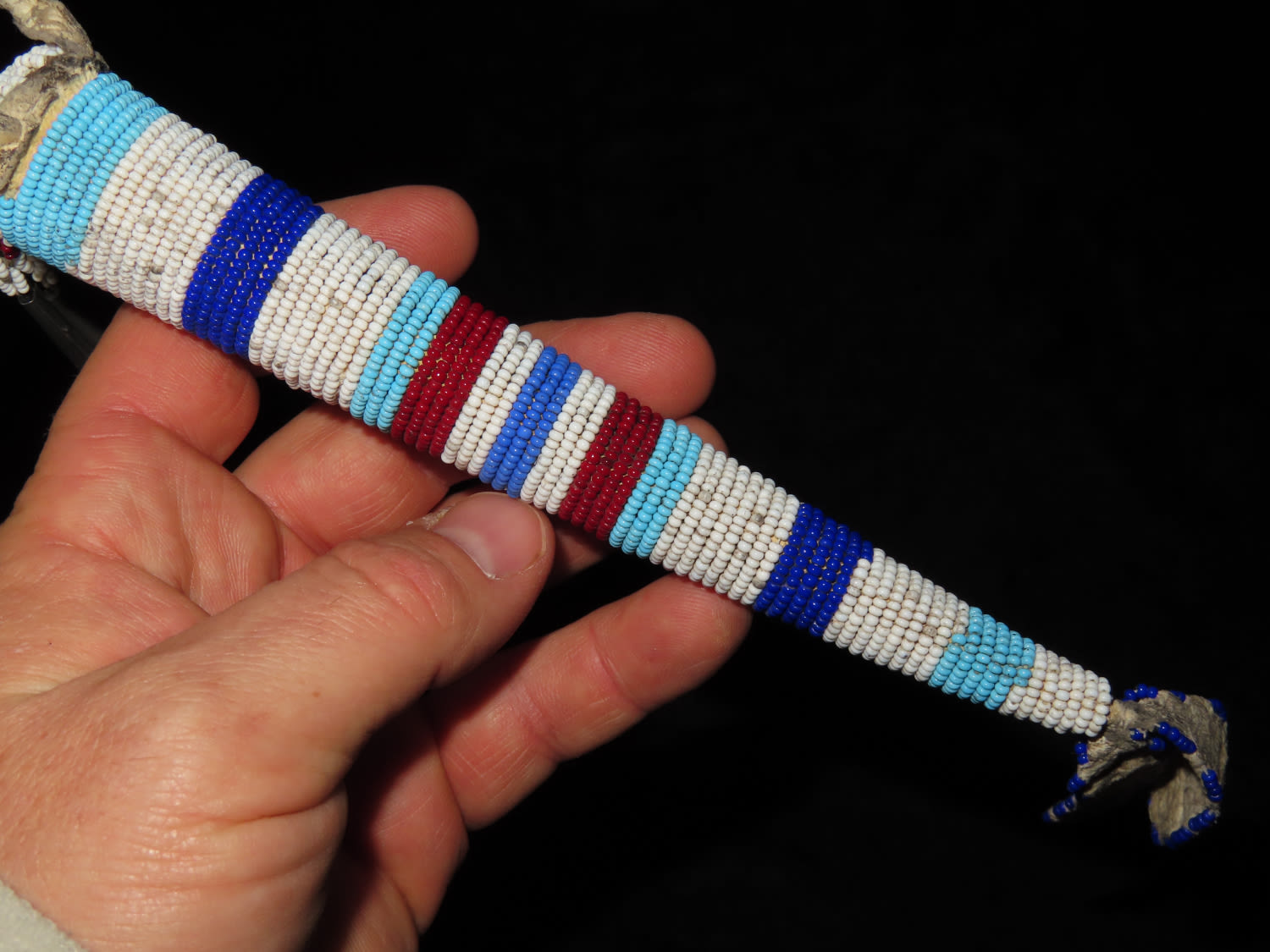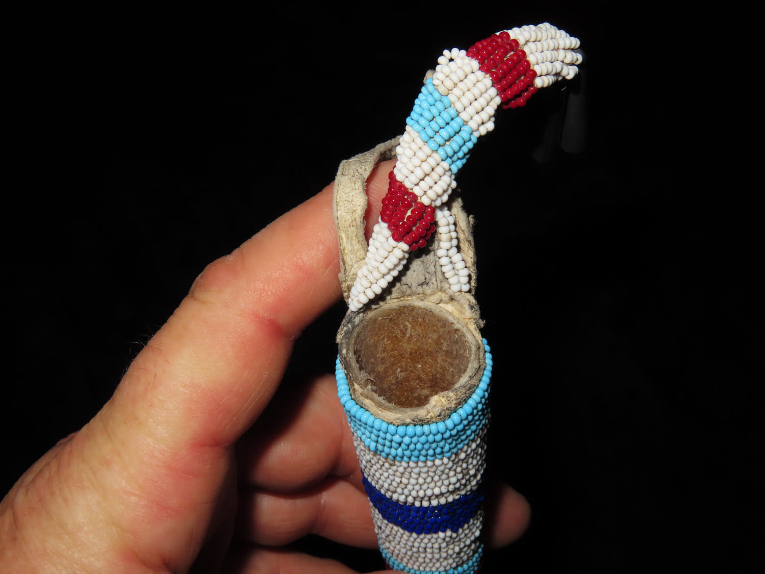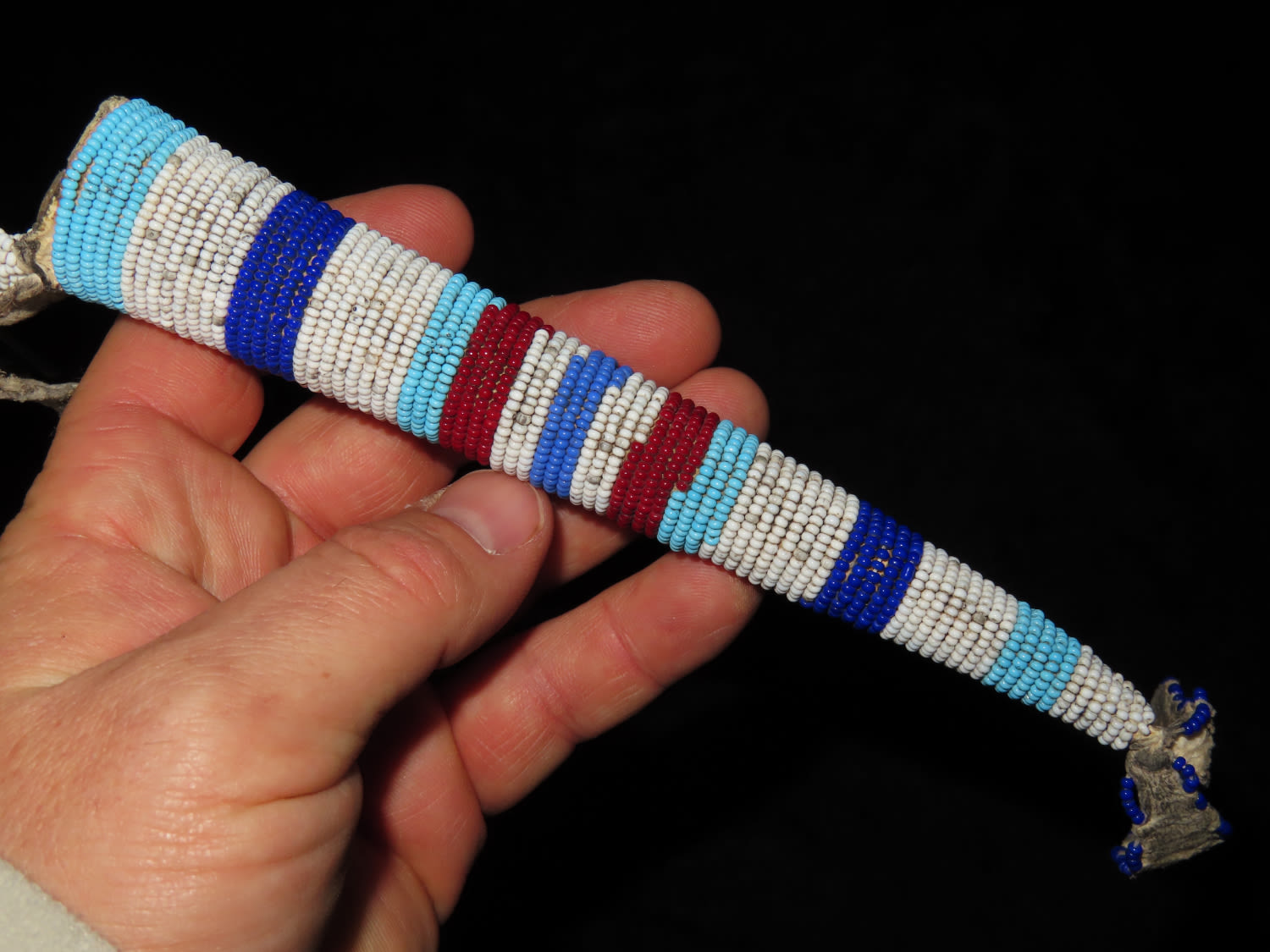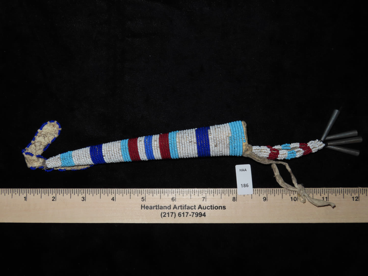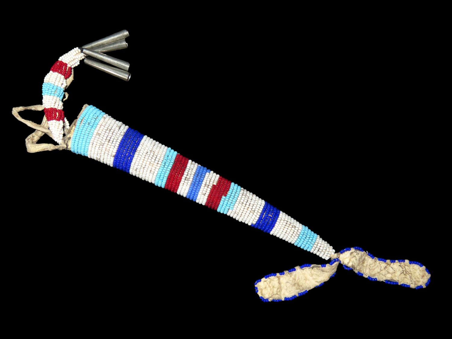 13″ LONG HISTORIC PLAINS INDIAN BEADED AWL CASE, NATIVE AMERICAN CROW INDIANS, 13″ OVERALL WITH DECORATIONS, SHEATH IS ABOUT 7″ LONG