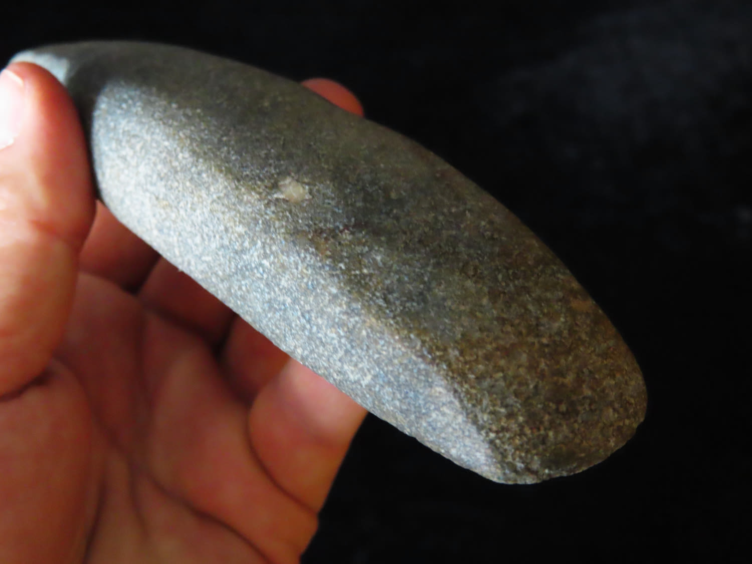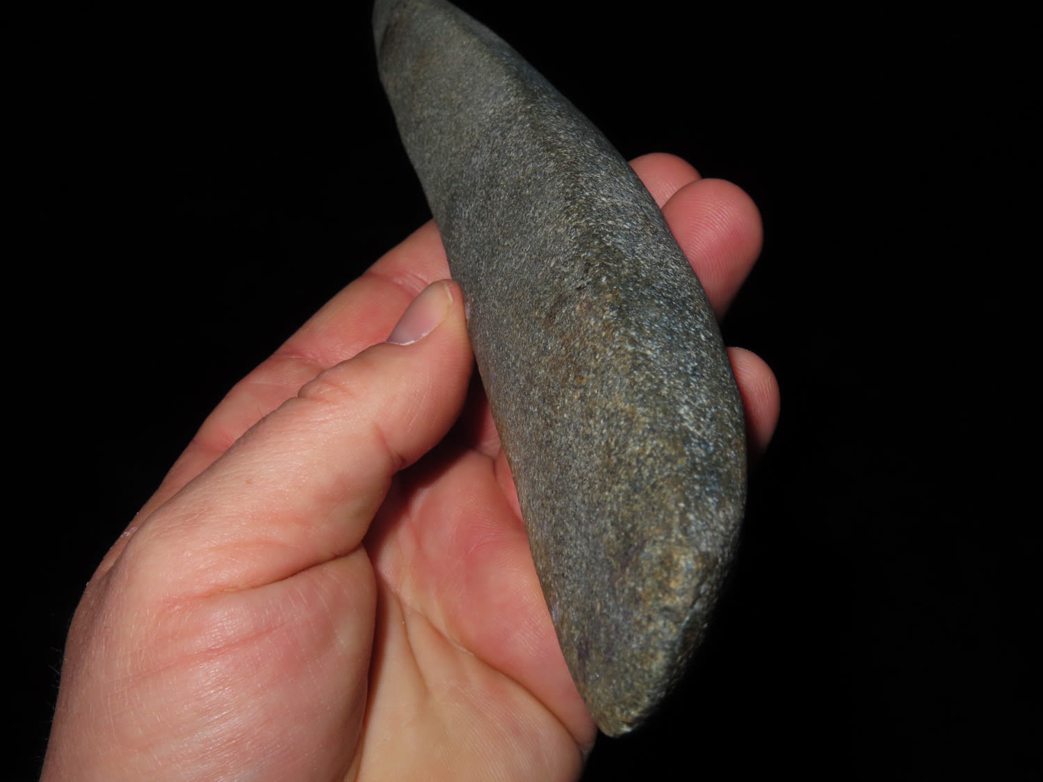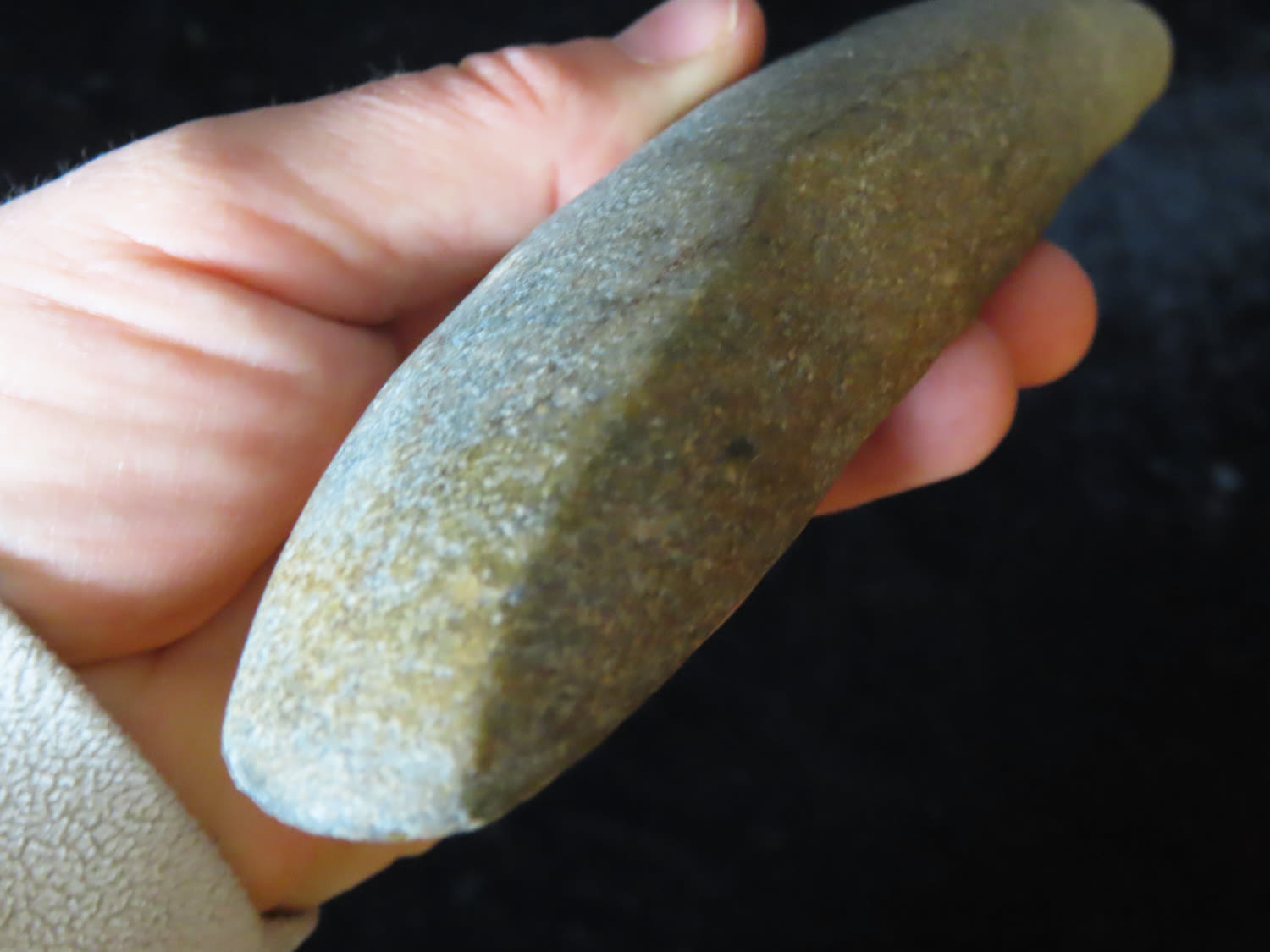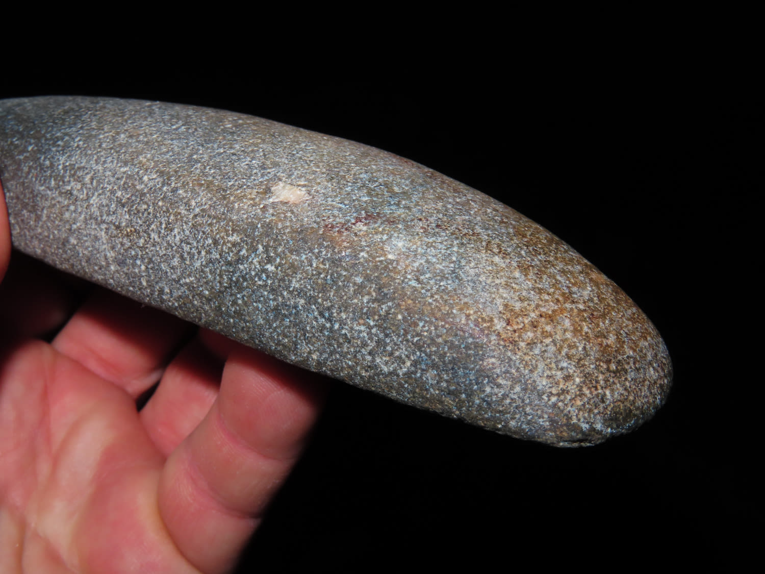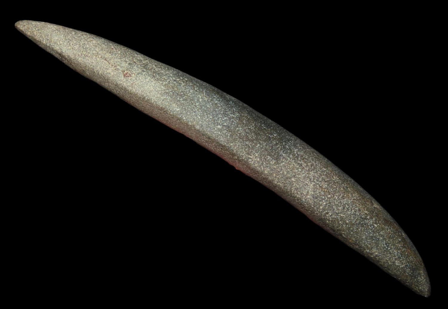 8 3/4″ LONG STONE PICK / CHISEL FOUND AT THE BULLSEYE SITE, GREENE COUNTY ILLINOIS BY LARRY FLAIT, EX JEFF HIPSKIND, NICE LARGE EXAMPLE