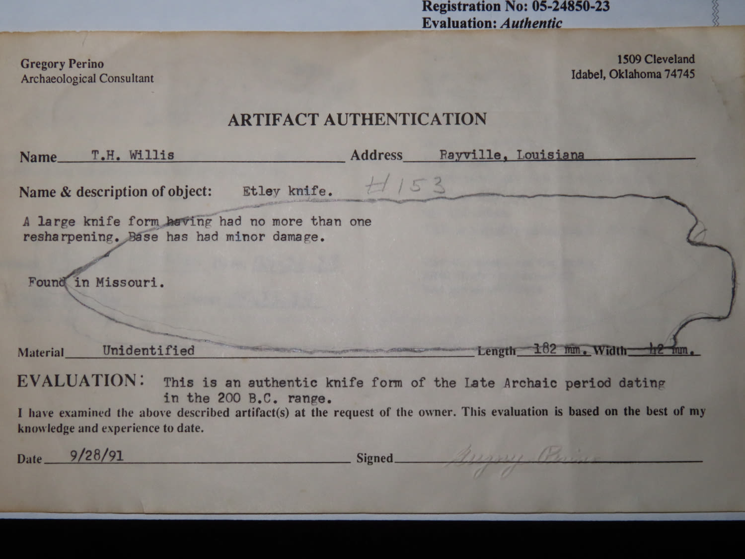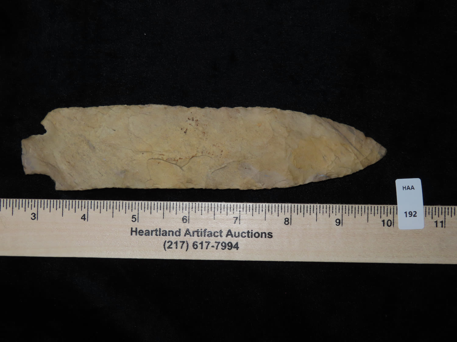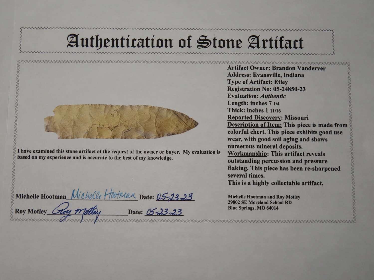 HUGE 7 1/4″ ETLEY, PERINO & MOTLEY COA, FOUND IN MISSOURI, EX T.H. WILLIS COLLECTION, MASSIVE EXAMPLE WITH GREAT FLAKING AND NICE COLOR