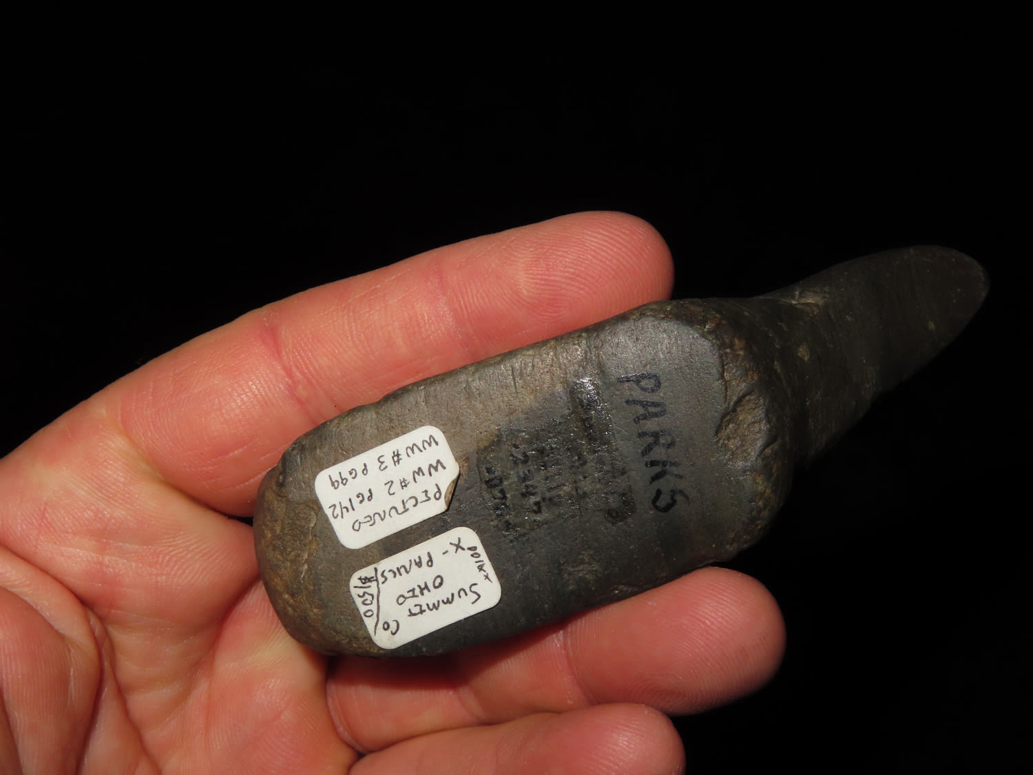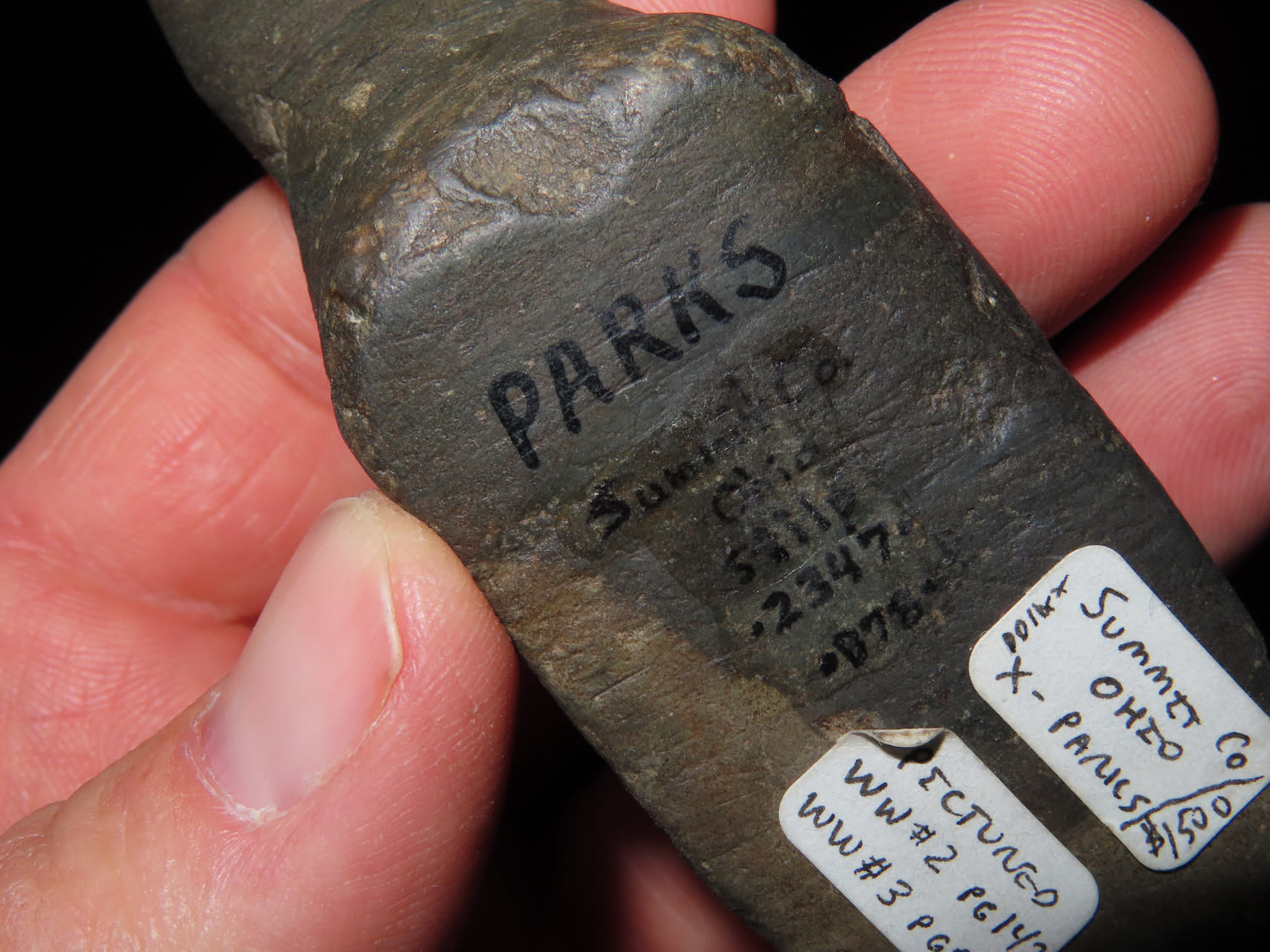BANDED SLATE BIRDSTONE, DICKEY COA, EX CAMERON PARKS, J.B. PIERCE, & DAVID STILP COLLECTIONS. FOUND IN SUMMIT COUNTY OHIO, WELL PICTURED IN WHO’S WHO #2 P142 AND WHO’S WHO #3 P99, GREAT OLD NO BRAINER AUTHENTIC EXAMPLE.