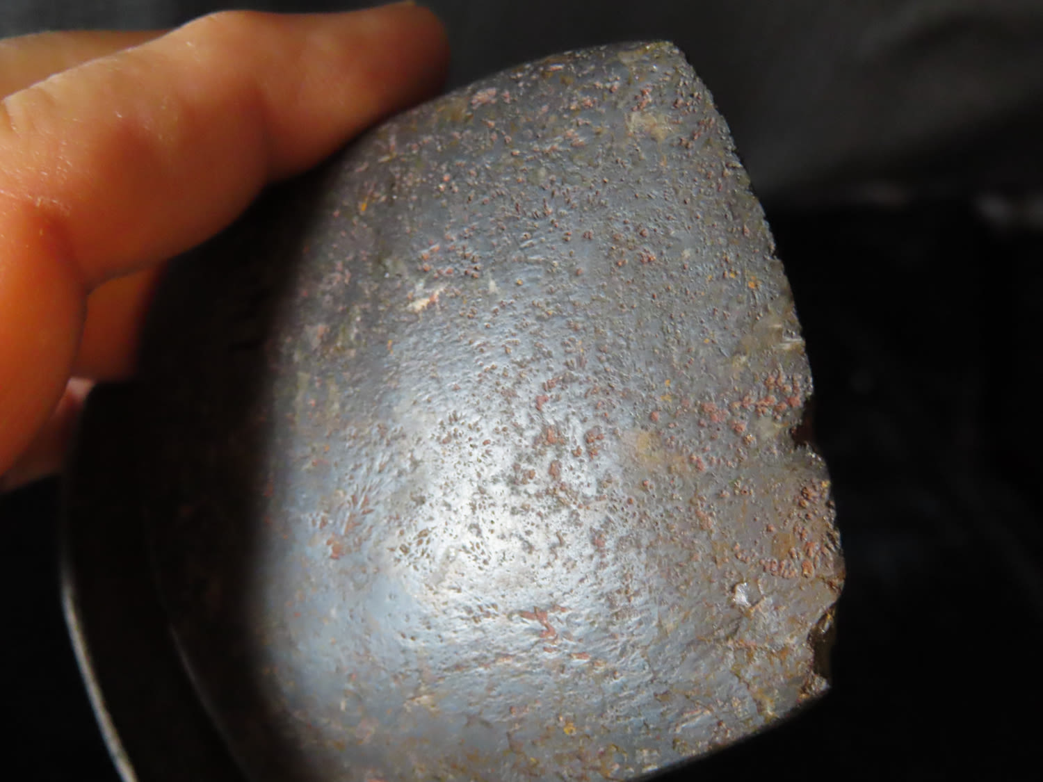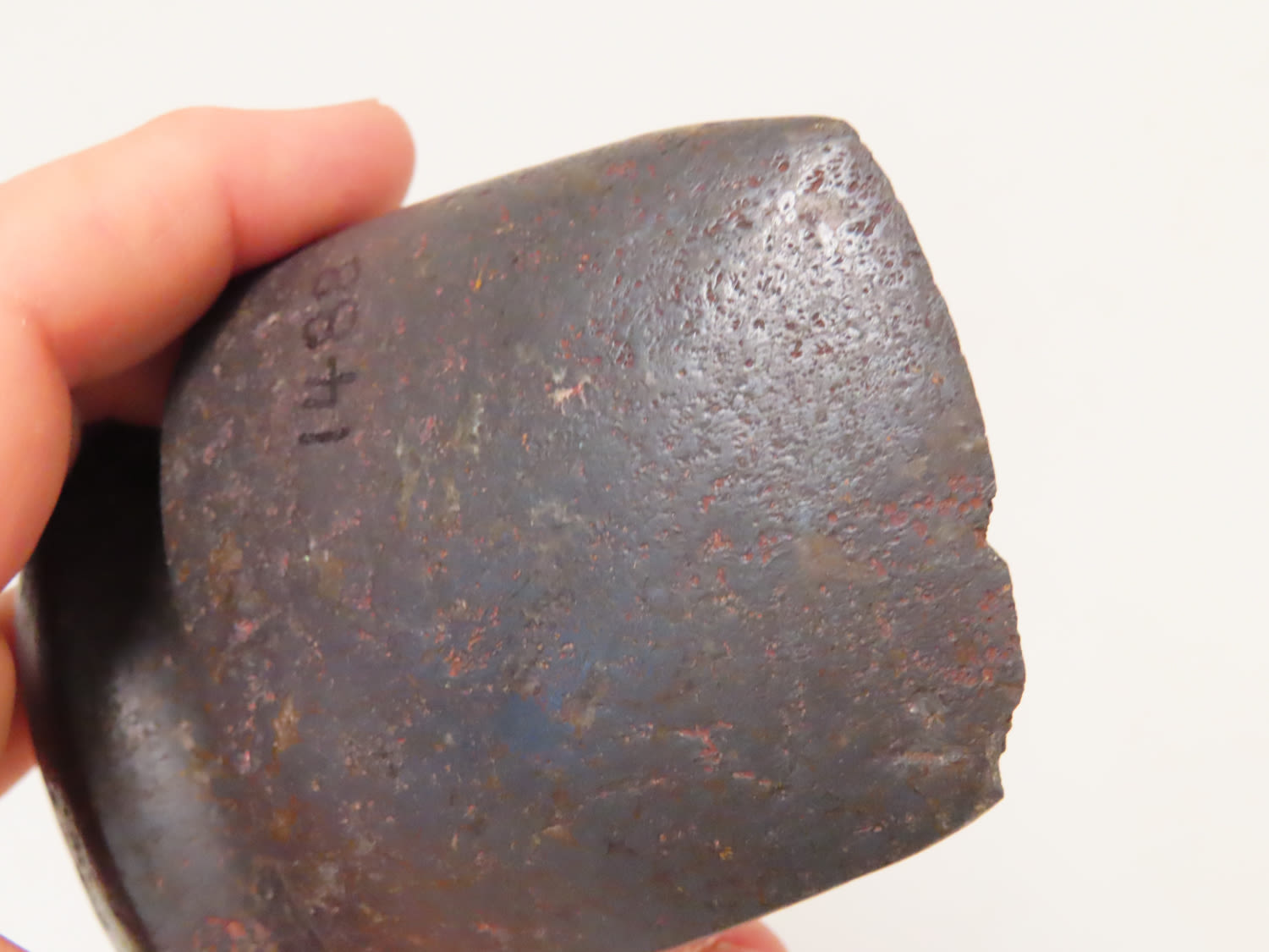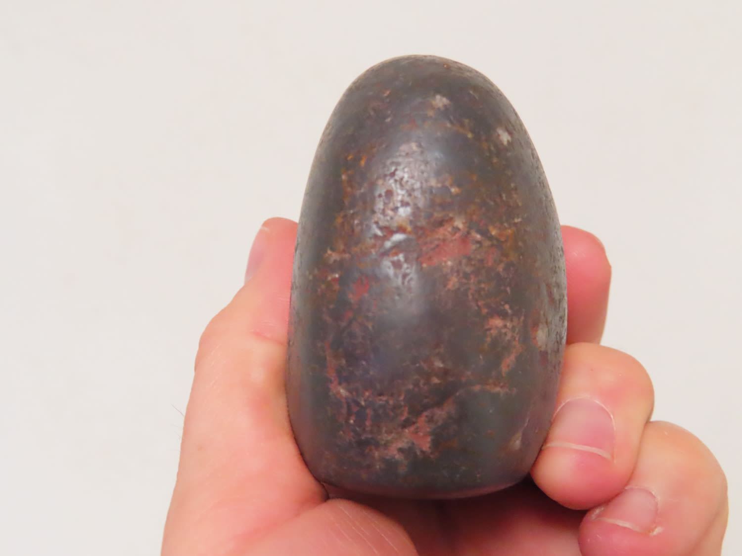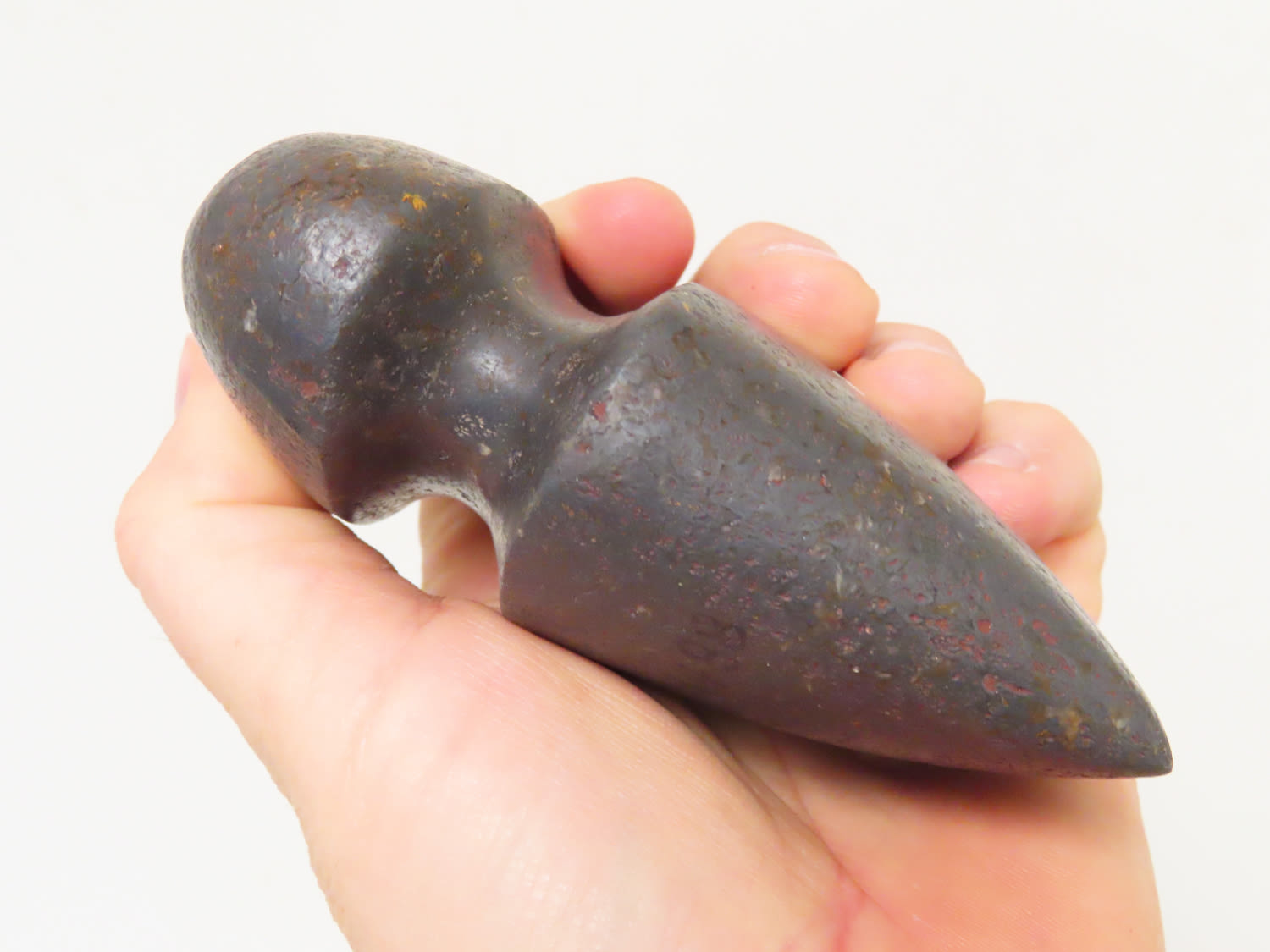 4 5/8″ PHENOMENAL HEMATITE 3/4 GROOVE AXE, MOTLEY COA, FOUND IN LINCOLN COUNTY MISSOURI, INCREDIBLE FORM, SUPER DEEP GROOVE & AMAZING POLISH, STANDS UP NICELY ON ITS EDGE, VERY HIGHLY DEVELOPED EXAMPLE.