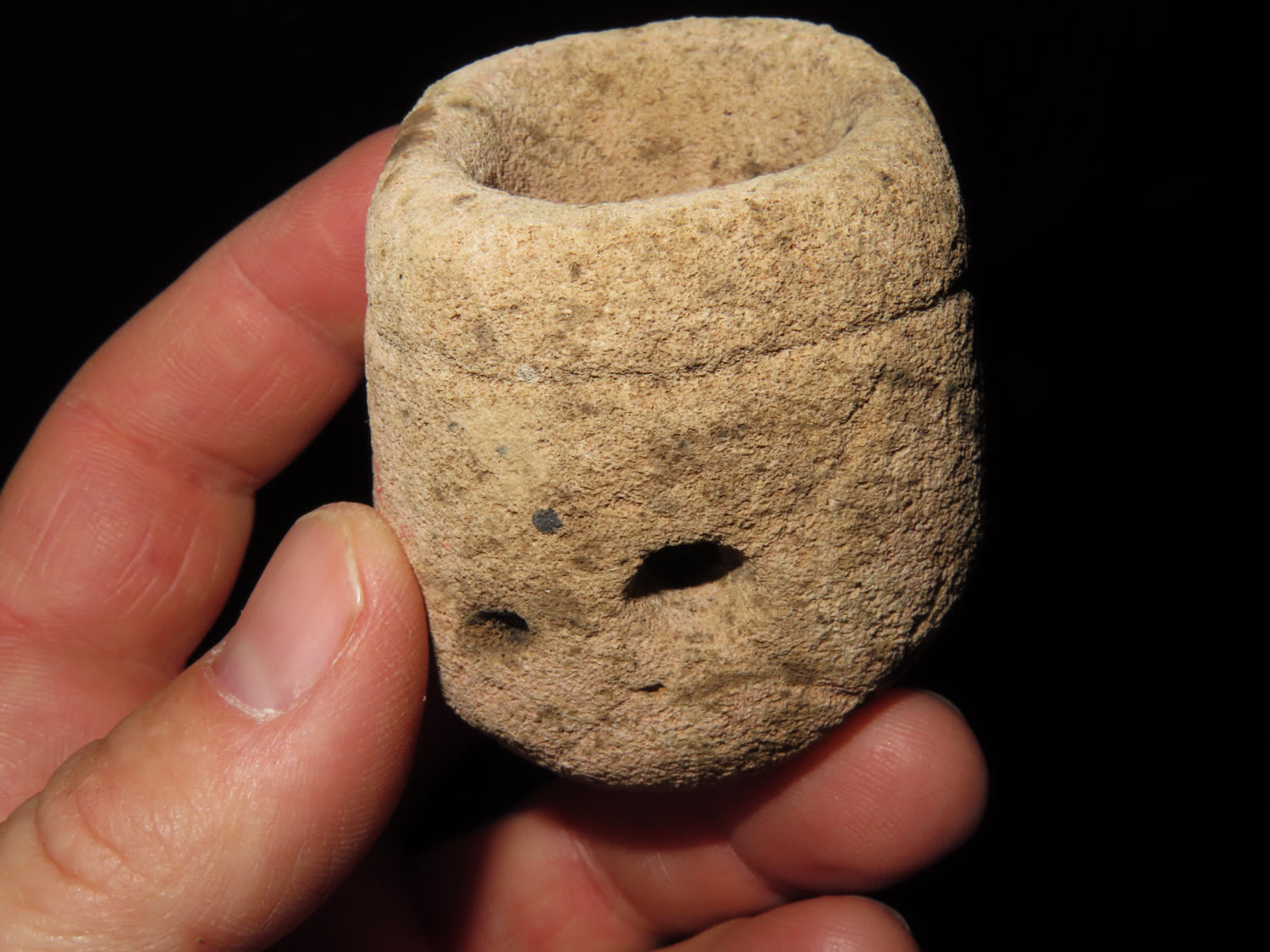 2 1/4″ ENGRAVED VASE PIPE FOUND IN STODDARD COUNTY MISSOURI, NICE EARLY MISSISSIPPIAN EXAMPLE