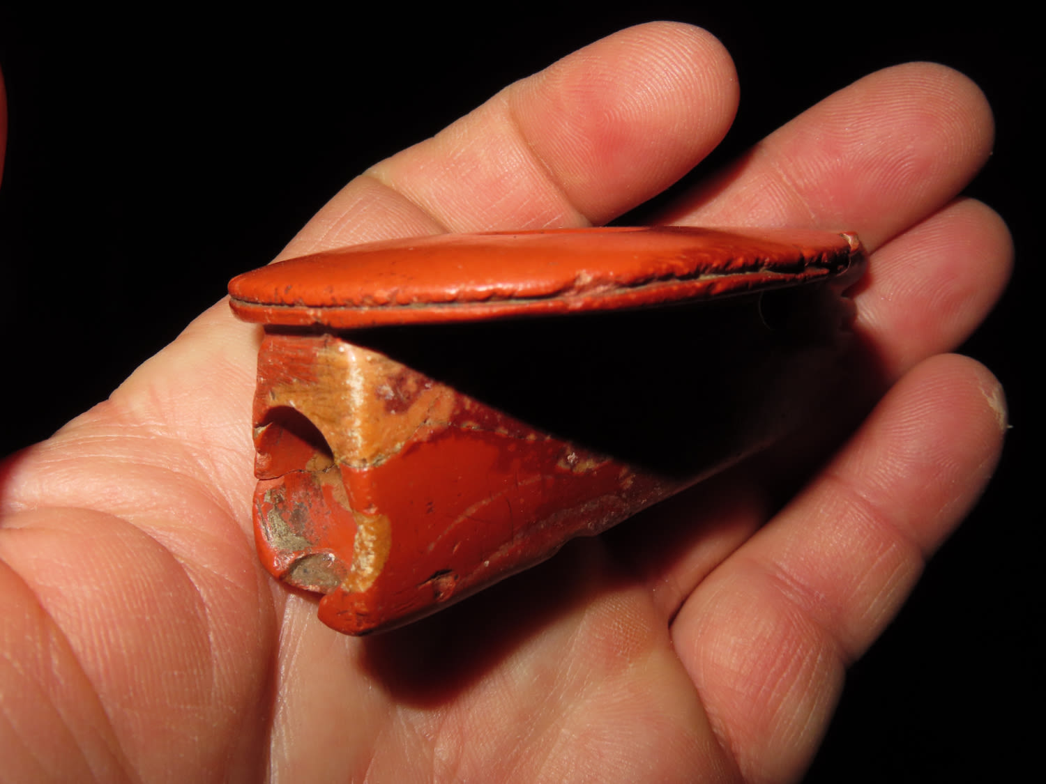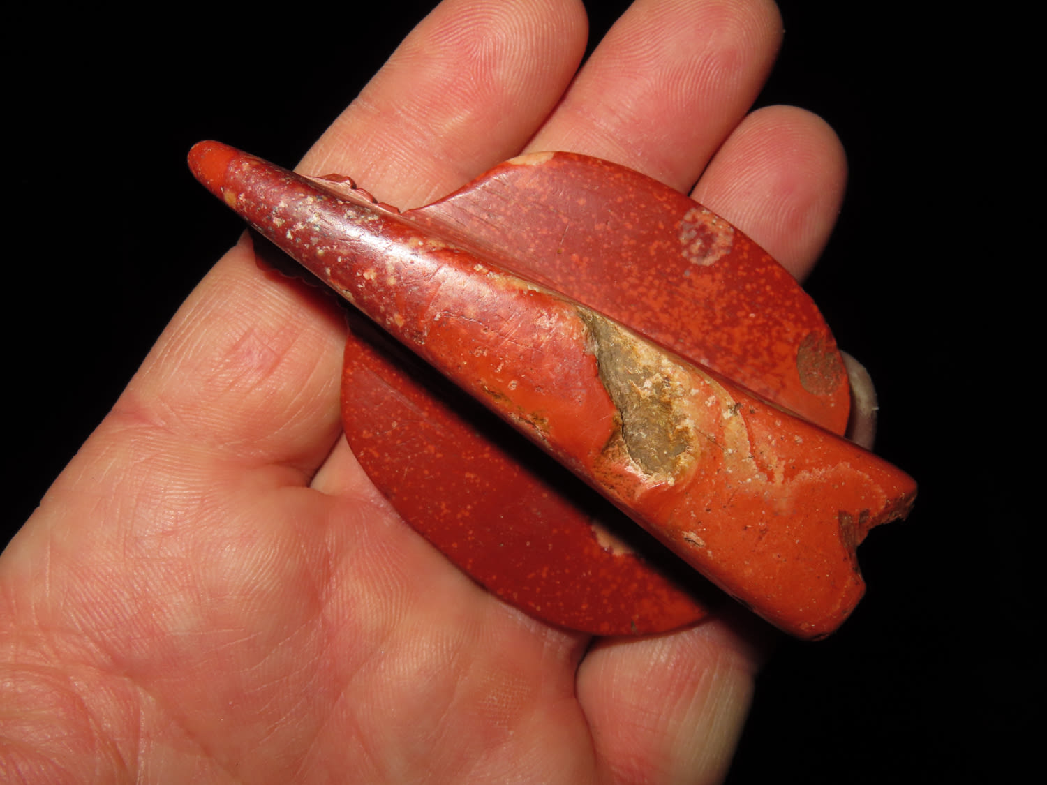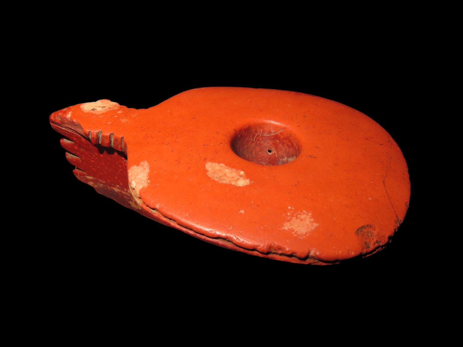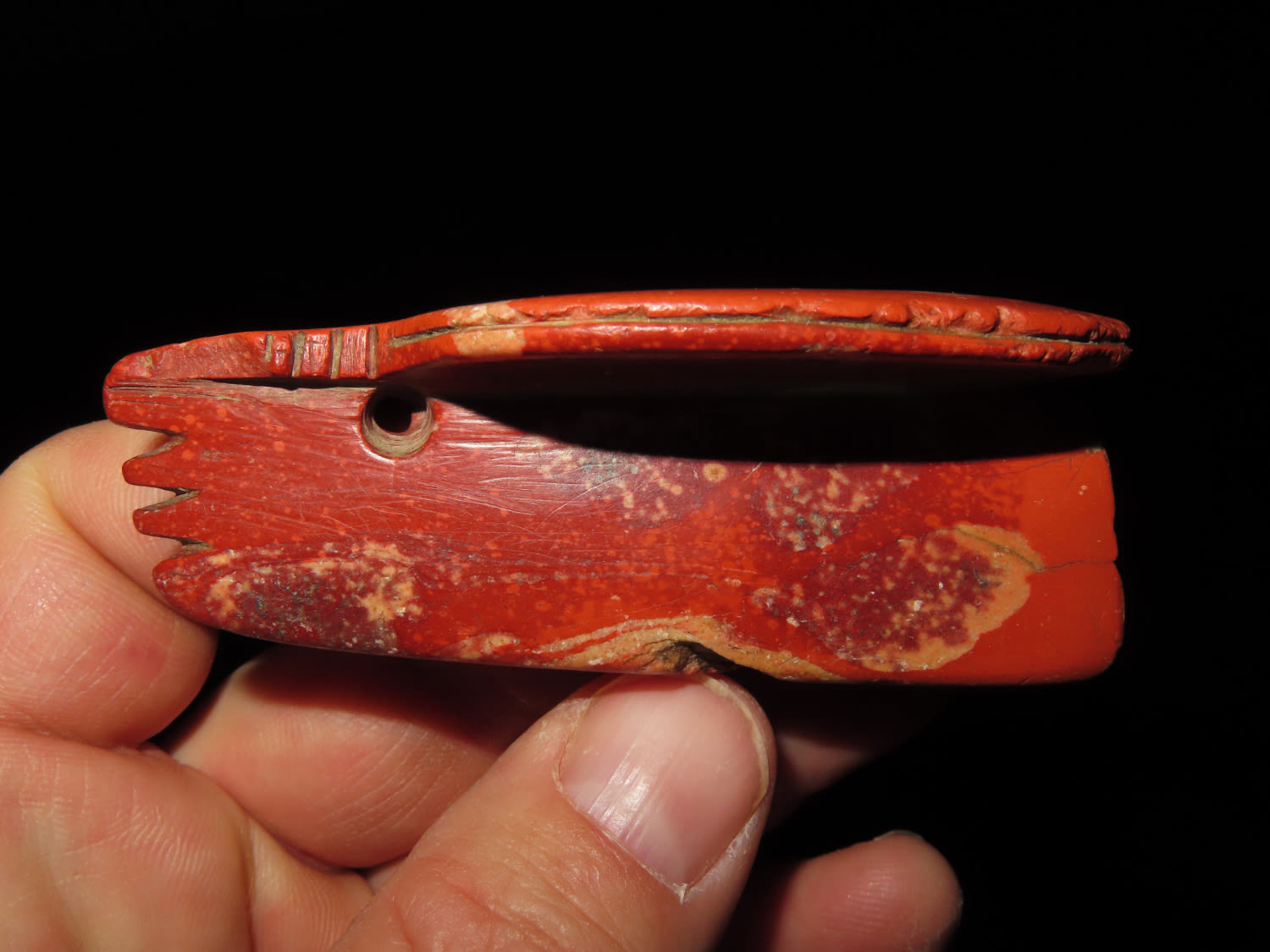 EX TOWNSEND 3 1/16″ ENGRAVED CATLINITE DISC PIPE, DICKEY COA, FOUND IN MCCLEAN COUNTY ILLINOIS, EX LARRY FRANK, GREAT EXAMPLE WITH LOTS OF DESIGN