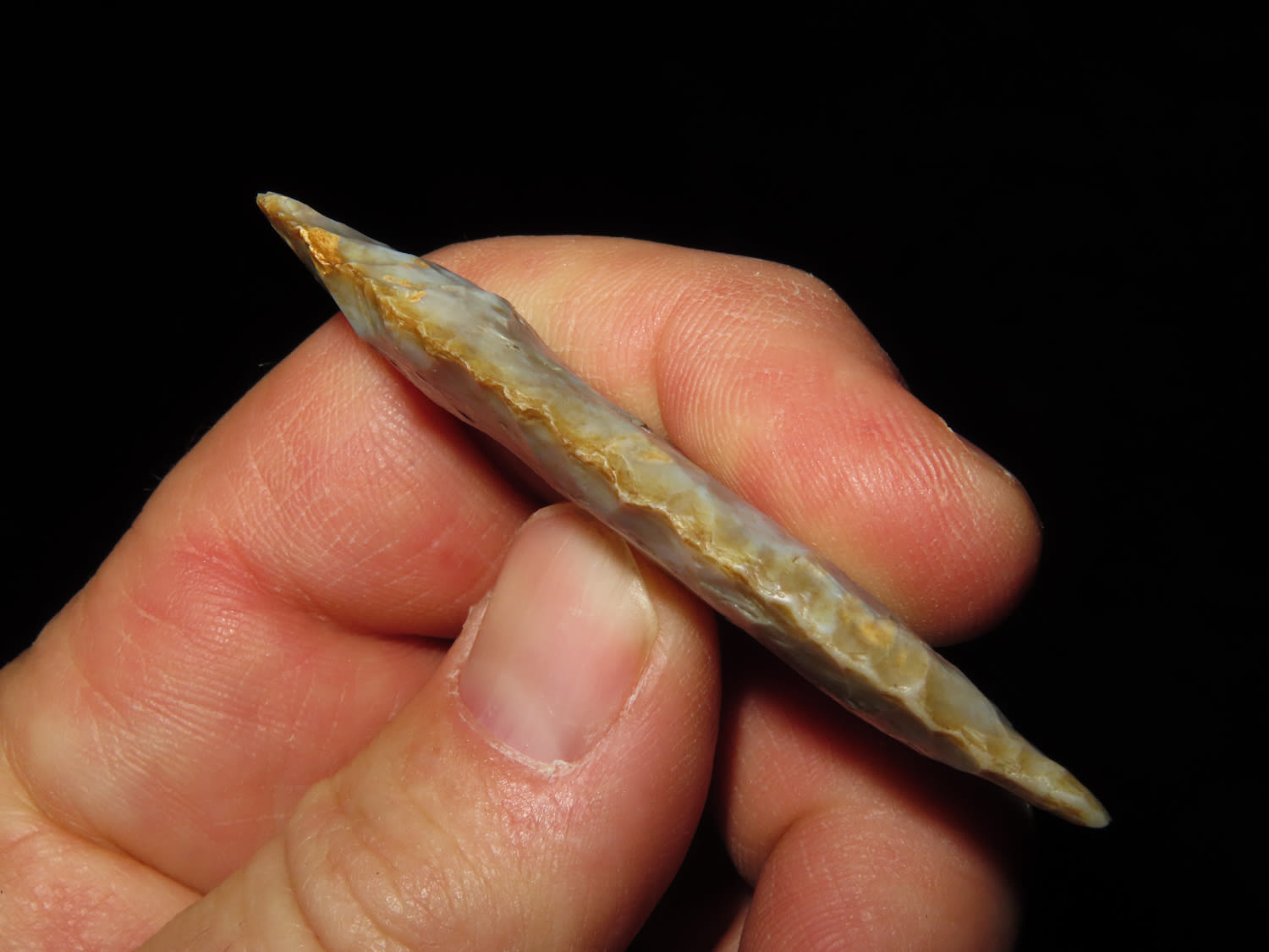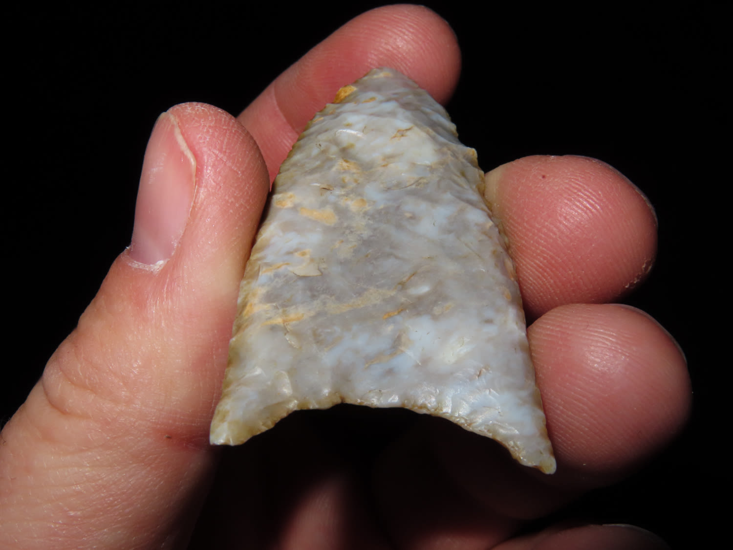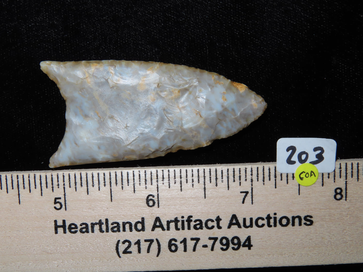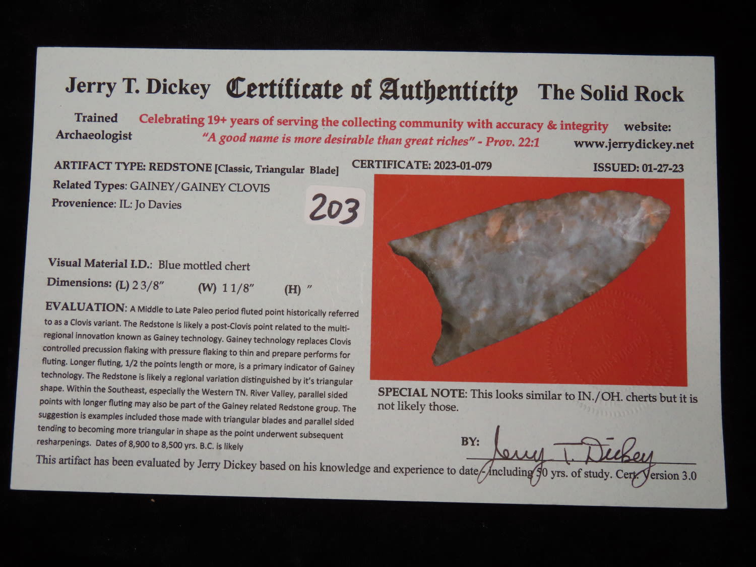 2 3/8″ RARE REDSTONE CLOVIS, DICKEY COA, JO DAVIES COUNTY ILLNOIS, EX M. TIPPETT, EXCELLENT FLAKING W/ GREAT COLOR & NICE FLUTES ON BOTH SIDES