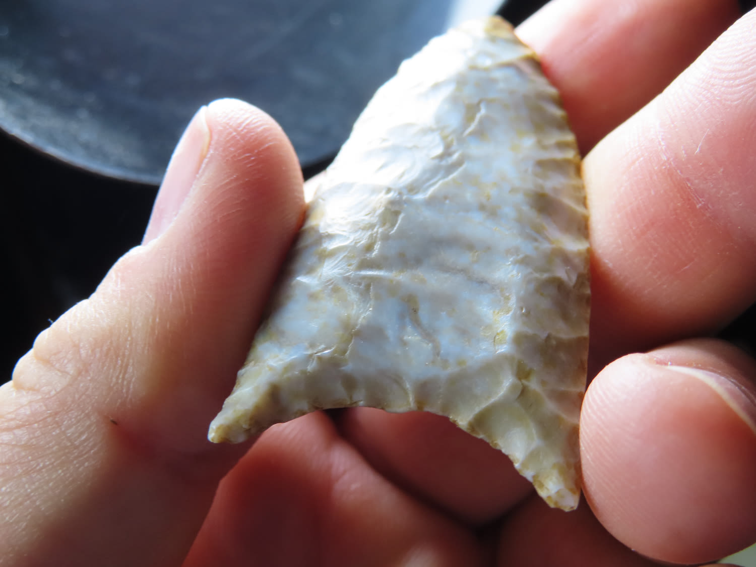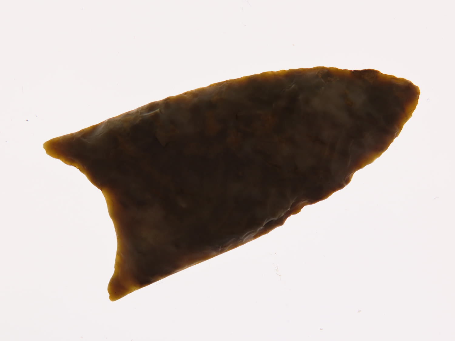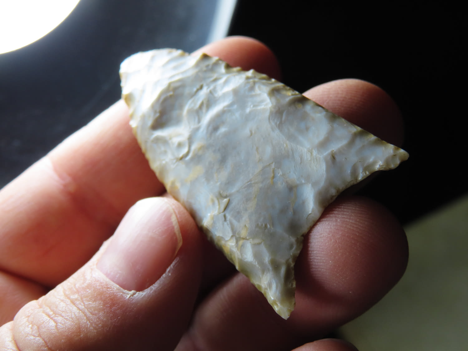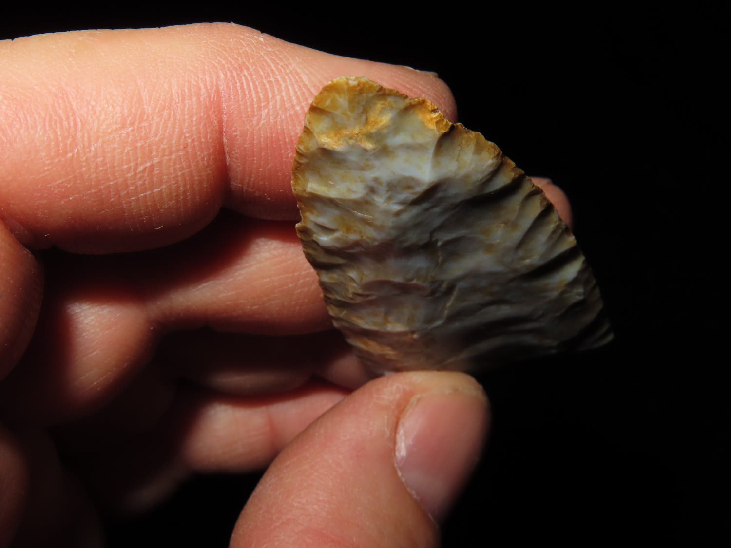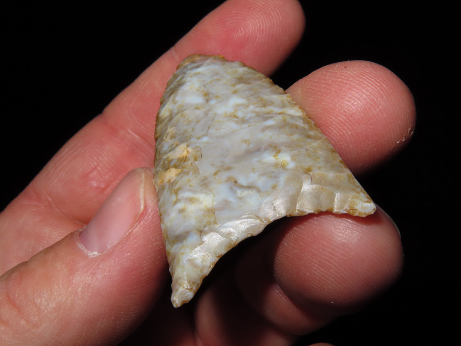 2 3/8″ RARE REDSTONE CLOVIS, DICKEY COA, JO DAVIES COUNTY ILLNOIS, EX M. TIPPETT, EXCELLENT FLAKING W/ GREAT COLOR & NICE FLUTES ON BOTH SIDES