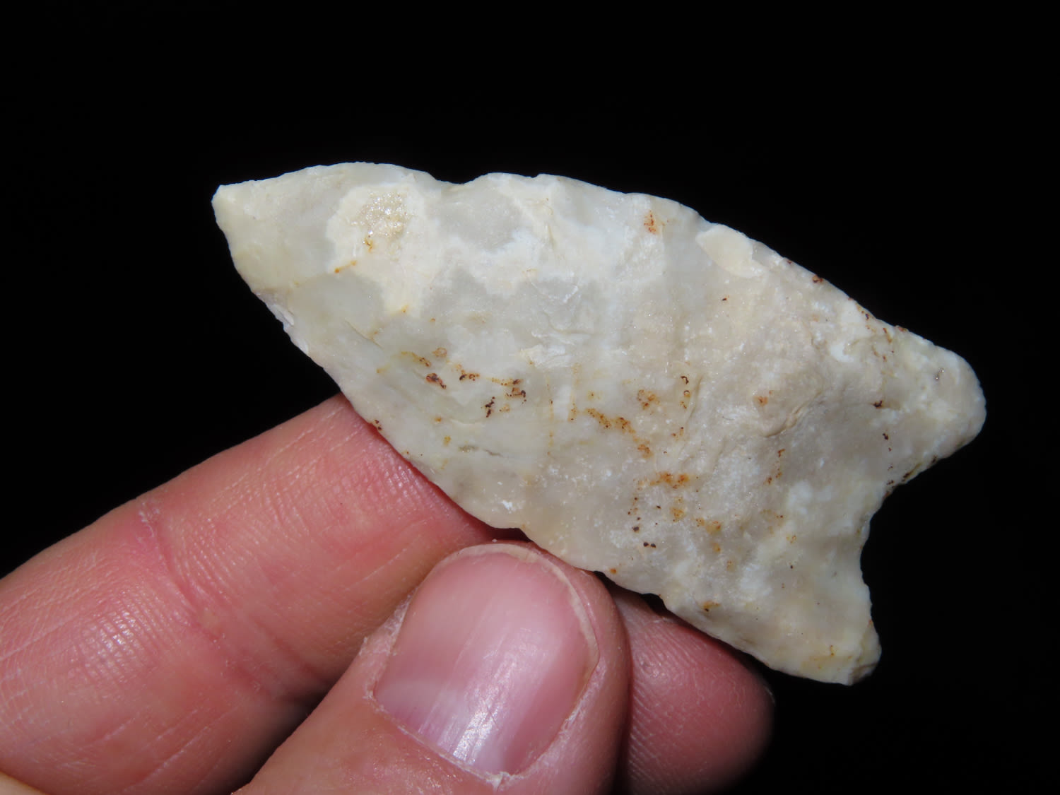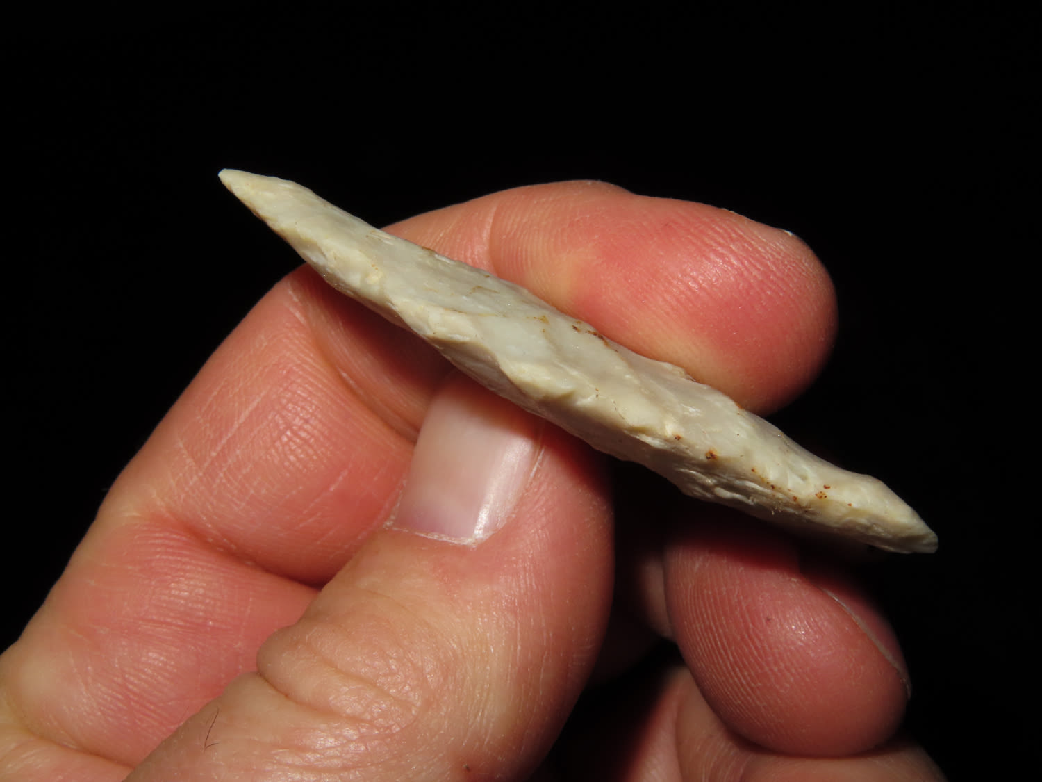 2 1/4″ PALEO FLUTED CLOVIS FOUND IN CRAIGHEAD COUNTY ARKANSAS, NICE COLOR AND GREAT PATINA, INDIAN ARROWHEAD, ARTIFACT