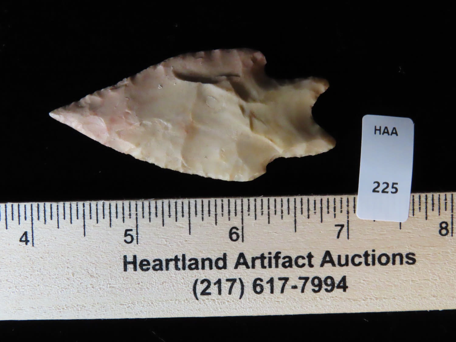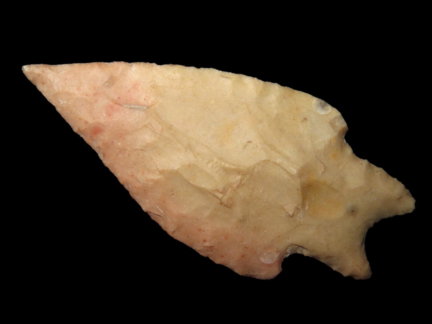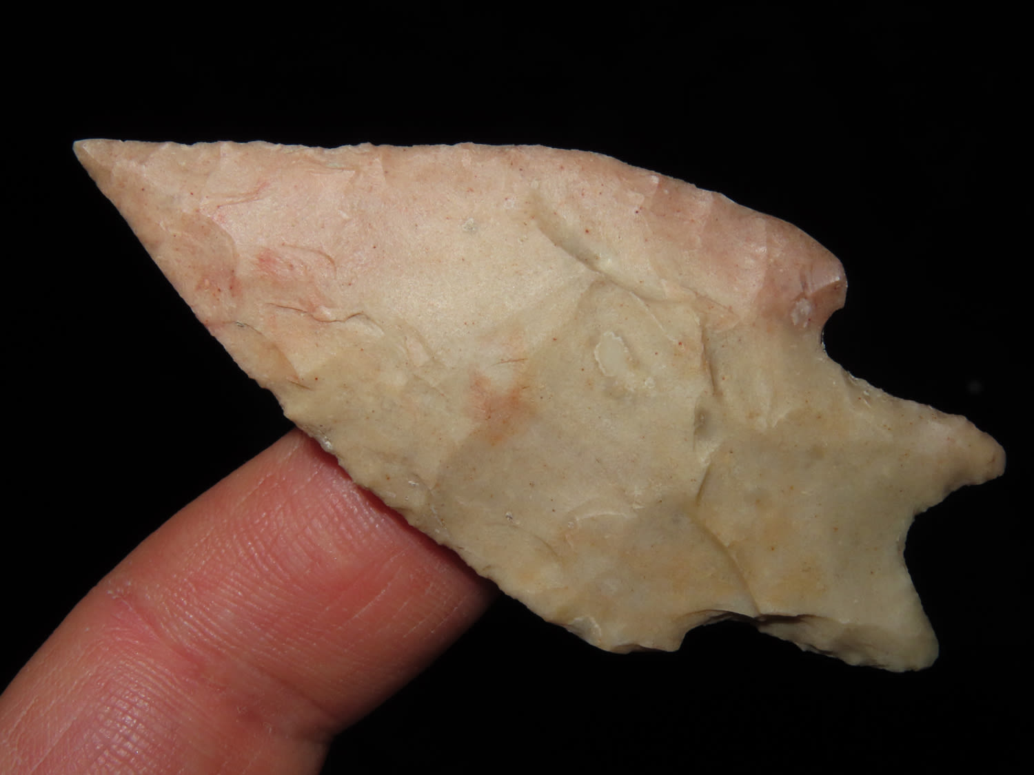 2 3/4″ TEXAS PERD / PEDERNALES FOUND IN LASALLE COUNTY TEXAS, WELL FLAKED & COLORFUL EXAMPLE, INDIAN ARROWHEAD, ARTIFACT