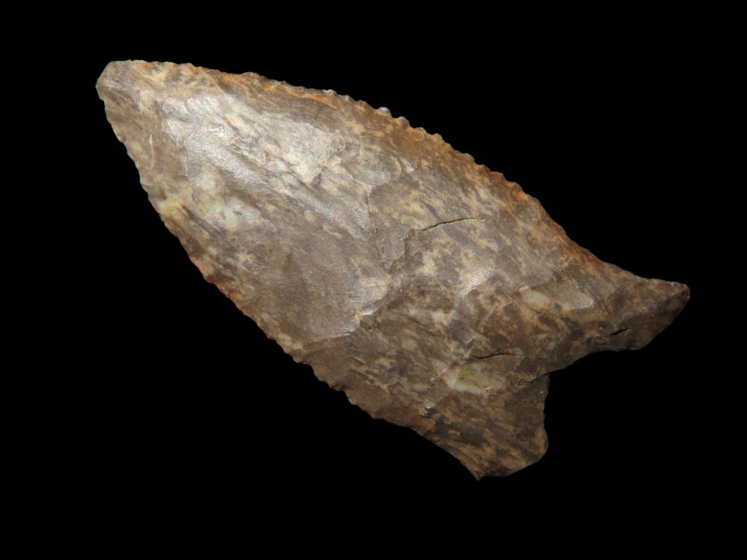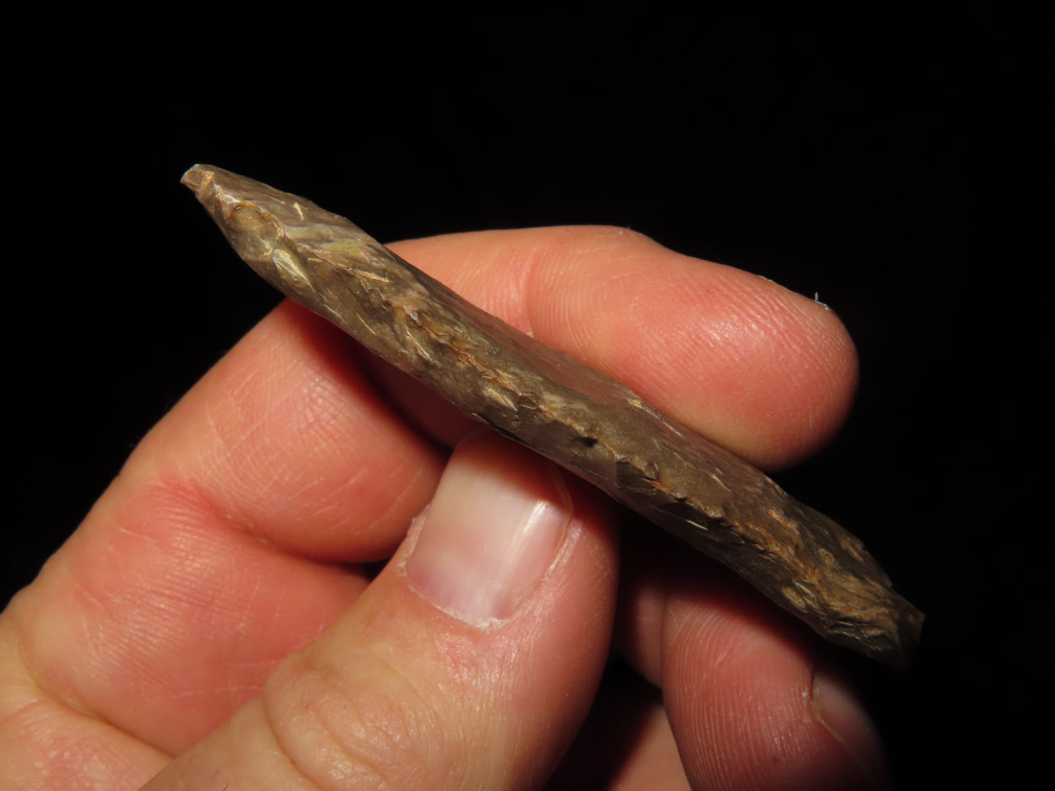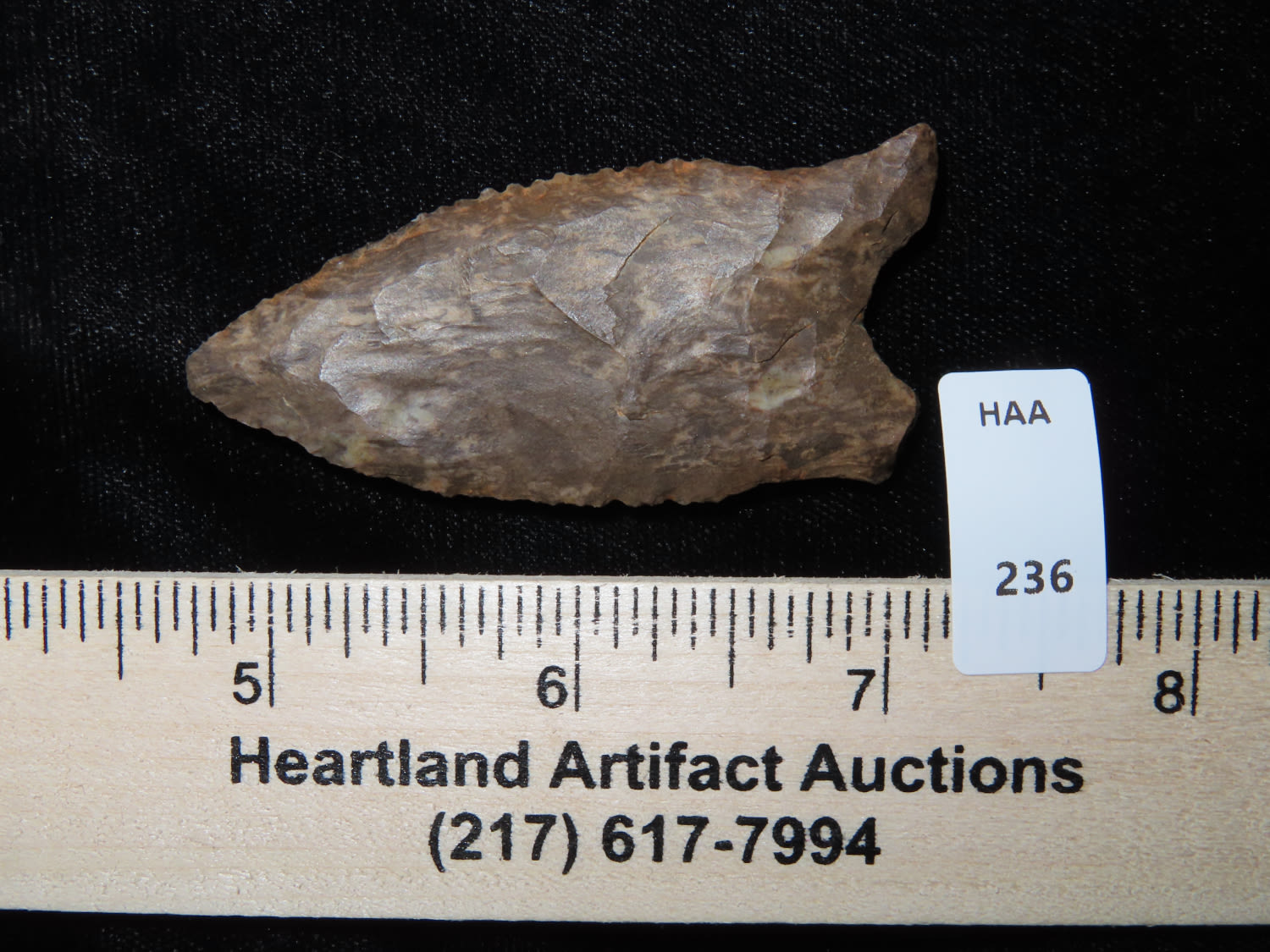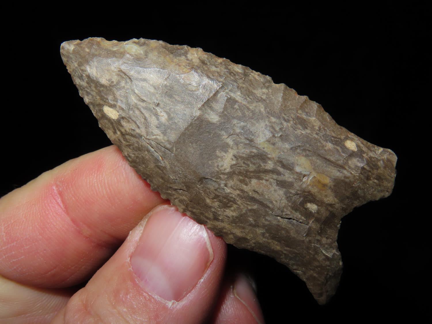2 9/16″ PALEO QUAD FOUND IN BENTON COUNTY TENNESSEE, COLORFUL EXAMPLE, VERY WELL FLAKED, EX SEAN COTNER