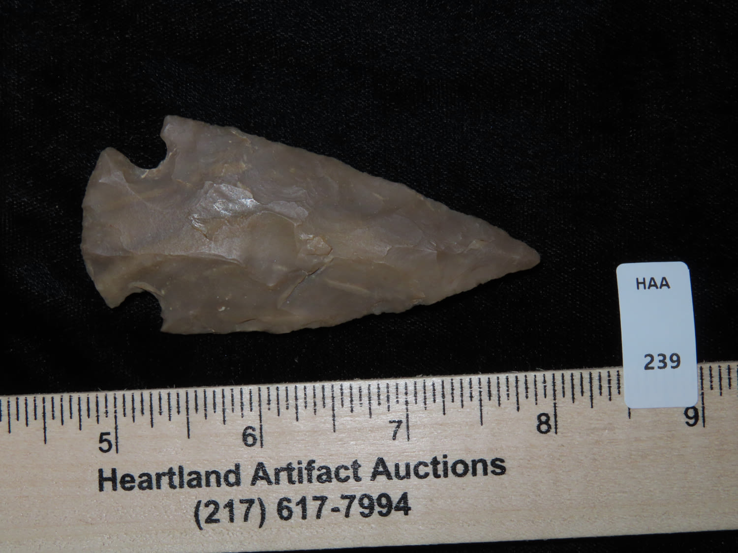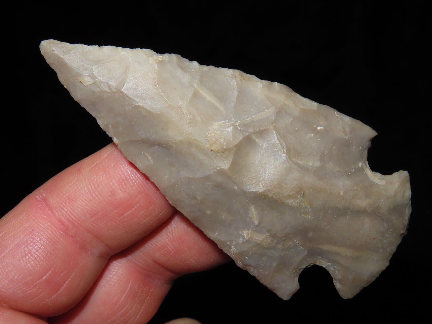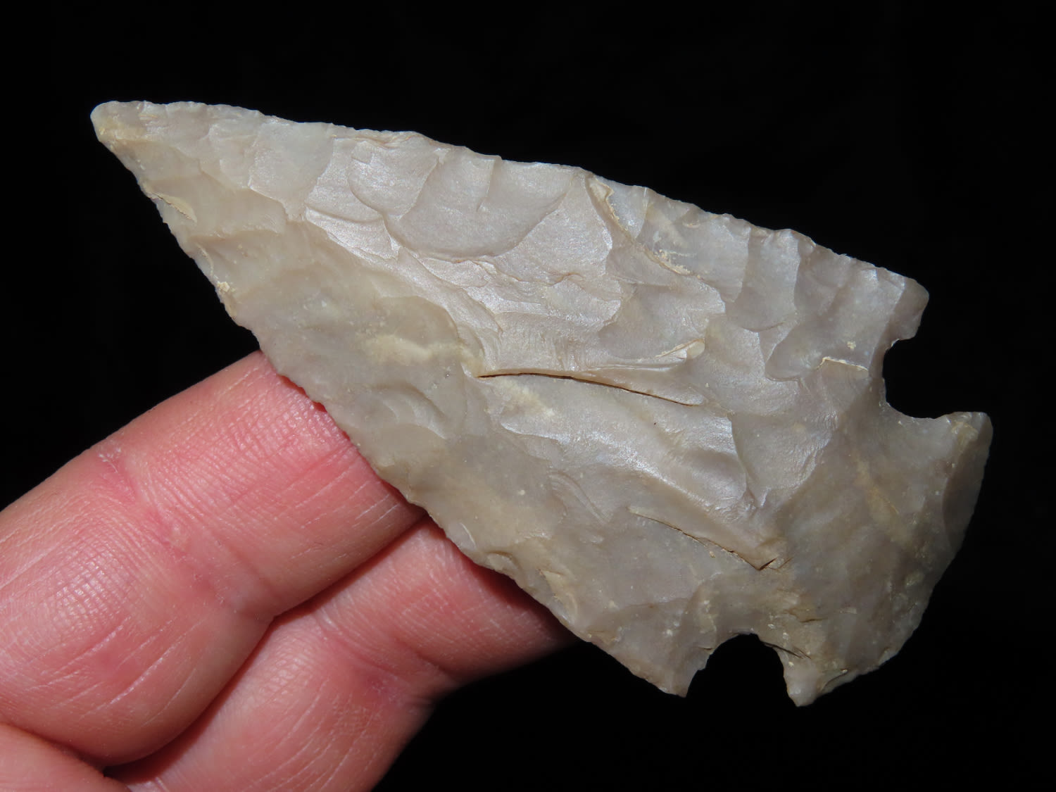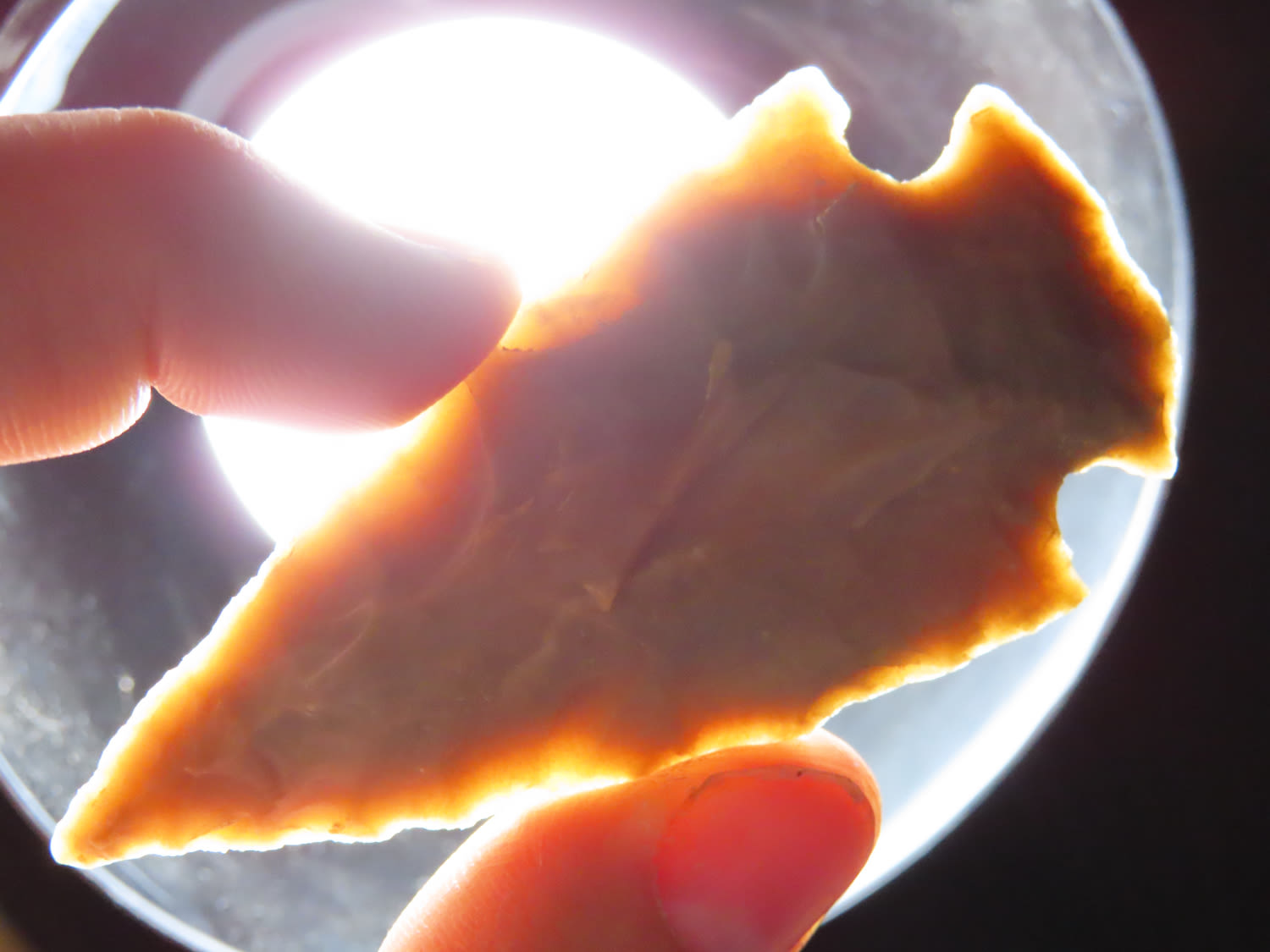 3 3/16″ HIGHLY TRANSLUCENT WILLIAMS CORNER NOTCH FOUND IN LASALLE COUNTY TEXAS, NICE LARGE EXAMPLE, INDIAN ARROWHEAD, ARTIFACT