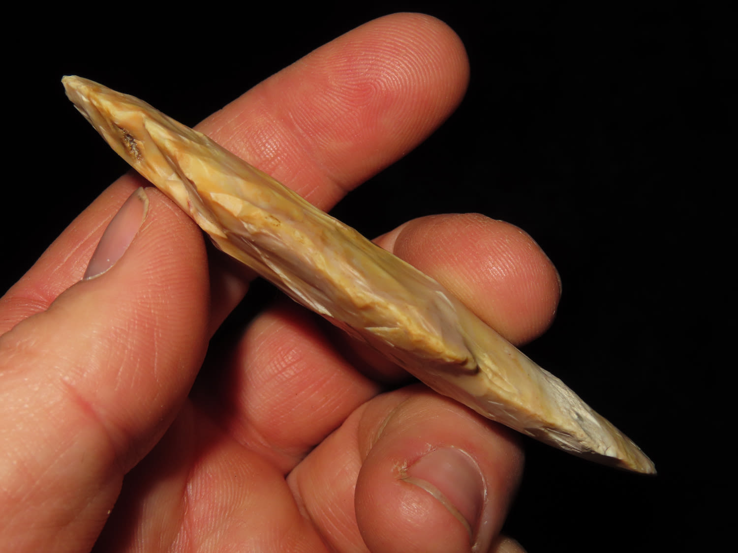 3 3/8″ COLORFUL FLINT RIDGE ADENA FOUND IN LICKING COUNTY OHIO, INDIAN ARROWHEAD ARTIFACT