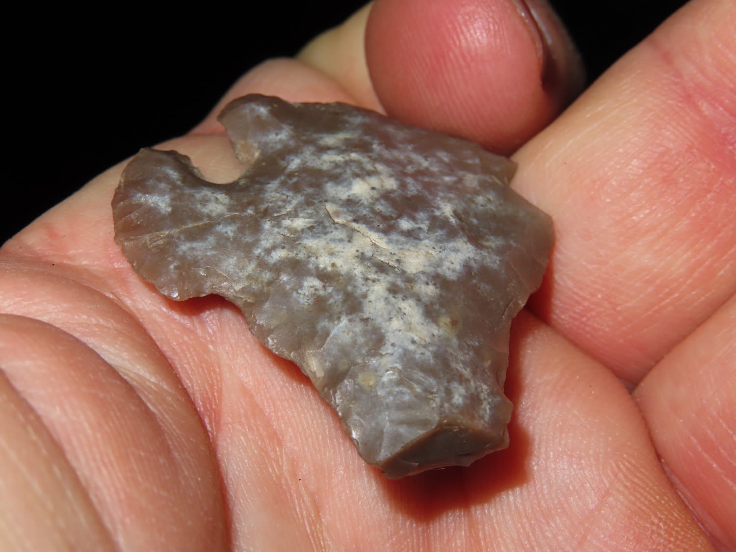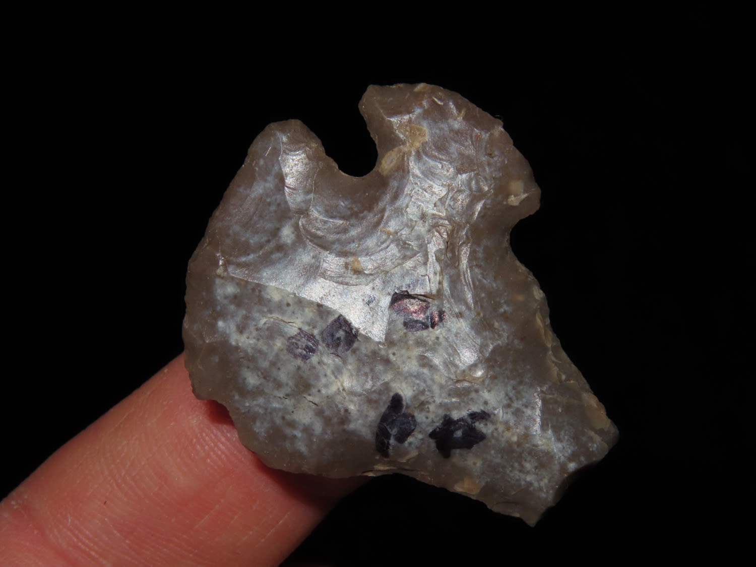 1 9/16″ TEXAS CORNER TANG DRILL FOUND IN KERR COUNTY TEXAS, HIGHLY TRANSLUCENT AND WELL PATIANTED EXAMPLE, TIP BROKEN AS SHOWN