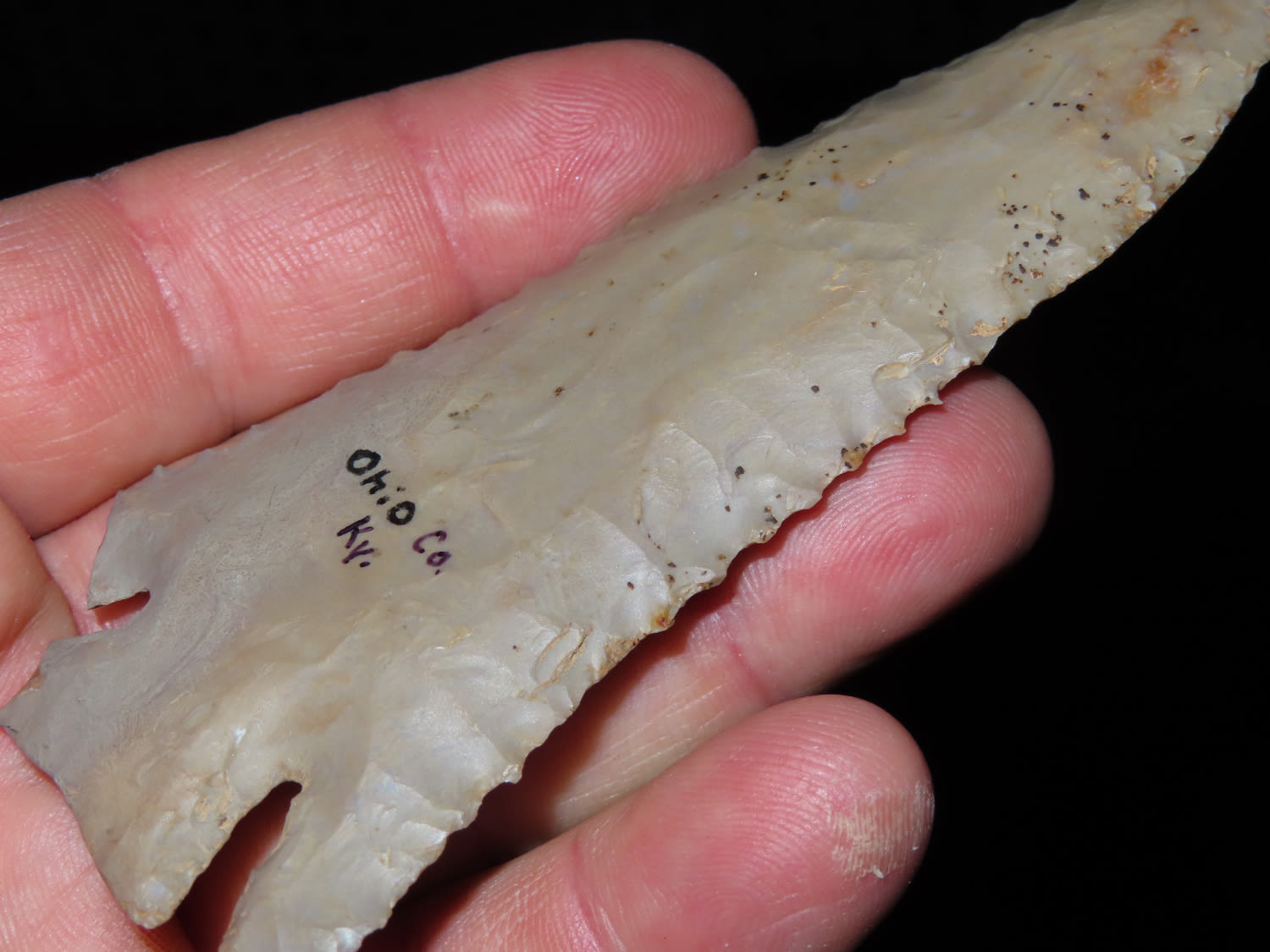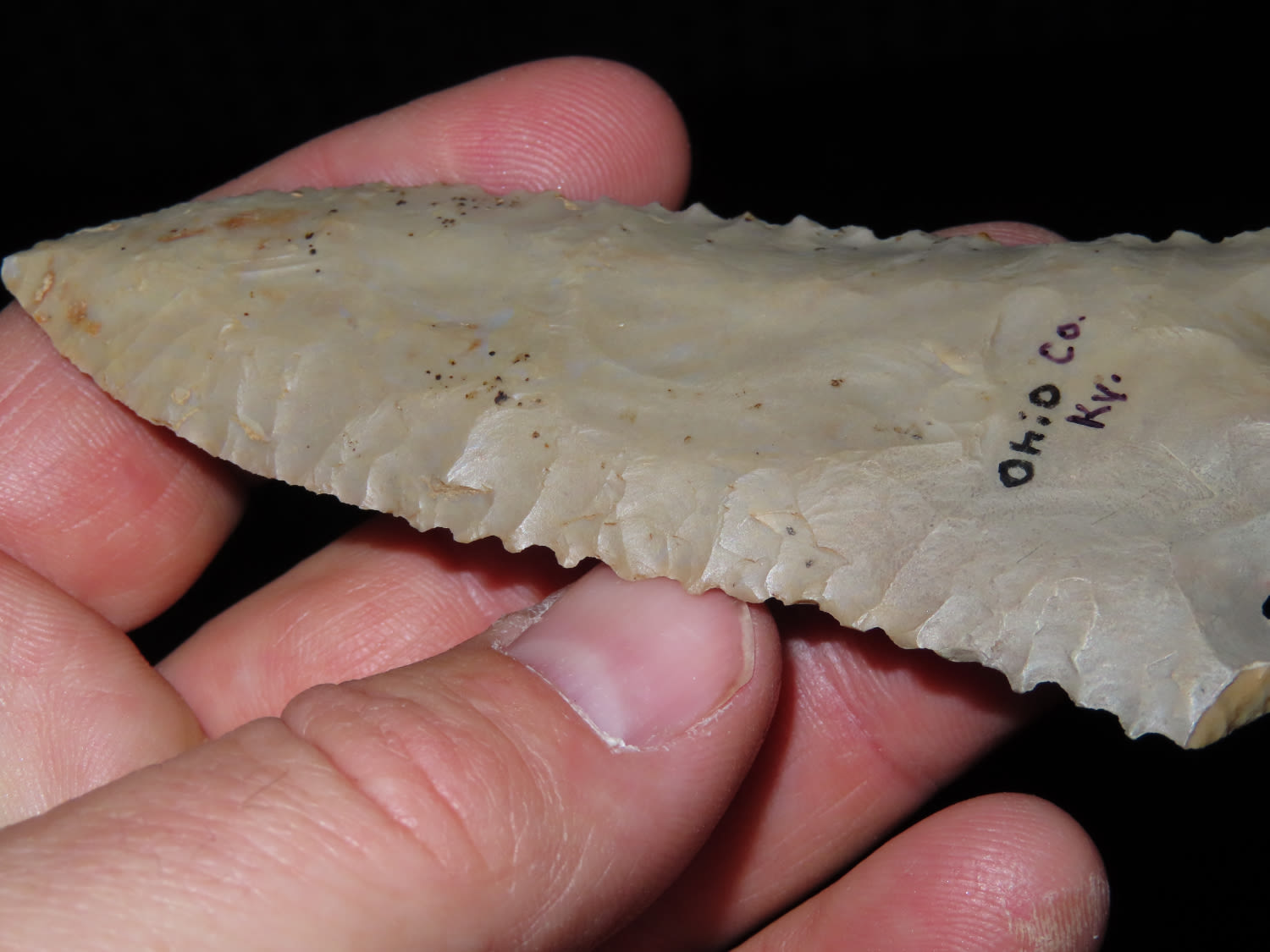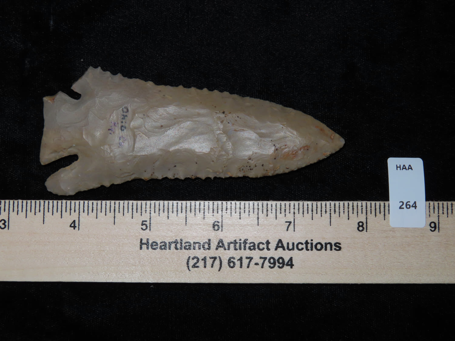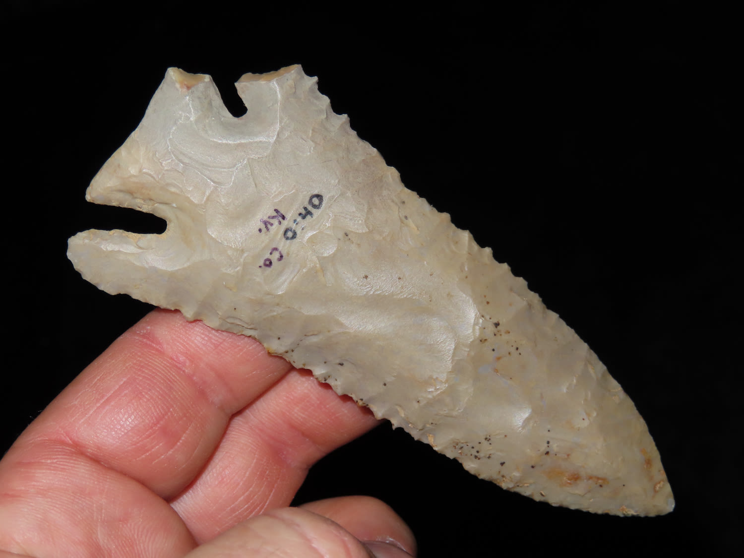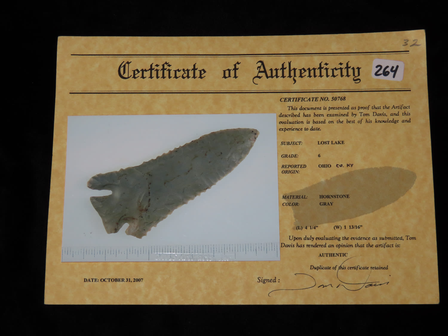 4 1/4″ INCREDIBLE DEEP NOTCH LOST LAKE, TOM DAVIS COA, FOUND IN OHIO COUNTY KENTUCKY, OUTSTANDING FORM AND SUPERIOR FLAKING
