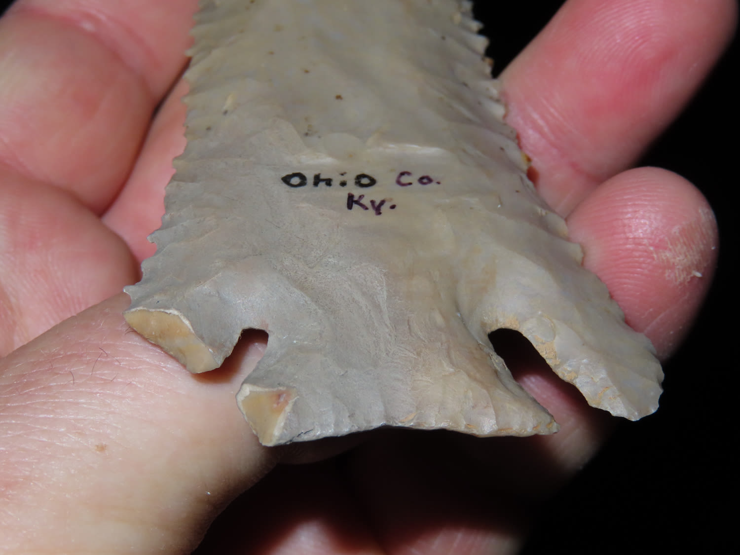 4 1/4" INCREDIBLE DEEP NOTCH LOST LAKE, TOM DAVIS COA, FOUND IN OHIO COUNTY KENTUCKY, OUTSTANDING FORM AND SUPERIOR FLAKING