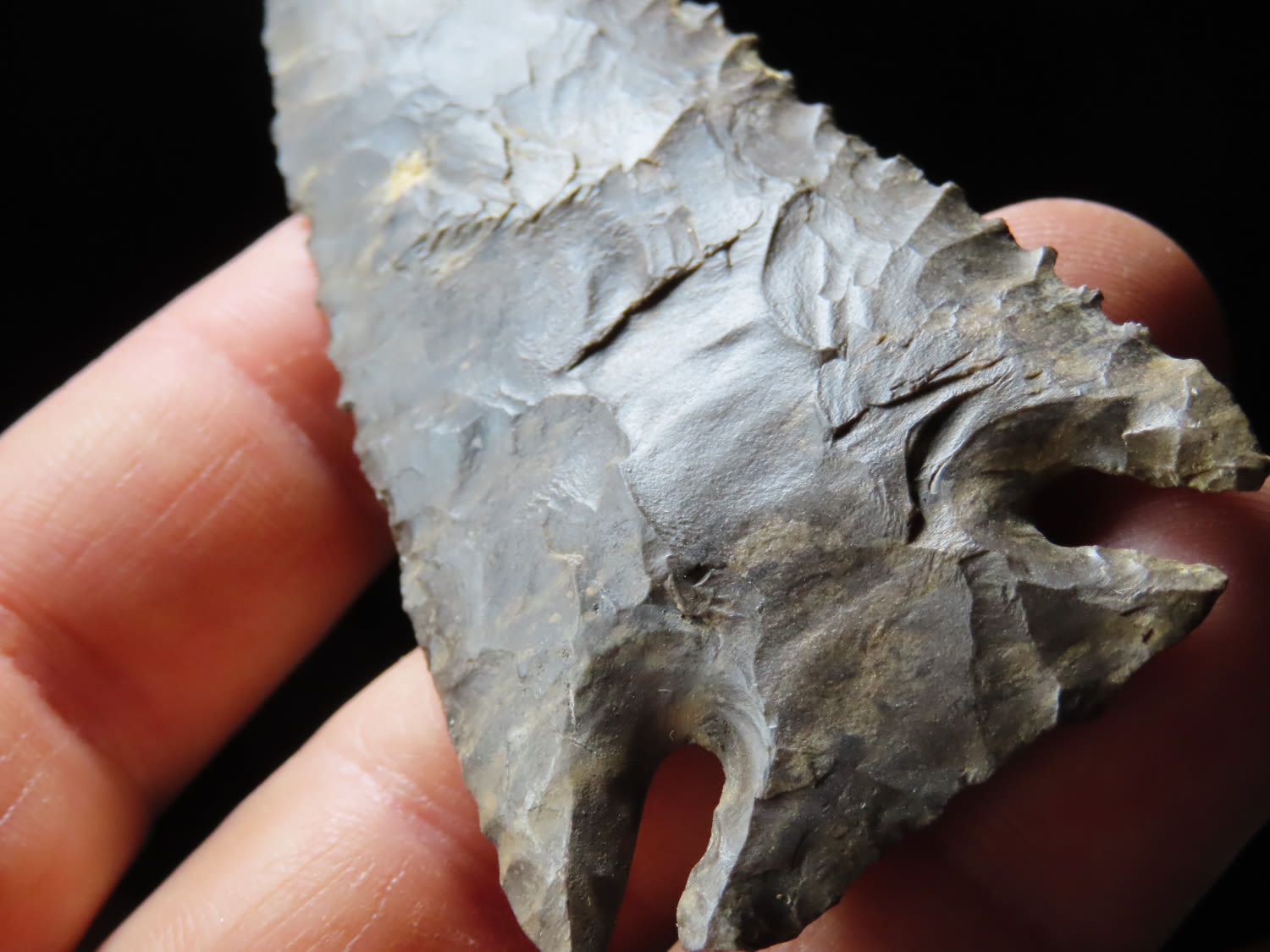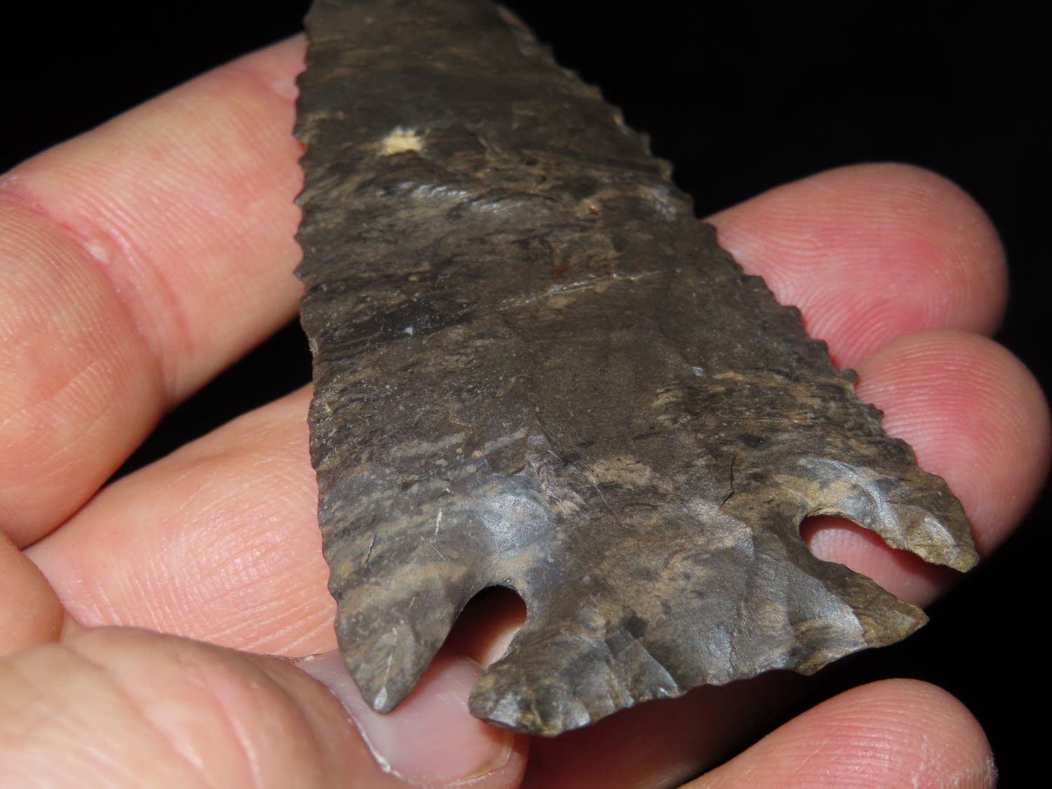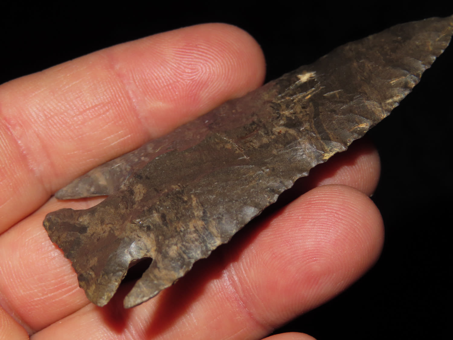 3 3/16″ PHENOMENAL LOST LAKE / KIRK CORNERNOTCH (RESTORED EAR) FOUND IN STEWART COUNTY TENNESSEE, IMPECCABLE FLAKIMG NEEDLE TIP