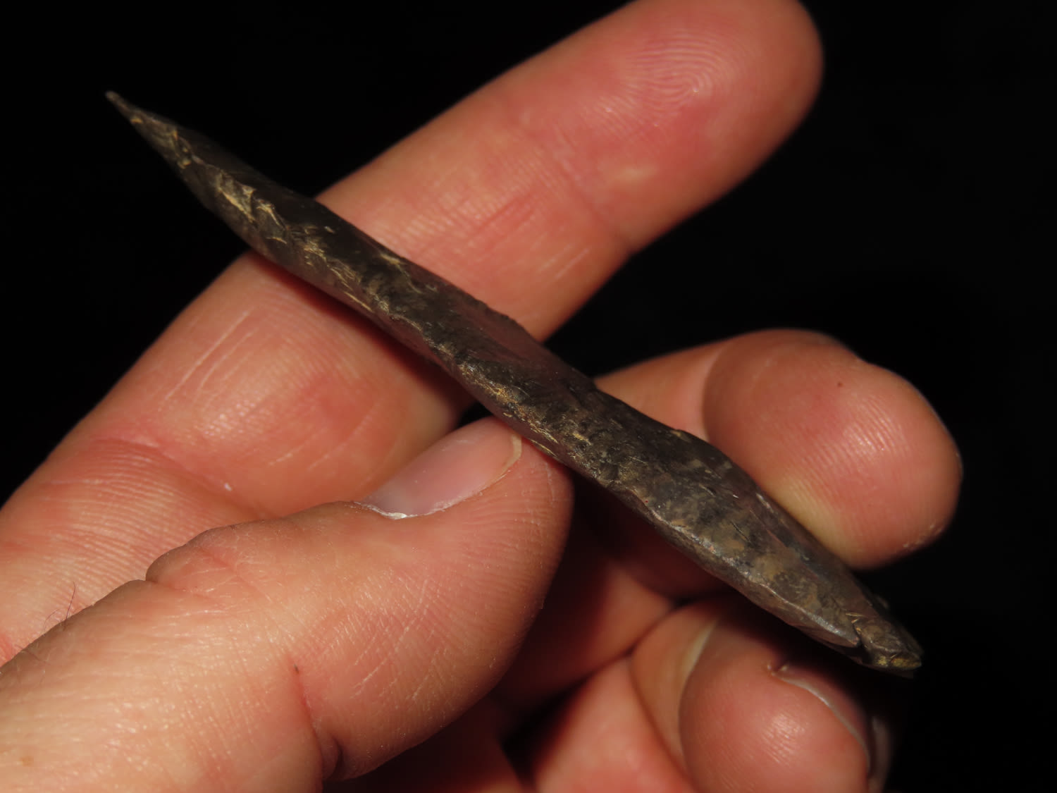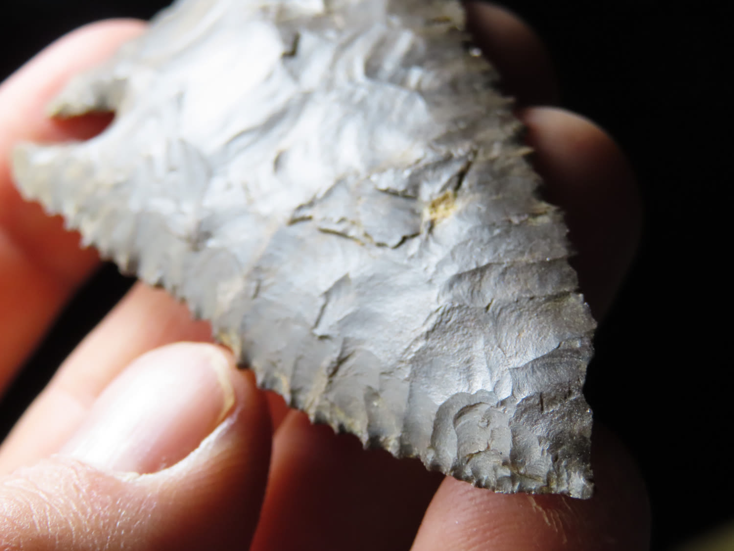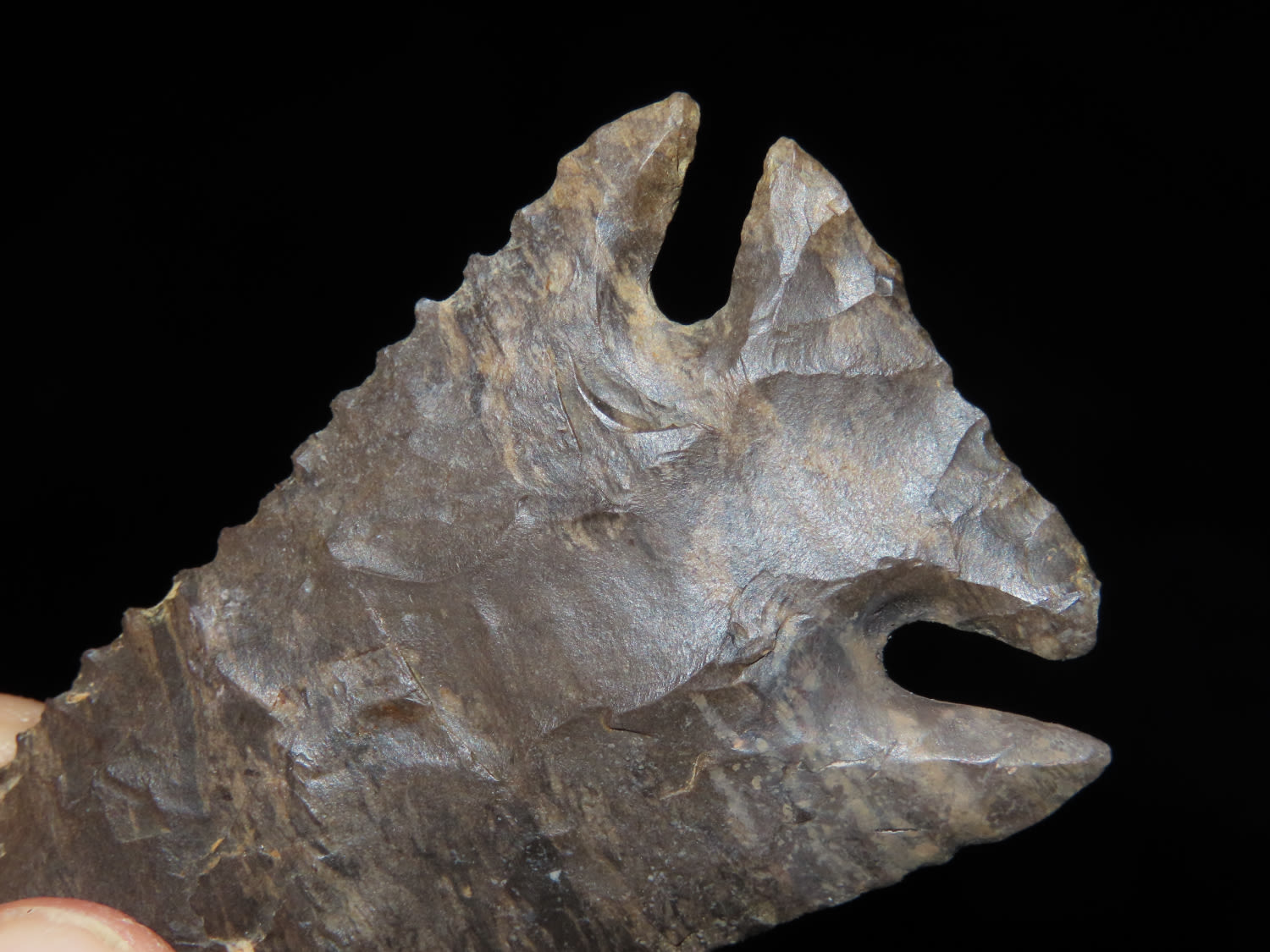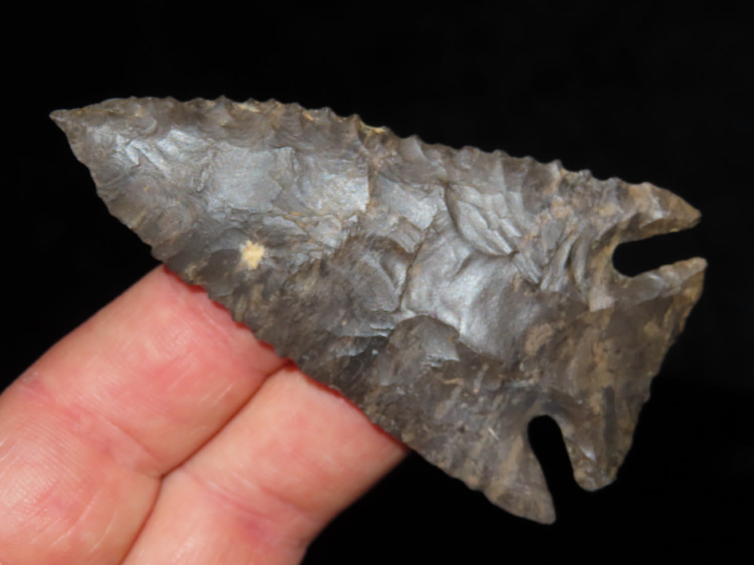 3 3/16″ PHENOMENAL LOST LAKE / KIRK CORNERNOTCH (RESTORED EAR) FOUND IN STEWART COUNTY TENNESSEE, IMPECCABLE FLAKIMG NEEDLE TIP