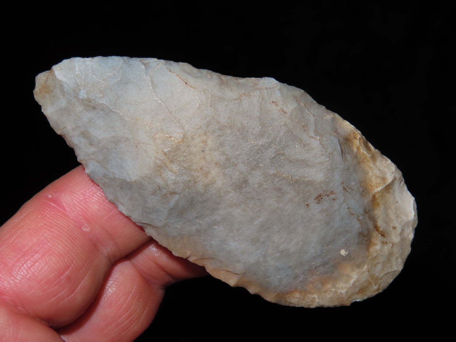 3 7/16" OVOID KNIFE BLADE FOUND IN JACKSON COUNTY ILLINOIS, NICE THIN EXAMPLE, INDIAN ARROWHEAD ARTIFACT
