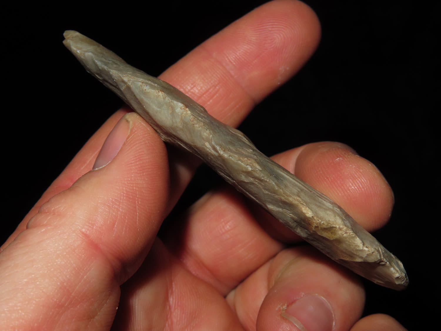 3 7/16″ OVOID KNIFE BLADE FOUND IN JACKSON COUNTY ILLINOIS, NICE THIN EXAMPLE, INDIAN ARROWHEAD ARTIFACT