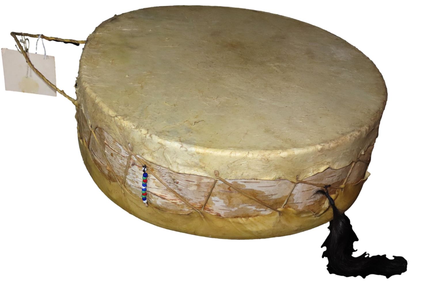 15″ HISTORIC CHIPPEWA INDIANS CLAN DRUM, RARE CIRCA EARLY 1900’S HISTORICAL ERA ARTIFACT, NICE EXAMPLE