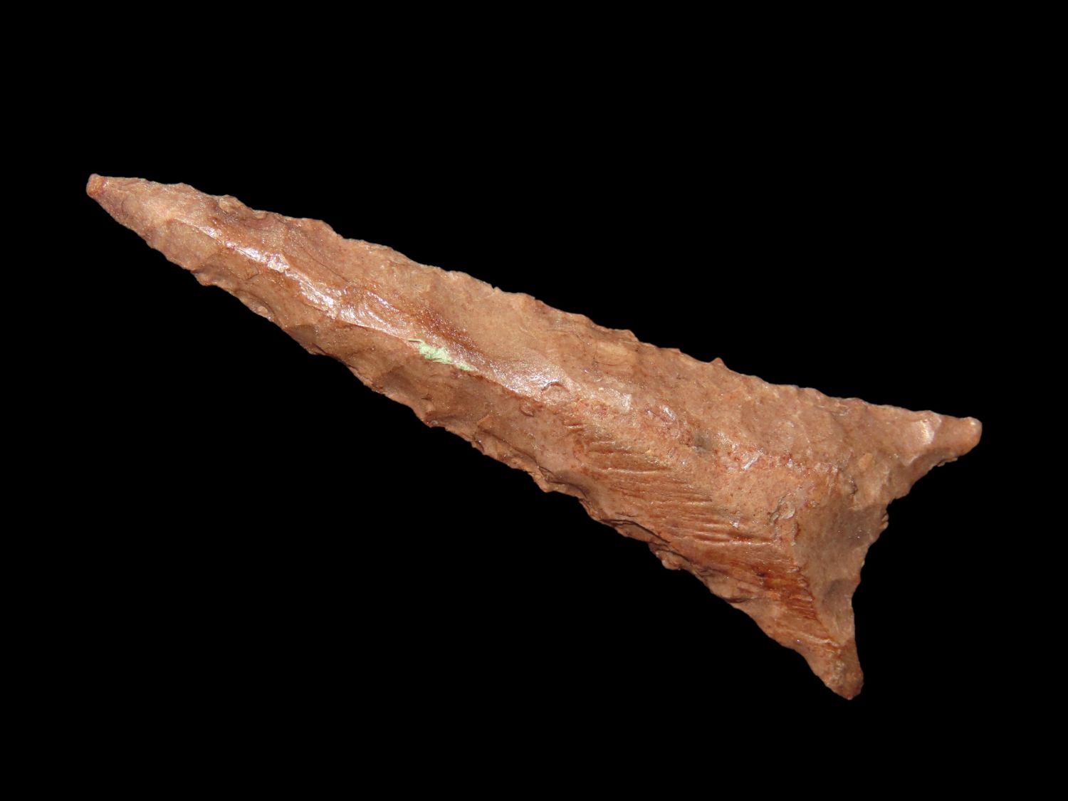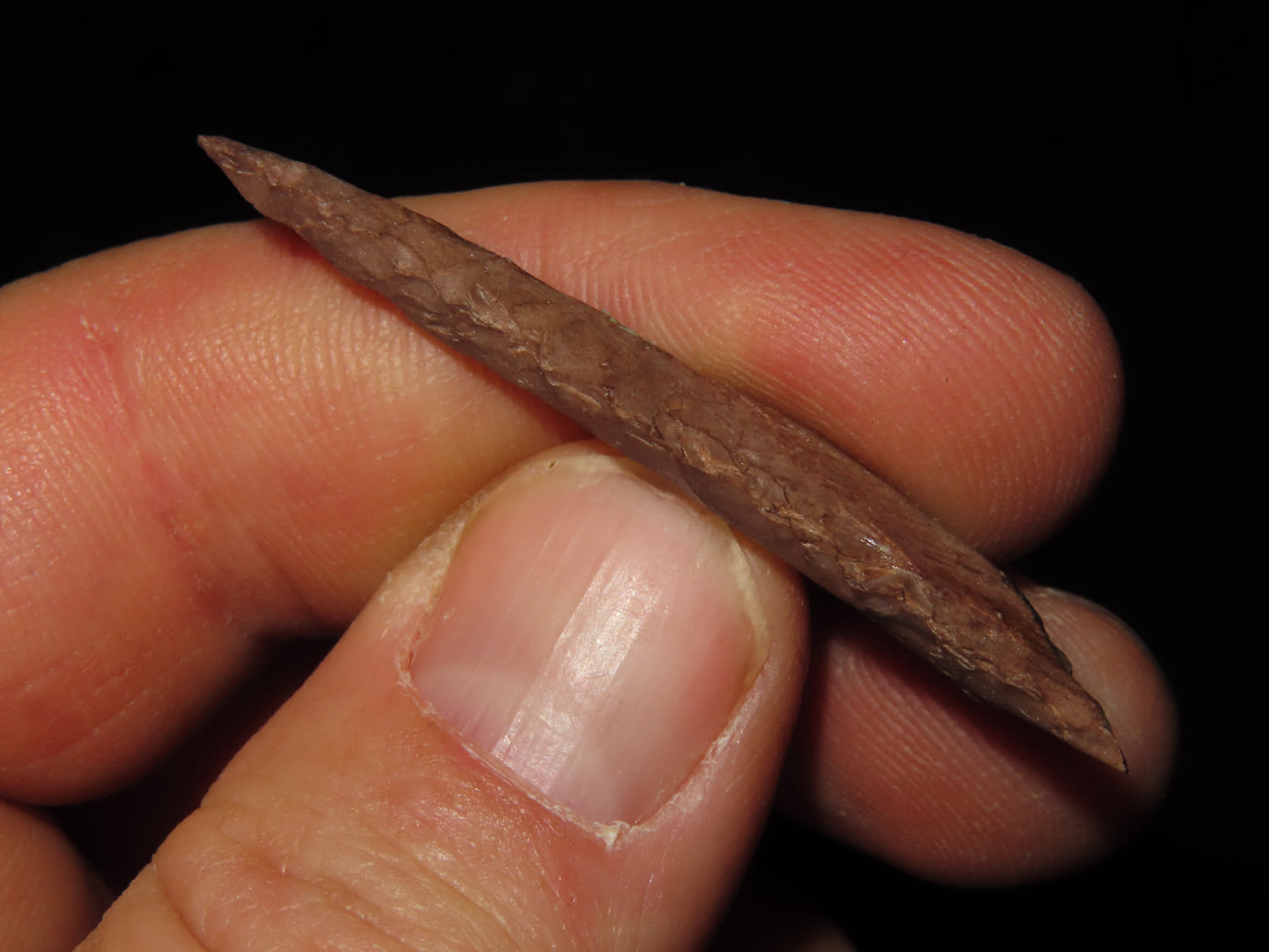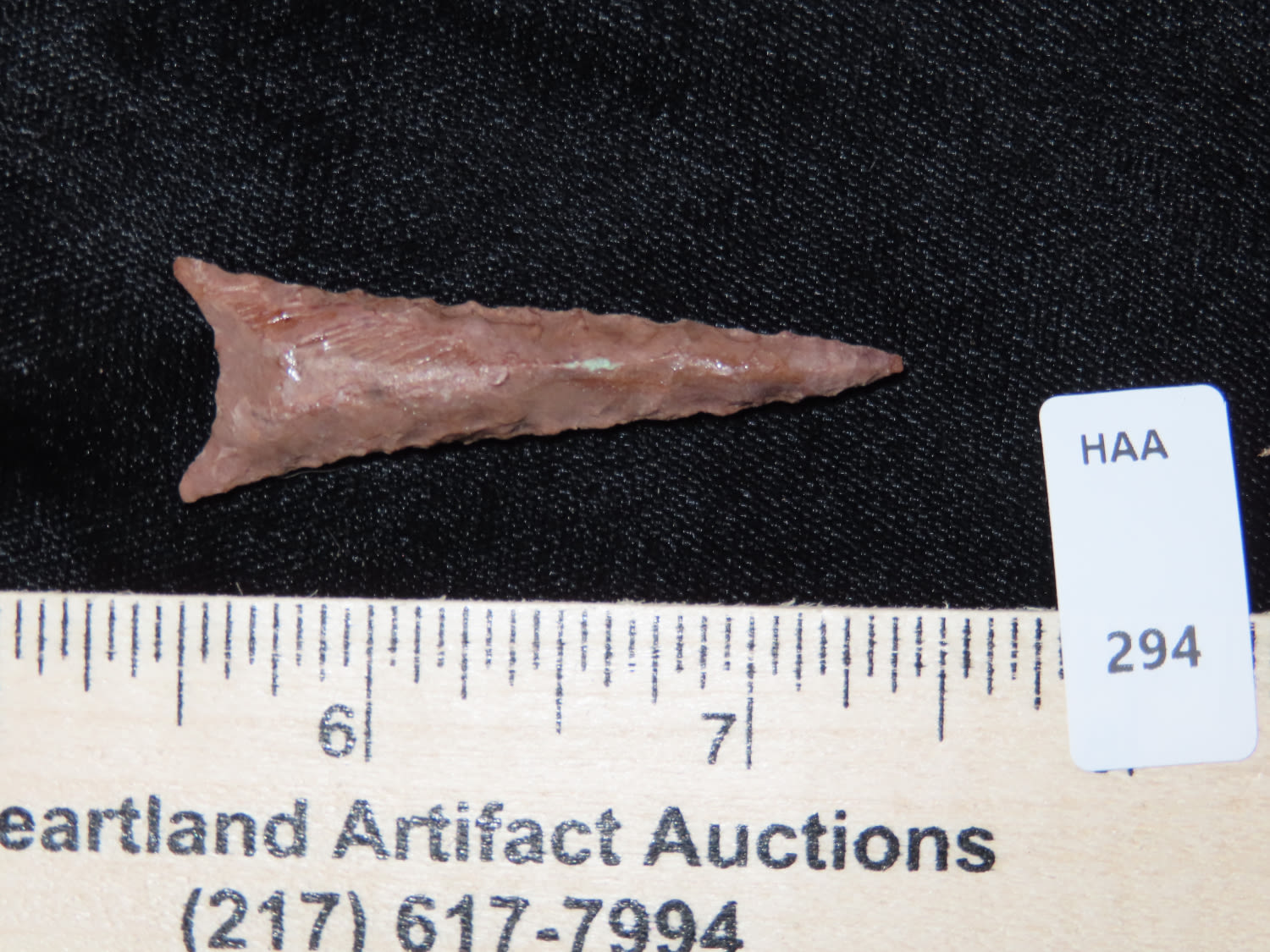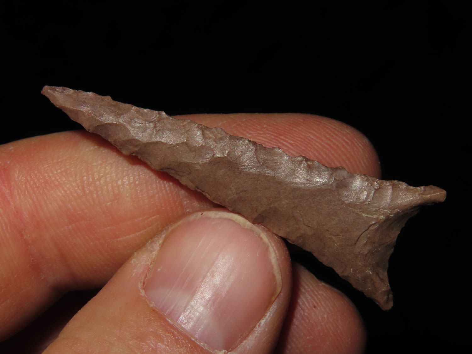 2" SERRATED TRIANGLE FOUND IN NEW MEXICO, VERY WELL FLAKED EXAMPLE WITH NO DAMAGE, INDIAN ARROWHEAD, ARTIFACT