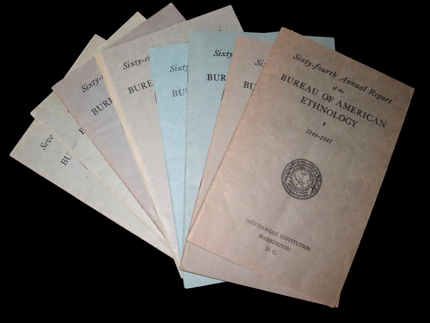 LOT OF 8 1940’S-1950’S FIRST EDITION SMITHSONIAN ANNUAL REPORT OF THE BUREAU OF AMERICAN ETHNOLOGY, 1946-1954, RARE BOOKS