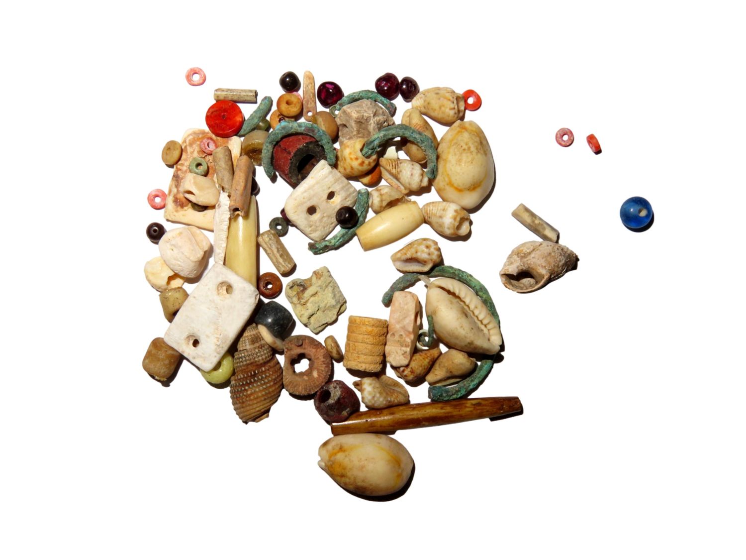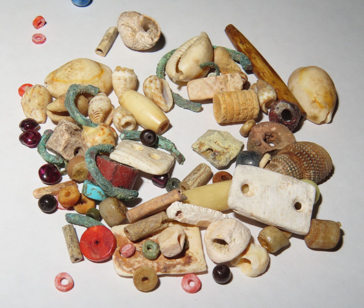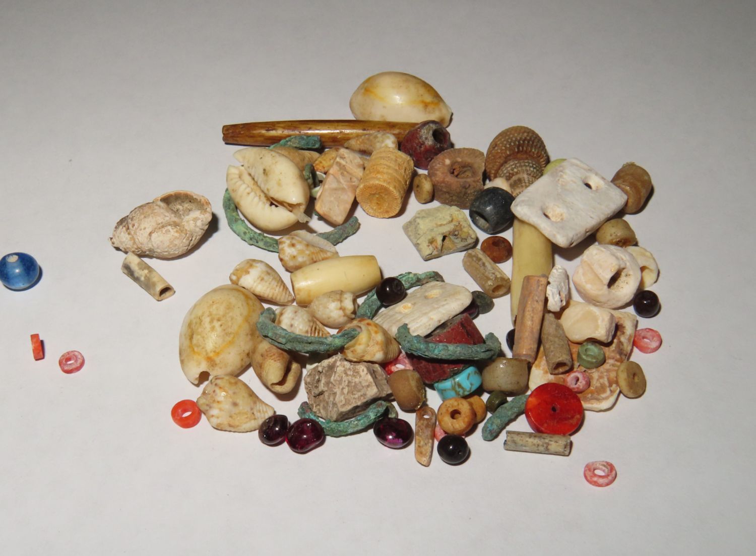 NICE GROUP OF STONE, SHELL, BONE, & COPPER BEADS FROM MEXICO, PRECOLUMBIAN ARTIFACTS