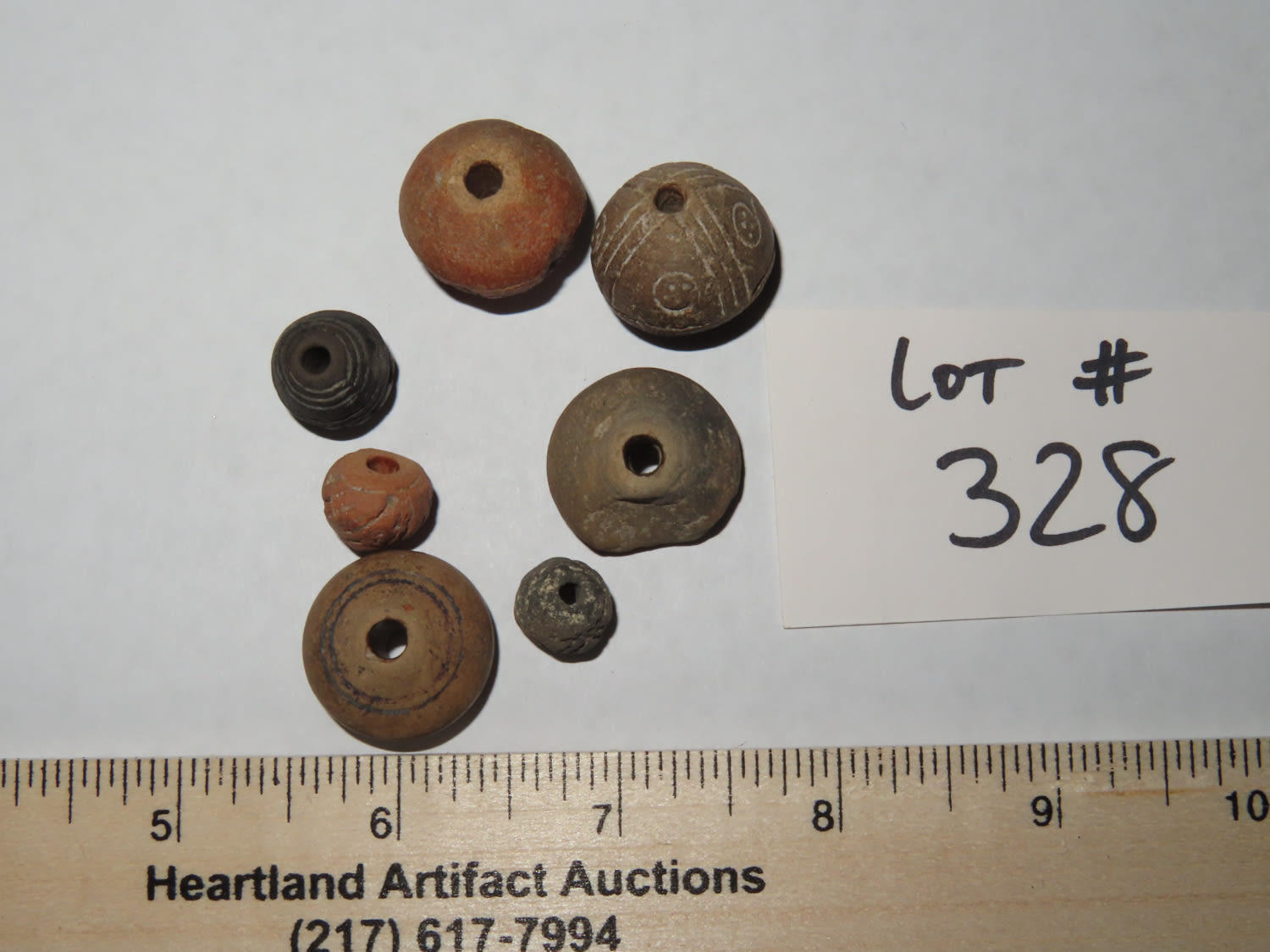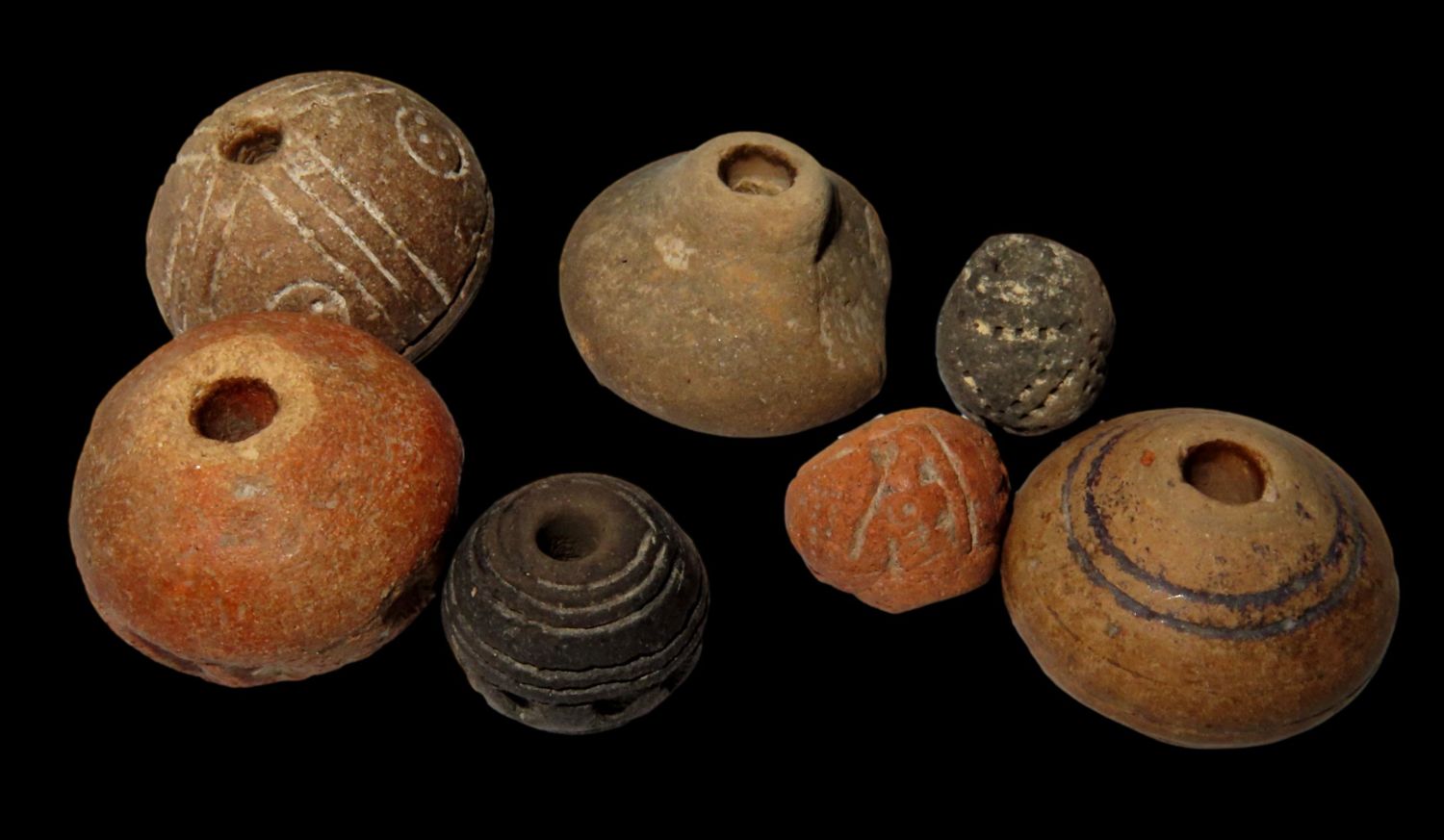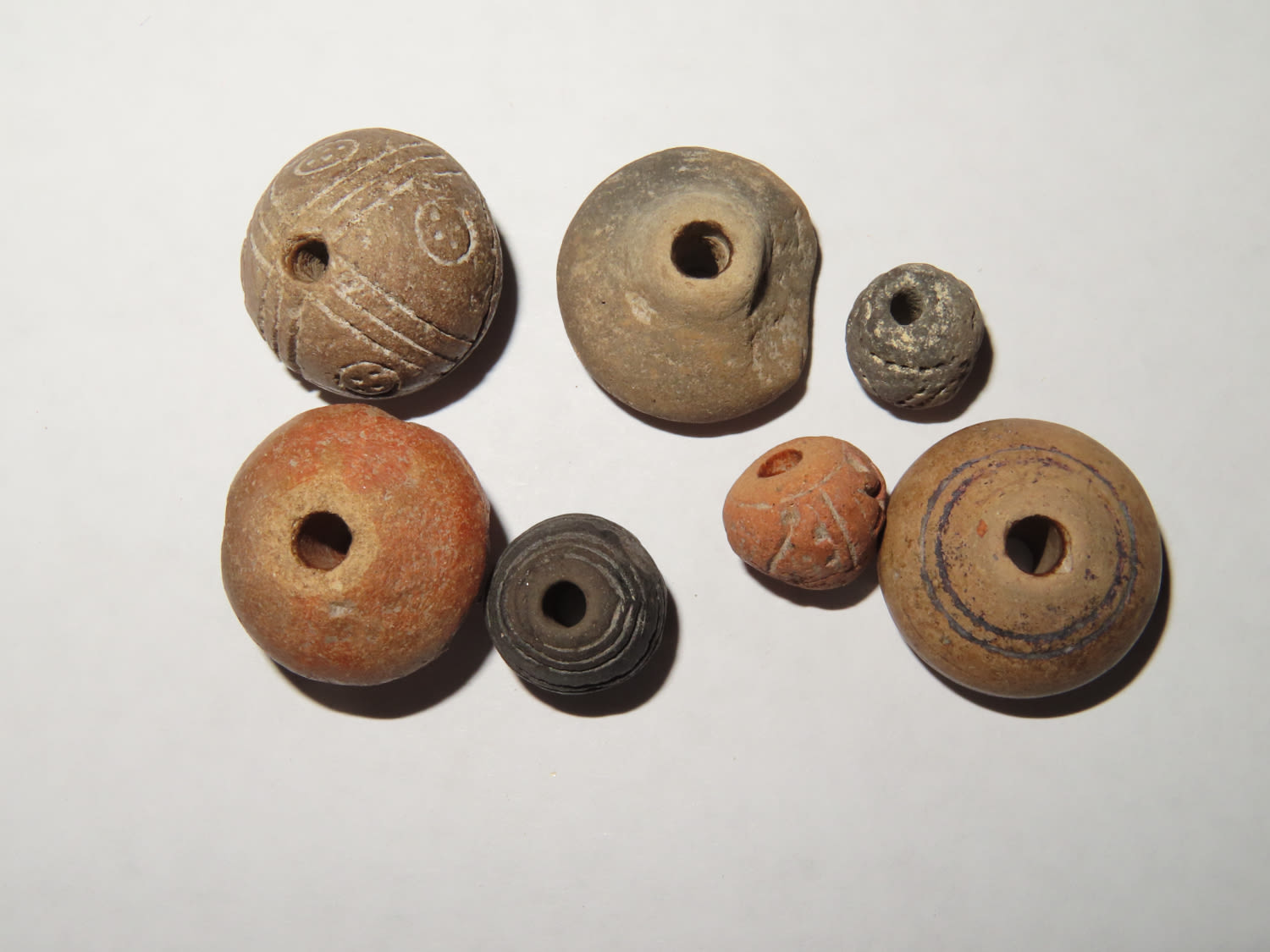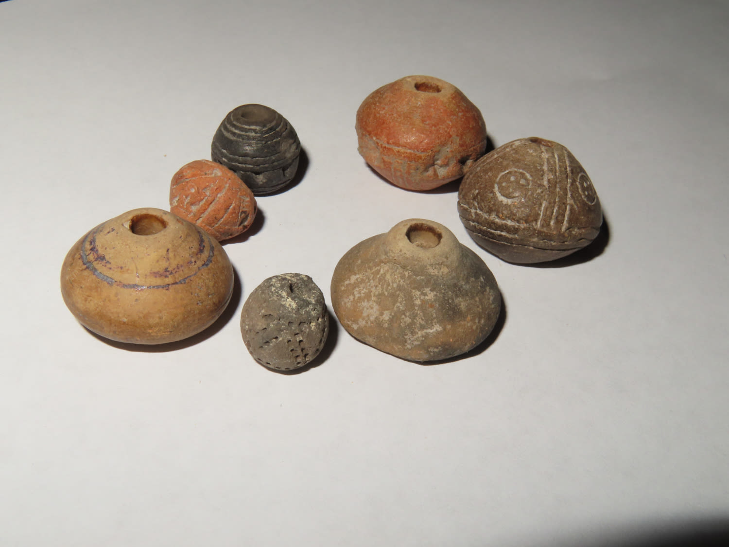 NICE LOT OF ENGRAVED SPINDLE WHORL POTTERY BEADS FROM MEXICO, PRE-COLUMBIAN ARTIFACTS, BEAD, PENDANT