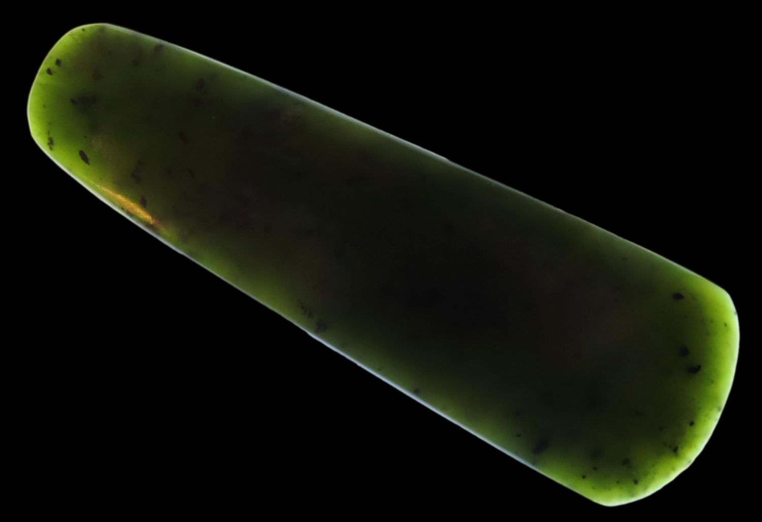 3 1/4″ TRANSLUCENT OLMEC/MAYAN JADE CELT, GREAT POLISH, PRE-COLUMBIAN ARTIFACT AXE, WEAPON, TOOL