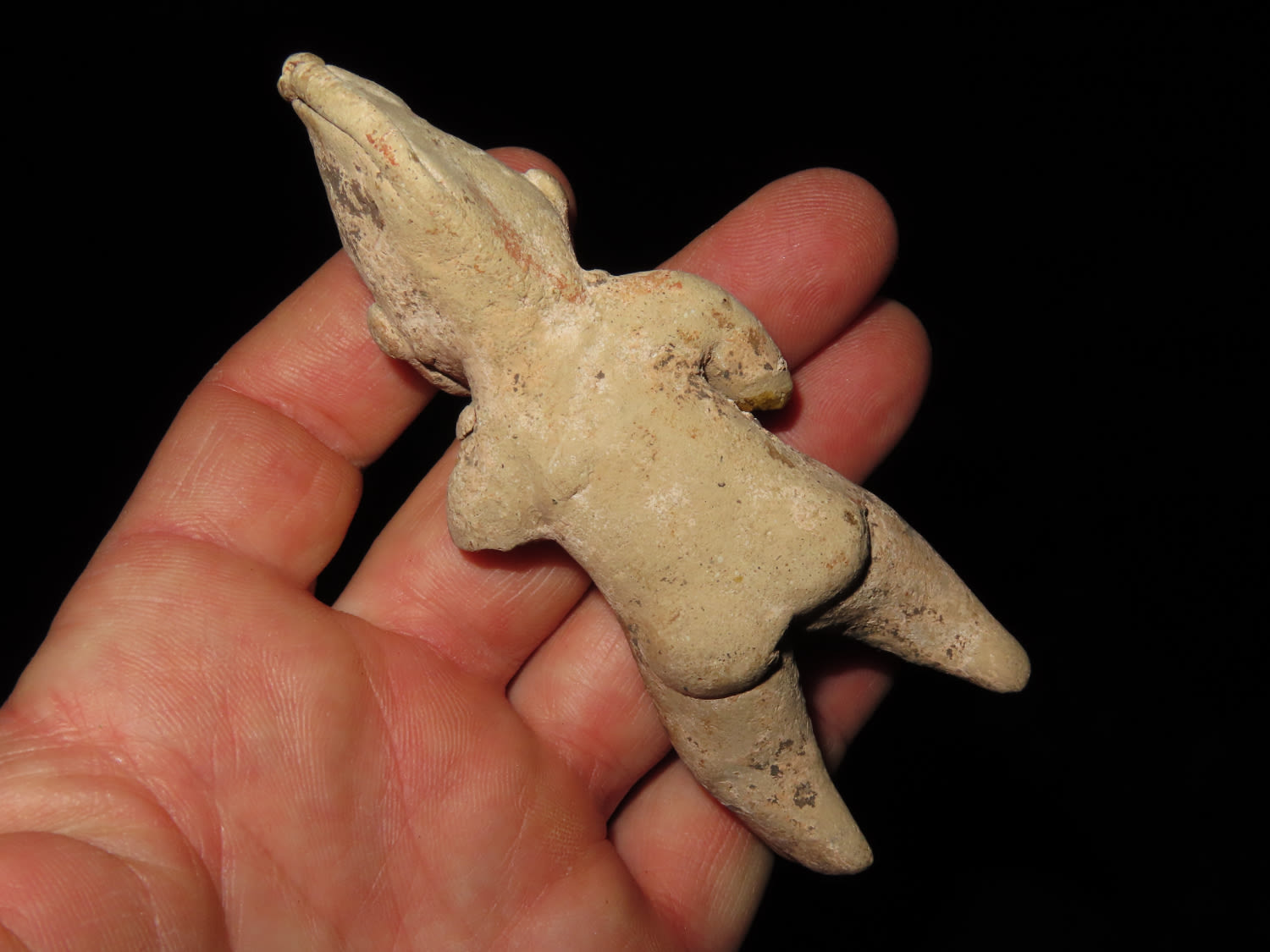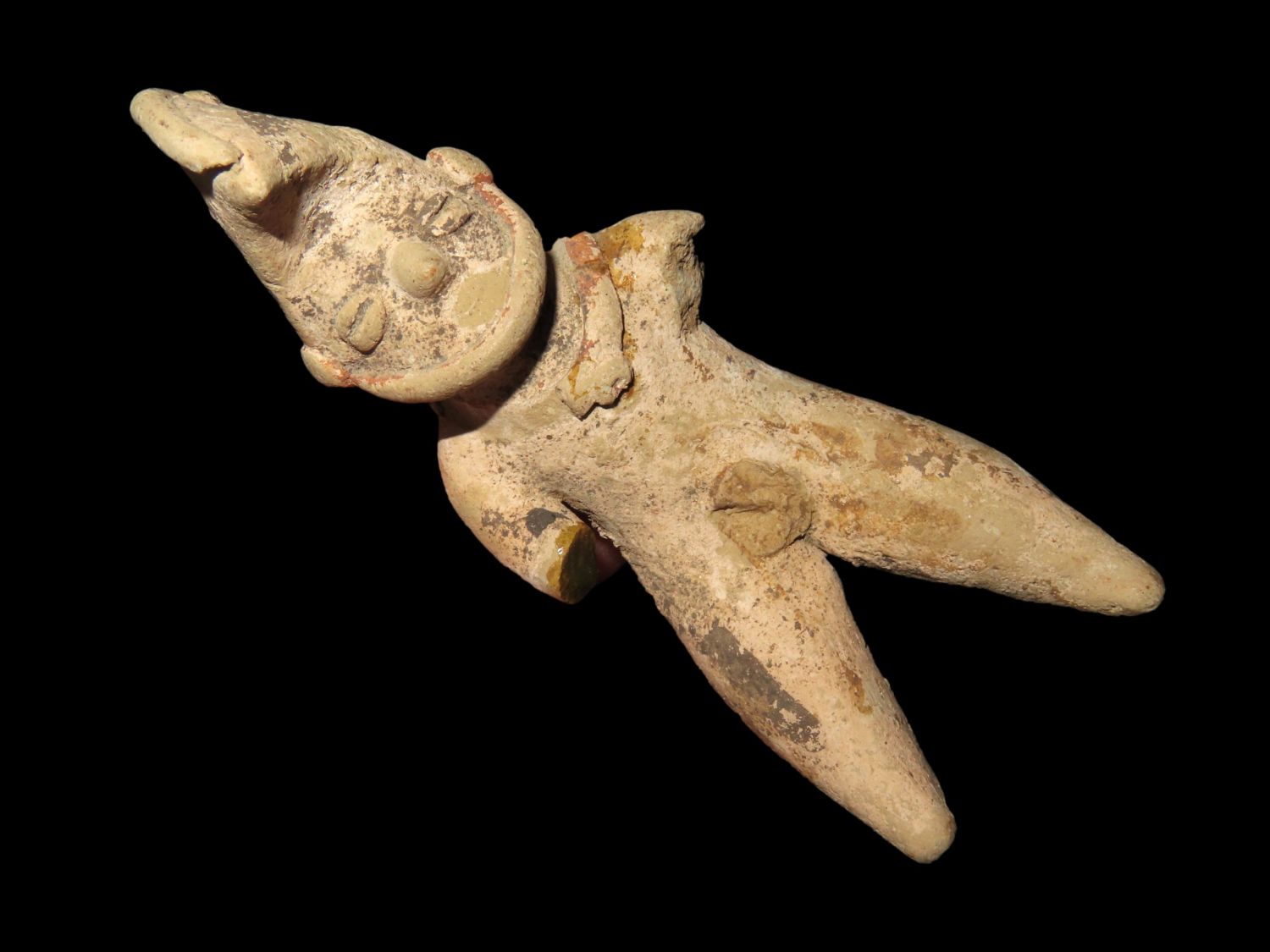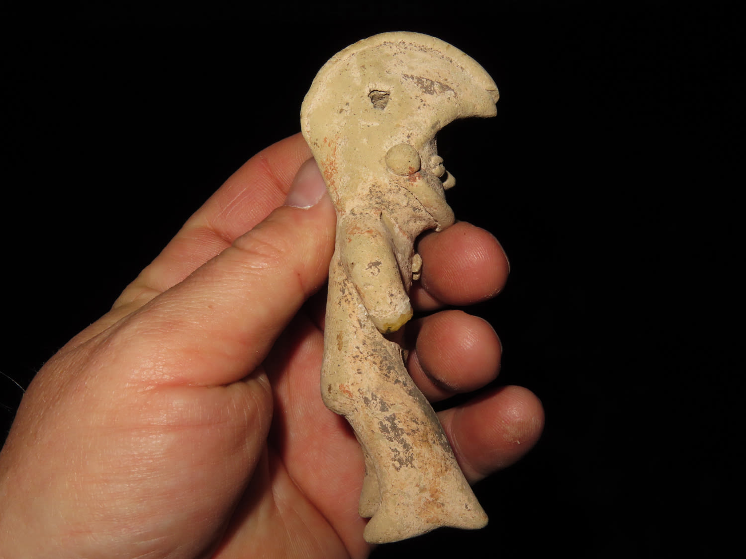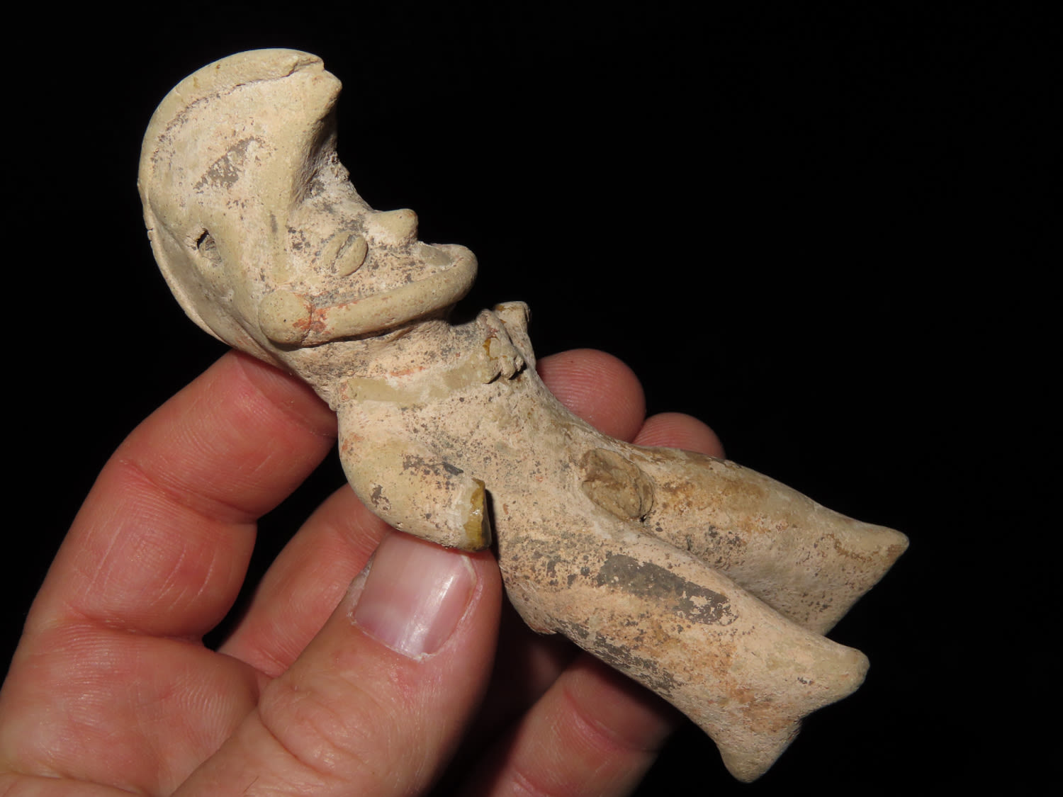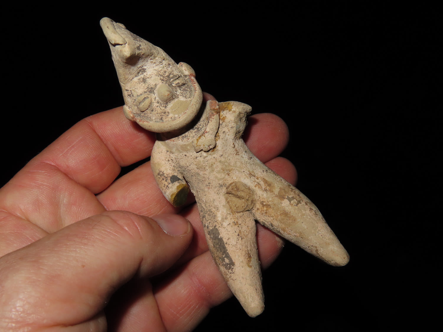 4 1/4″ HUMAN EFFIGY POTTERY FIGURE FROM MEXICO, NICE DETAILED ANCIENT PRE-COLUMBIAN ARTIFACT, STATUE, TALISMAN