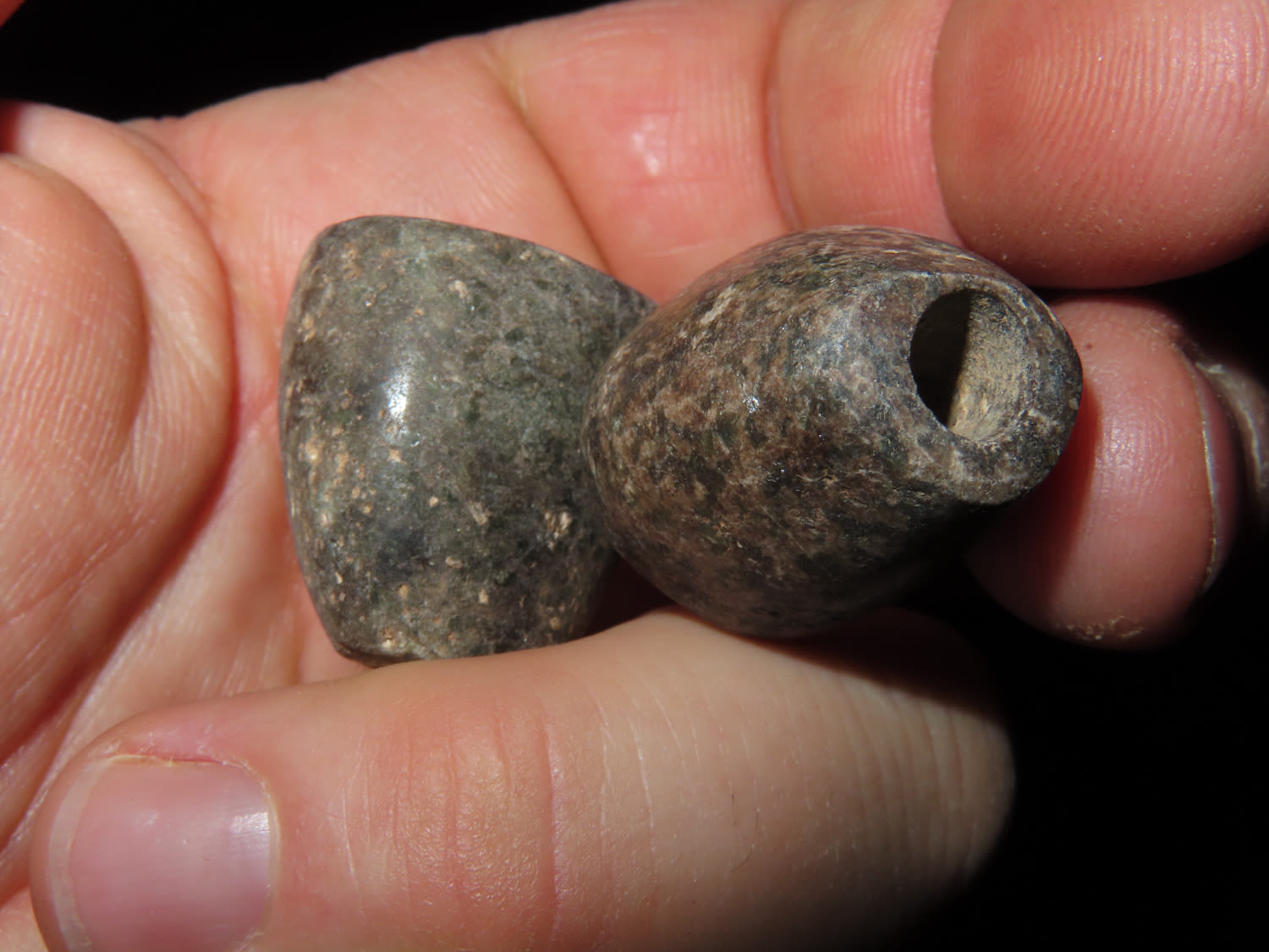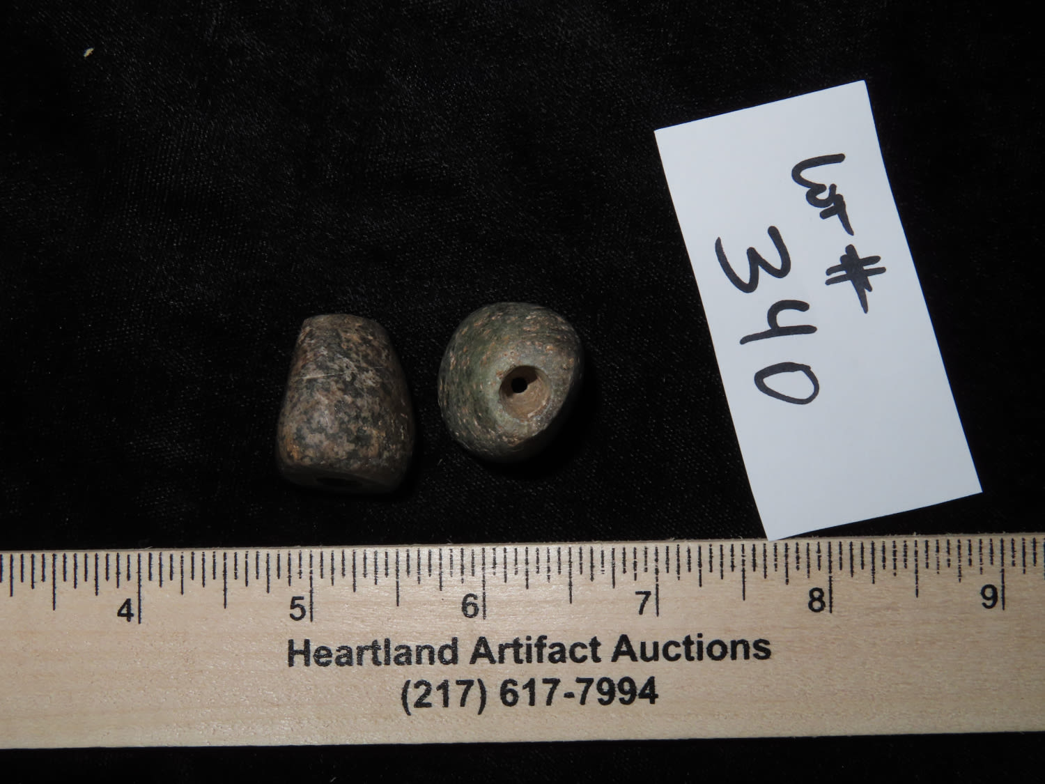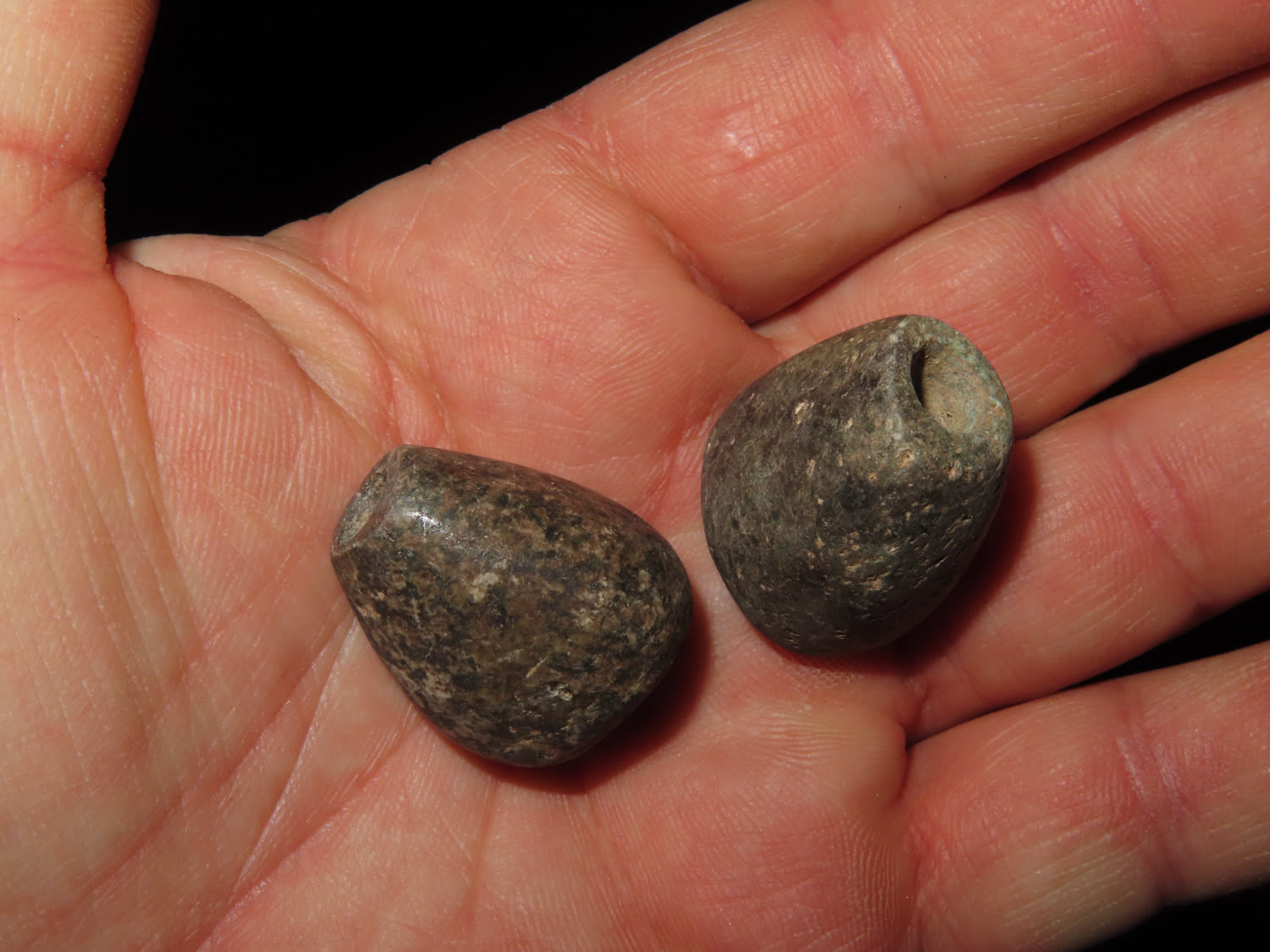 PAIR OF LARGE PRECOLUMBIAN MEZCALA DRILLED STONE BEADS, EX DR HARNER COLLECTION