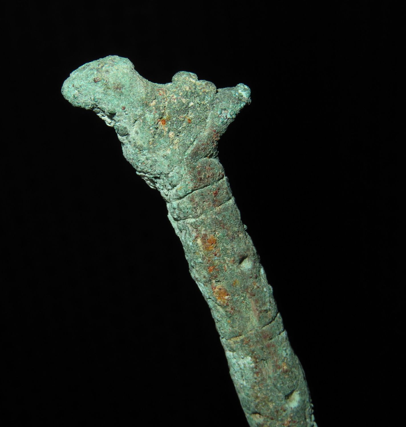 10 3/4″ MOCHE COPPER BIRD EFFIGY TUPU / CLOAK PIN, PRECOLUMBIAN ARTIFACT FROM PERU, EX FLOYD RITTER COLLECTION