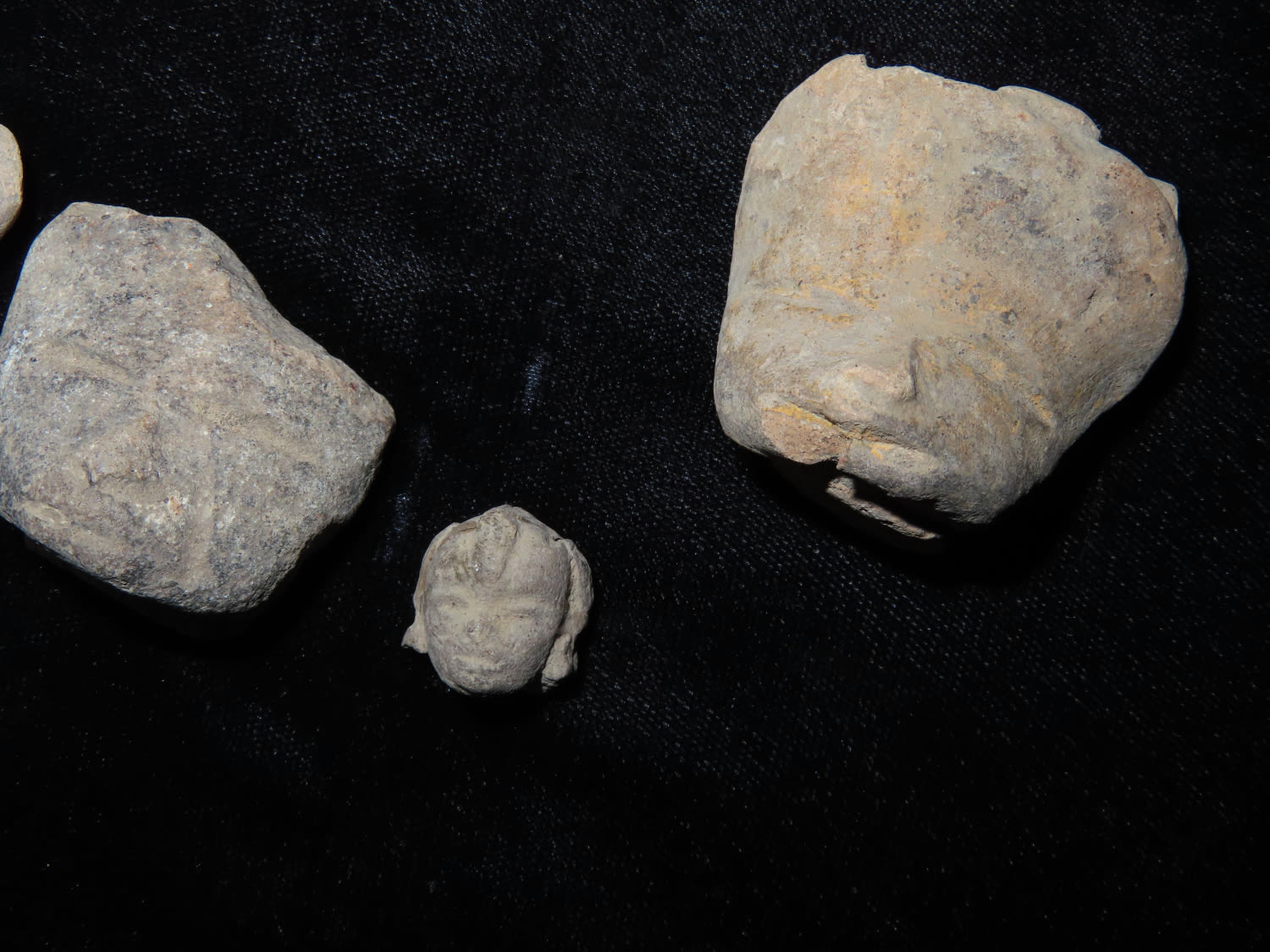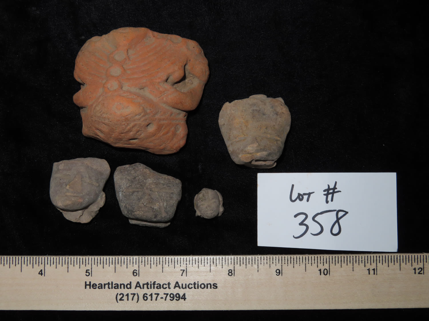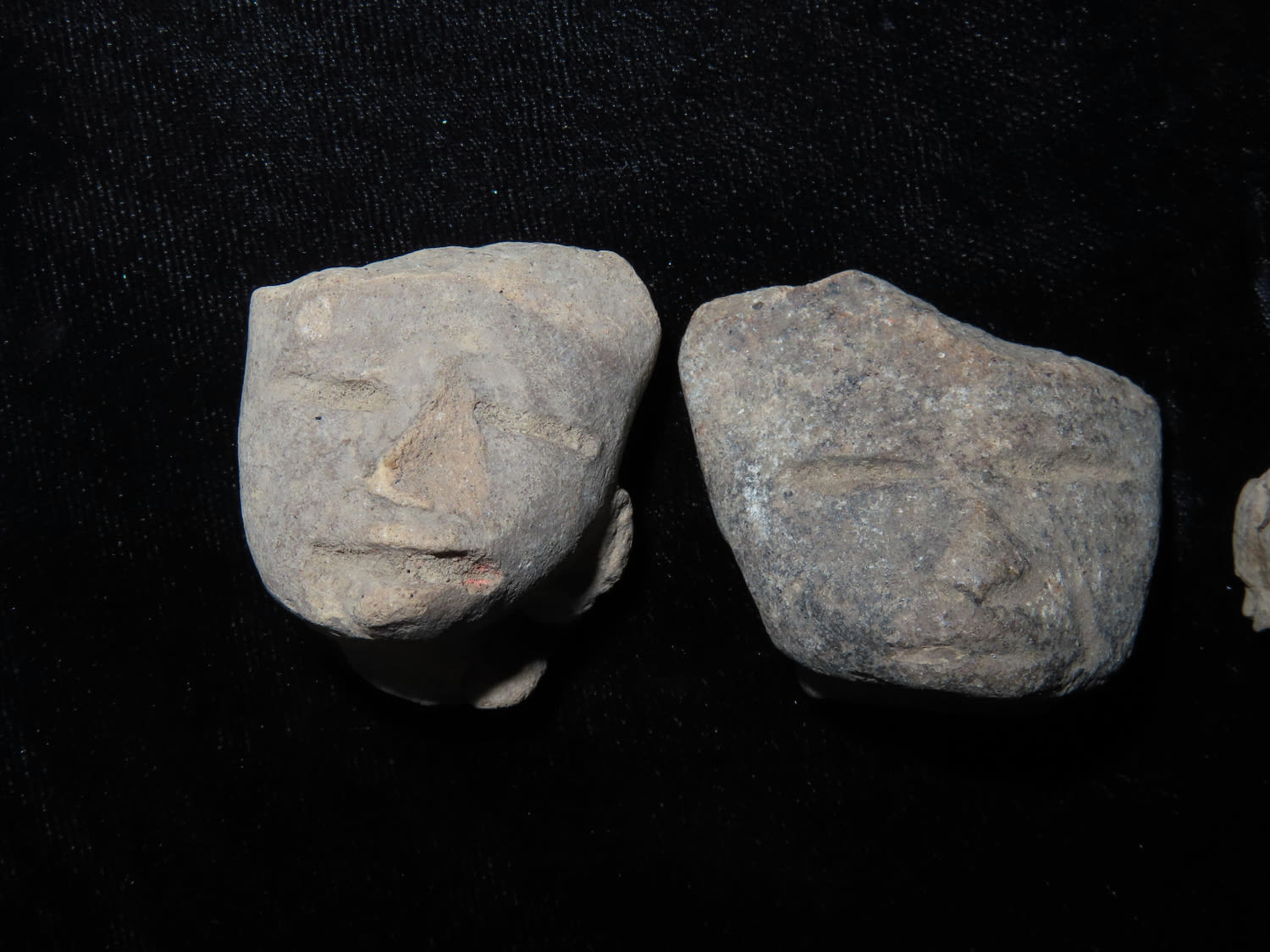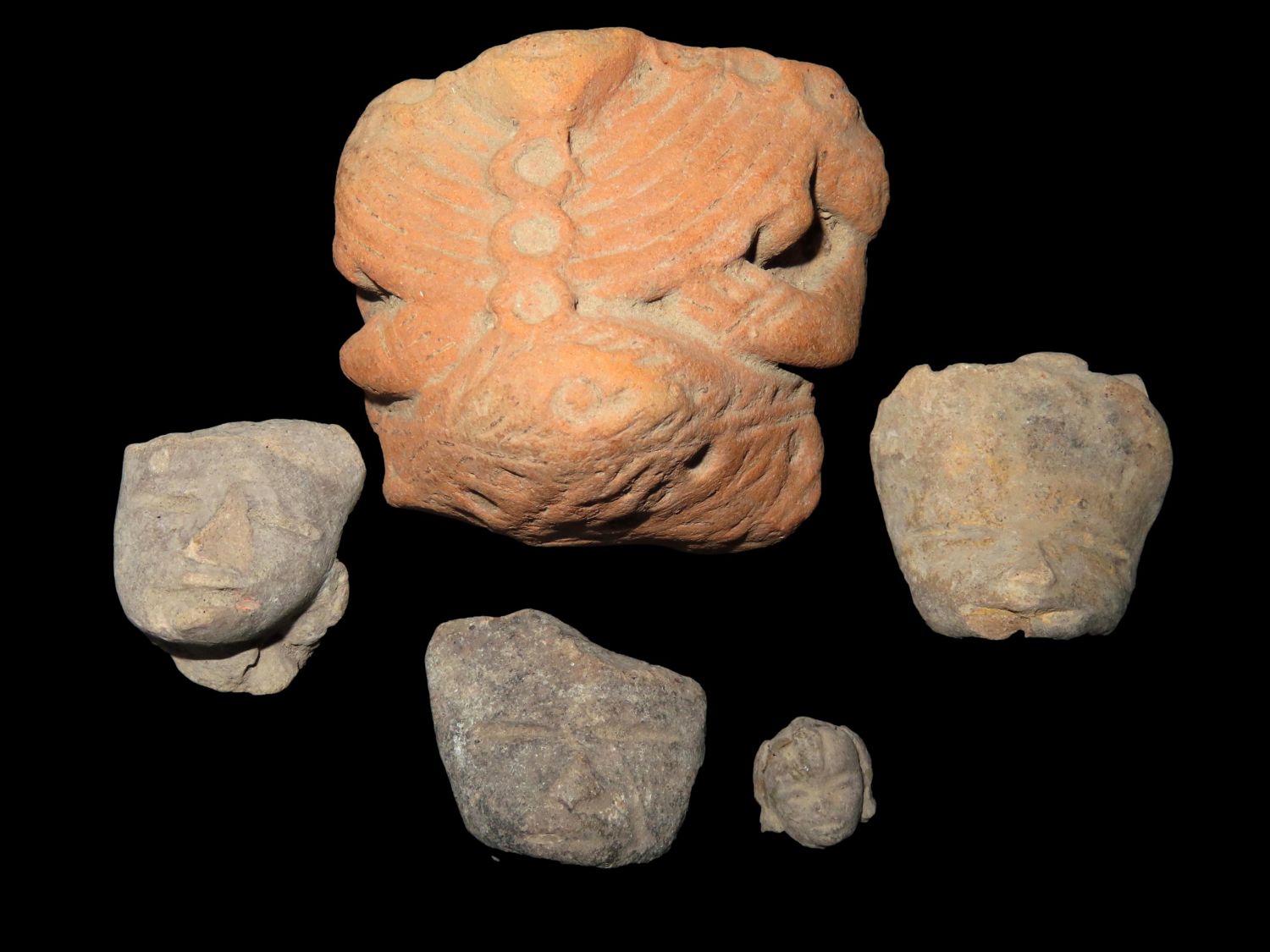 LOT OF 5 PRECOLUMBIAN HUMAN EFFIGY HEADS, NICE DETAILED EXAMPLES, PRE-COLUMBIAN ARTIFACTS FROM MEXICO