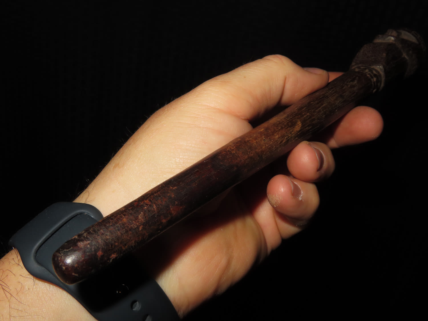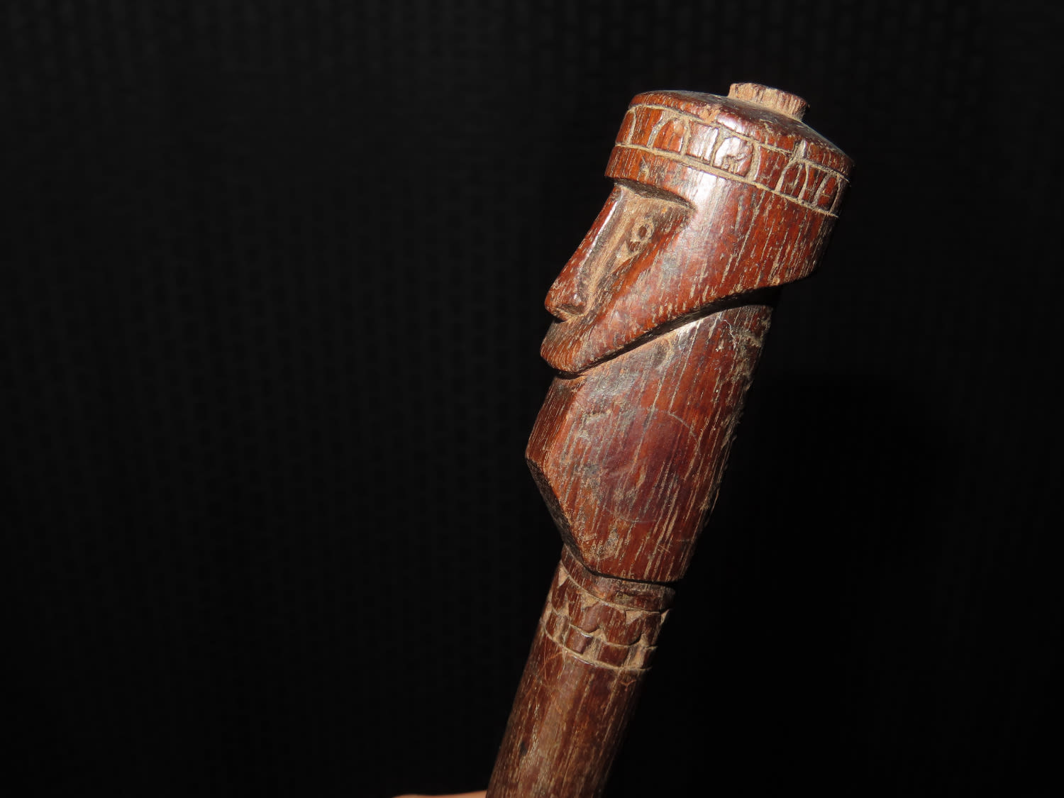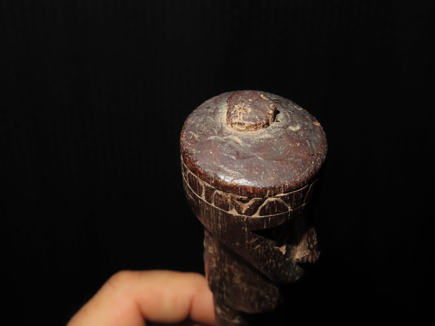 9 3/4″ INCA HUMAN EFFIGY FINIAL, ANCIENT PRECOLUMBIAN CARVED WOODEN ARTIFACT WITH GREAT DETAIL AND PATINA