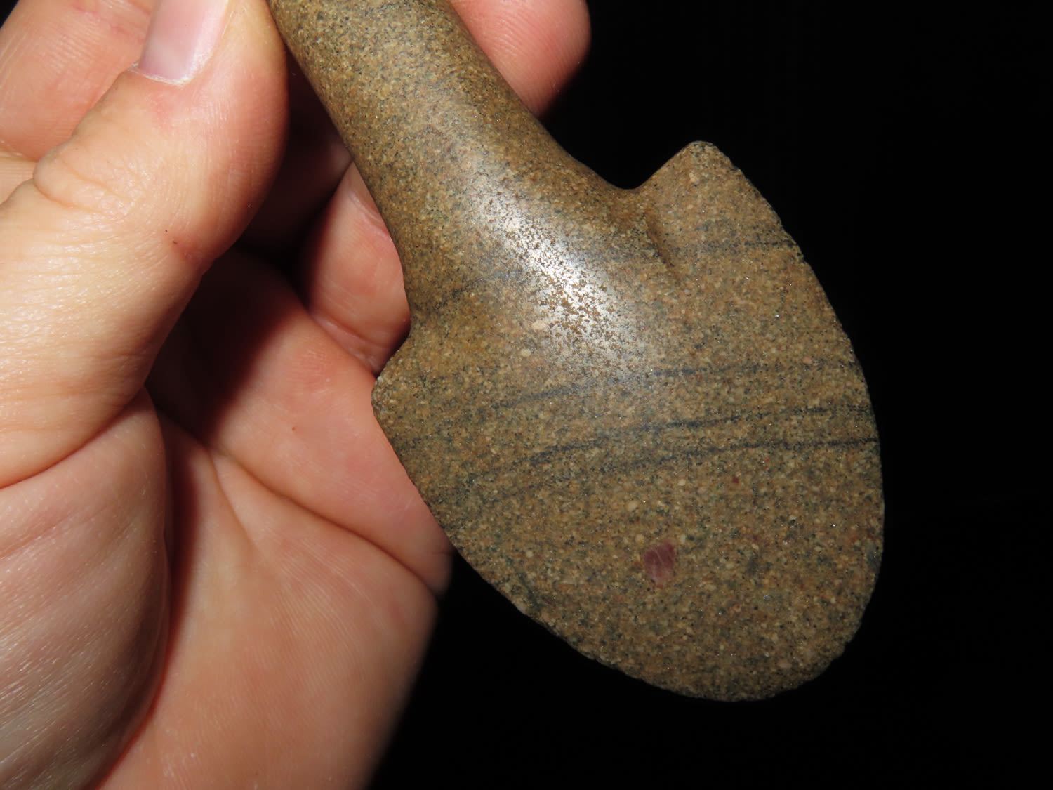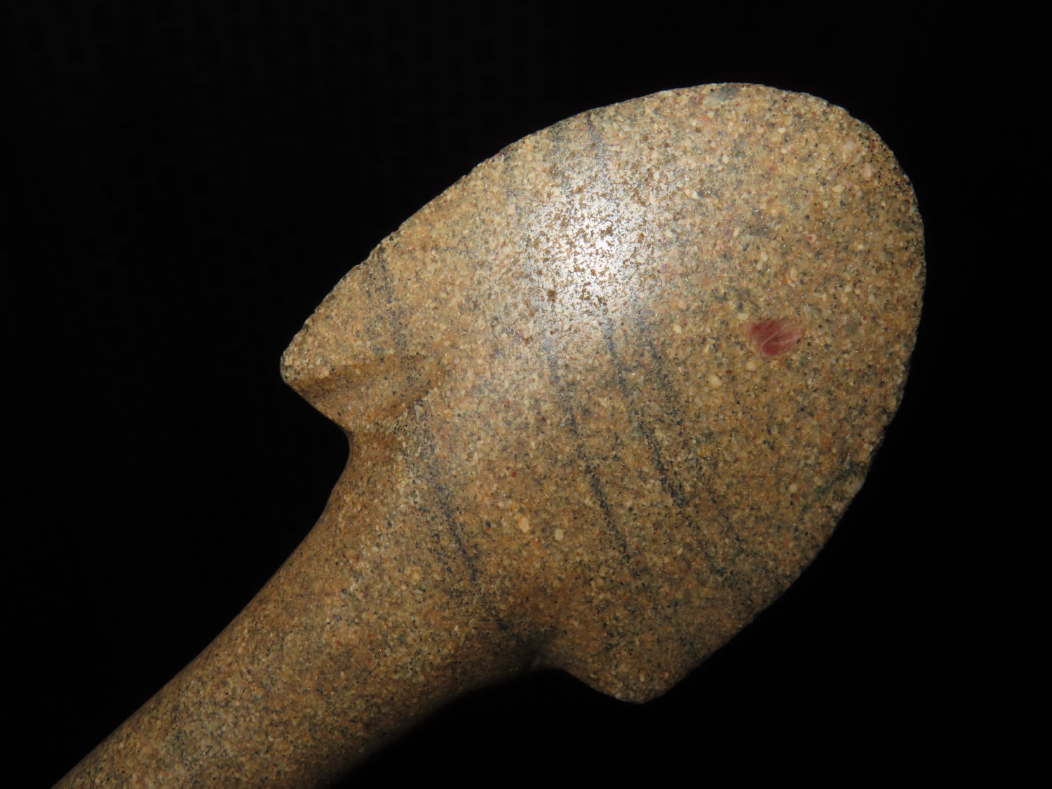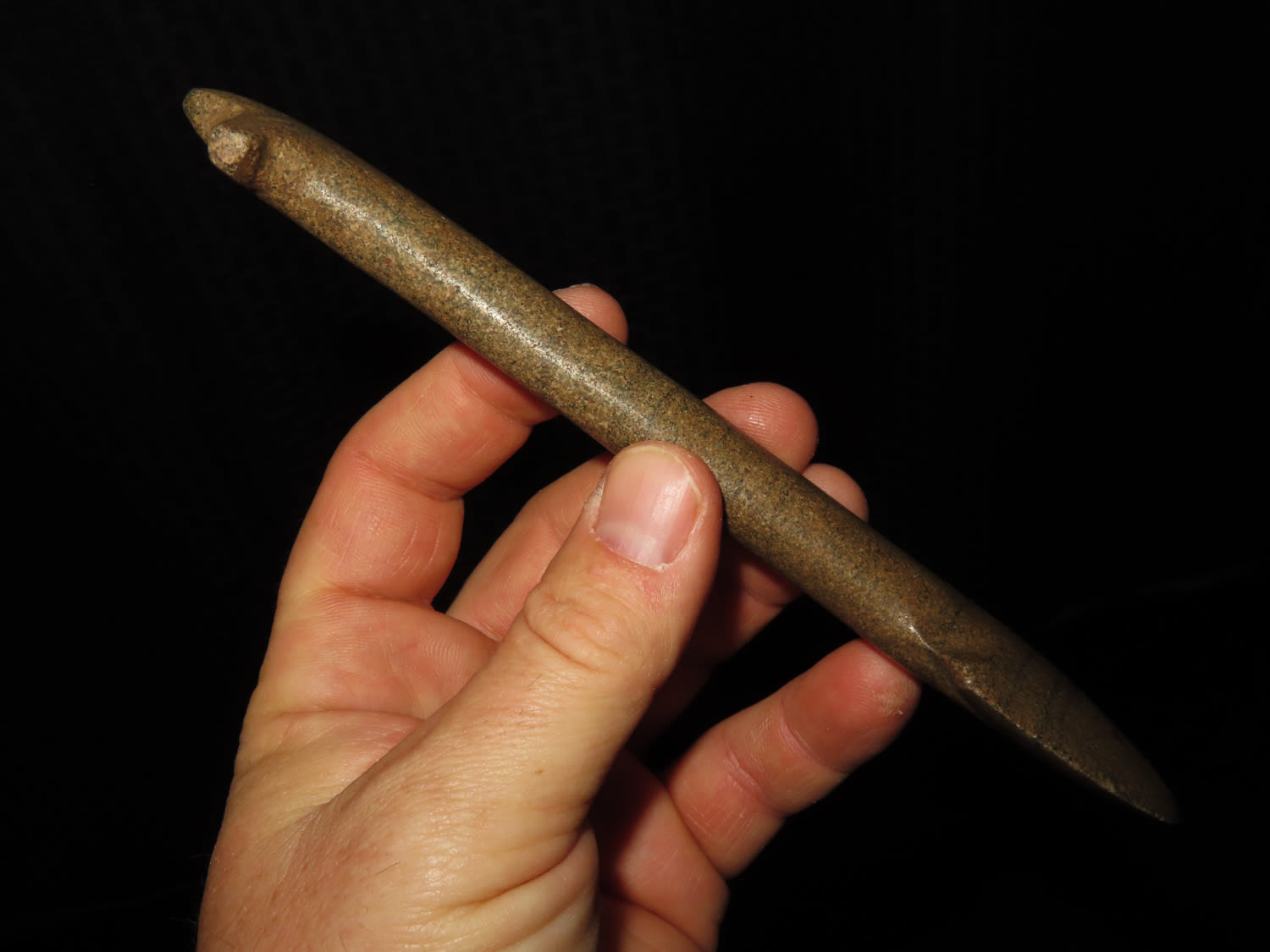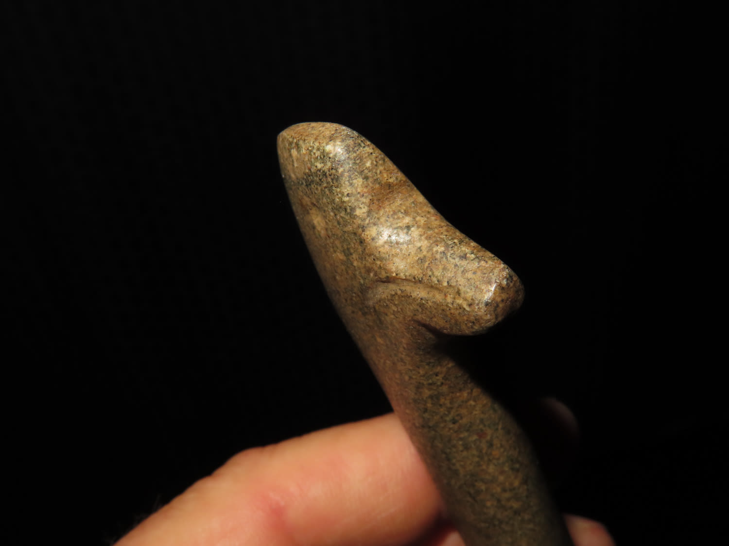 7 1/8″ RARE BIRD EFFIGY SPUD / SCEPTRE FROM PERU, VERY UNIQUE PIECE OF STONE, NICELY POLISHED, SHARP BIT, DETAILED BIRD HEAD ON TOP