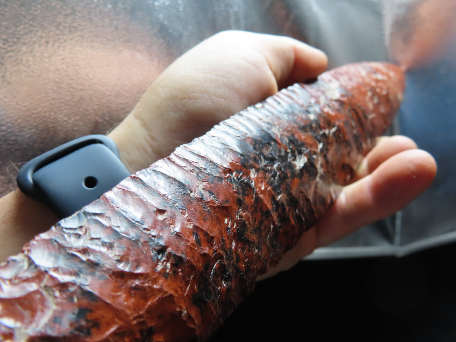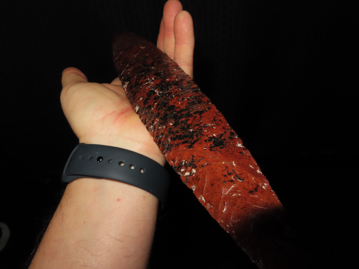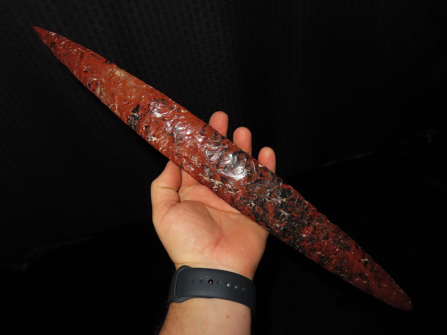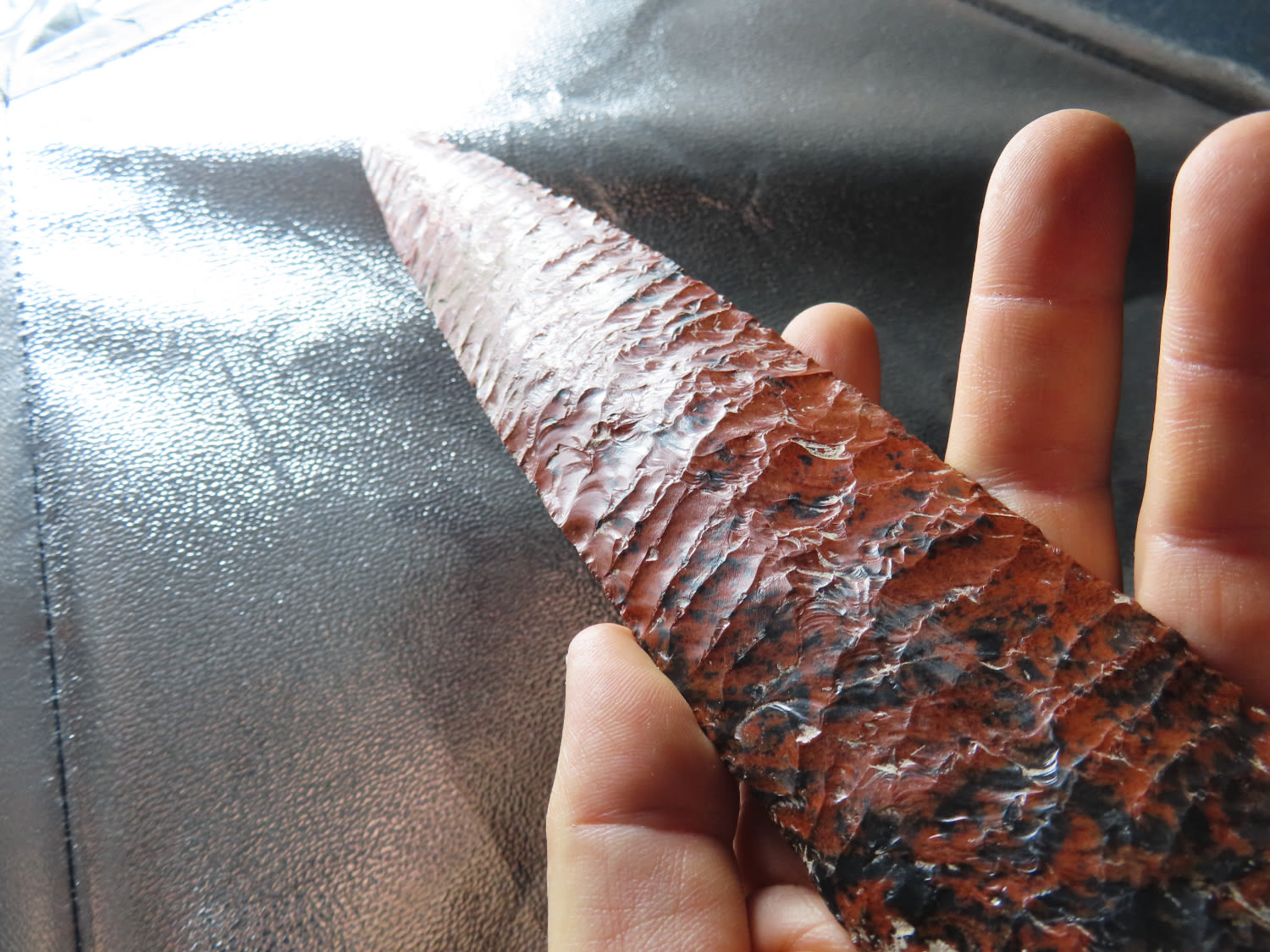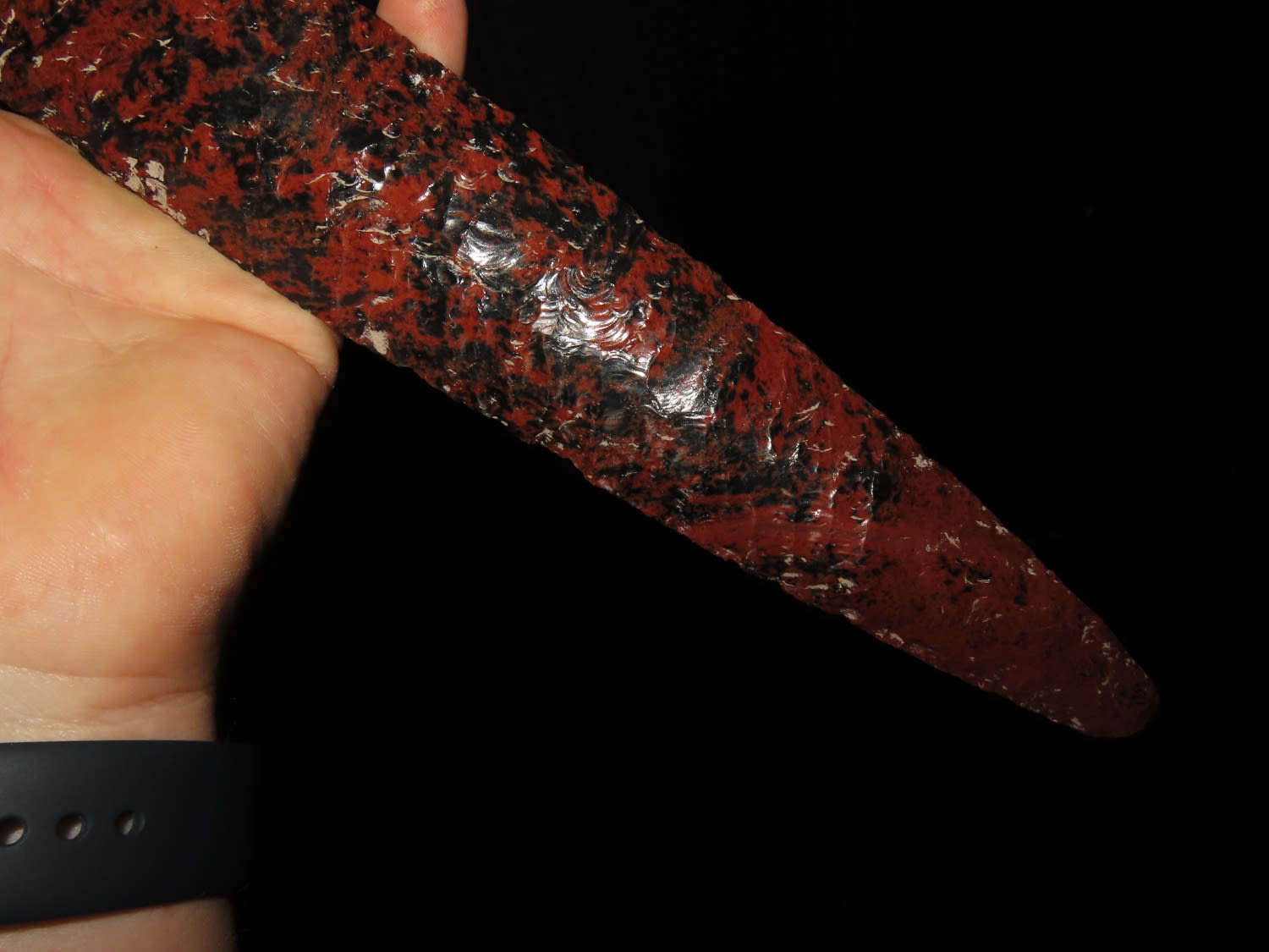 17 1/4″ MASSIVE COLIMA SWORD, ROY MOTLEY COA, FOUND NEAR THE NARANJO RIVER OUTSIDE OF COLIMA MEXICO, EX GEORGE & HELEN CONWAY, LEN WEIDNER, & BRANDON VANDERVER. INCLUDED ARE PICTURES OF THE ITEMS WHEN THEY WERE AQUIRED IN THE 1950’S, THEY WERE KEPT UNDER THE FLOOR BOARDS OF THE FINDERS HOUSE FOR SAFETY, WRAPPED UP IN BURLAP GUNNY SACKS. BROKEN & TIGHTLY GLUED IN ONE SPOT NEAR THE END