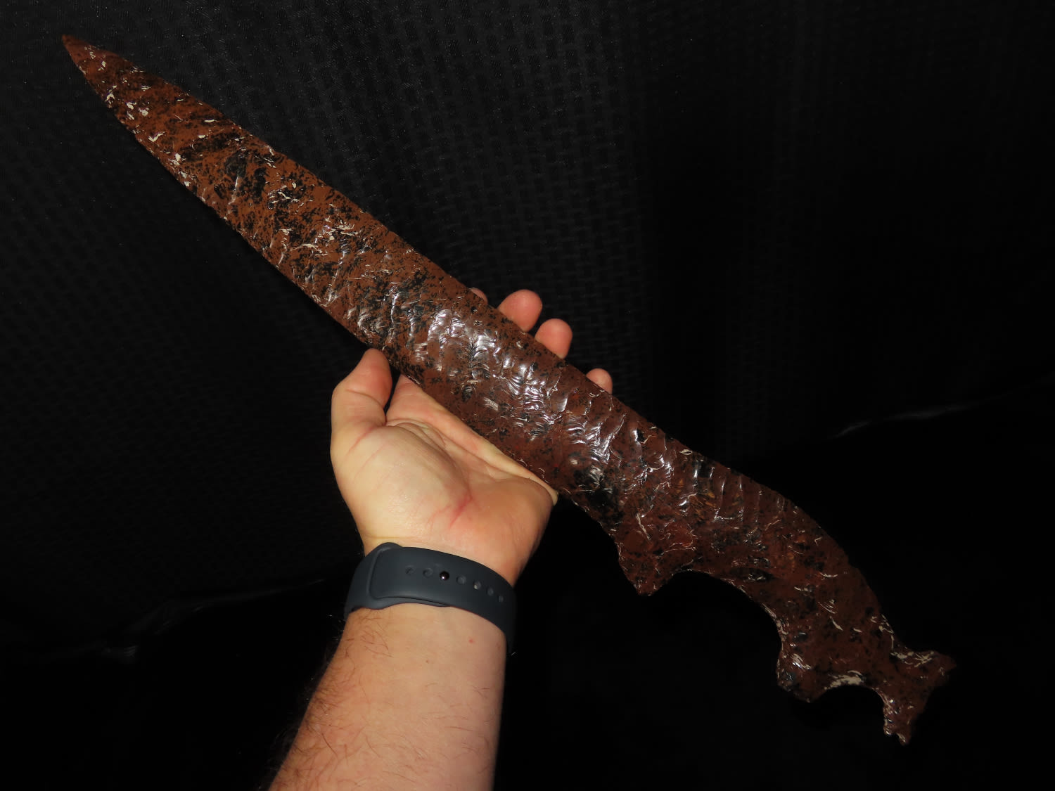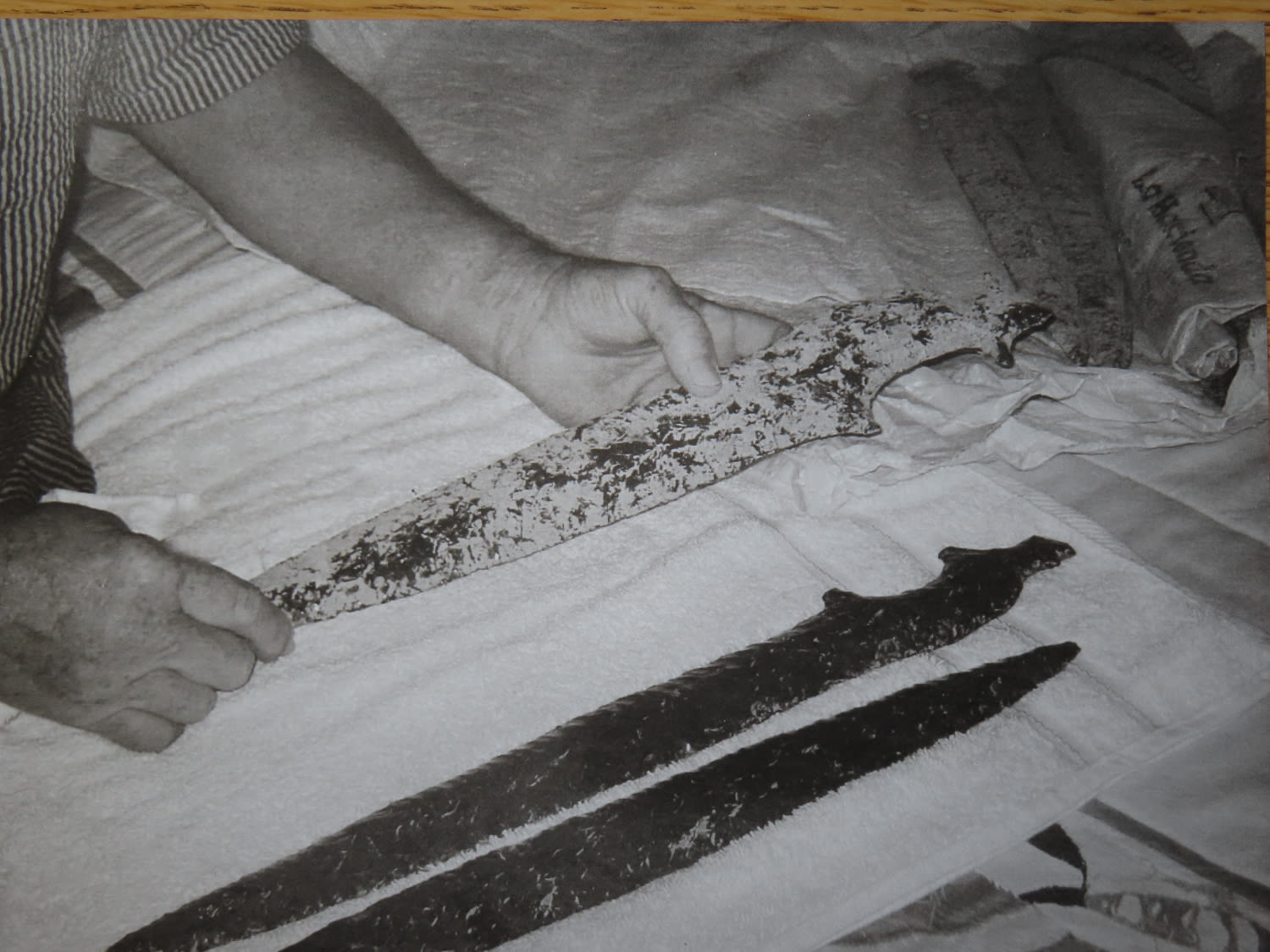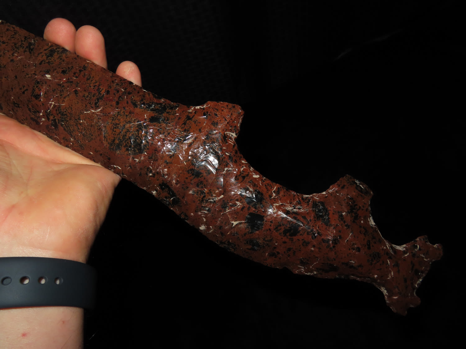 21 1/2″ MASSIVE COLIMA DOG EFFIGY SWORD, MOTLEY COA, FOUND NEAR THE NARANJO RIVER IN COLIMA MEXICO, EX GEORGE & HELEN CONWAY, LEN WEIDNER, BRANDON VANDERVER. INCLUDED ARE PICTURES OF THE ITEMS WHEN THEY WERE AQUIRED IN THE 1950’S, THEY WERE KEPT UNDER THE FLOOR BOARDS OF THE FINDERS HOUSE FOR SAFETY, WRAPPED UP IN BURLAP GUNNY SACKS. THIS IS THE LARGEST & FINEST EXAMPLE EVER SOLD IN AUCTION. THE FEW THAT HAVE SOLD IN THE PAST WERE USUALLY DAMAGED, BROKEN & GLUED, AND/OR 5-10″ SHORTER THAN THIS ONE. THIS ONE IS PRISTINE!!!