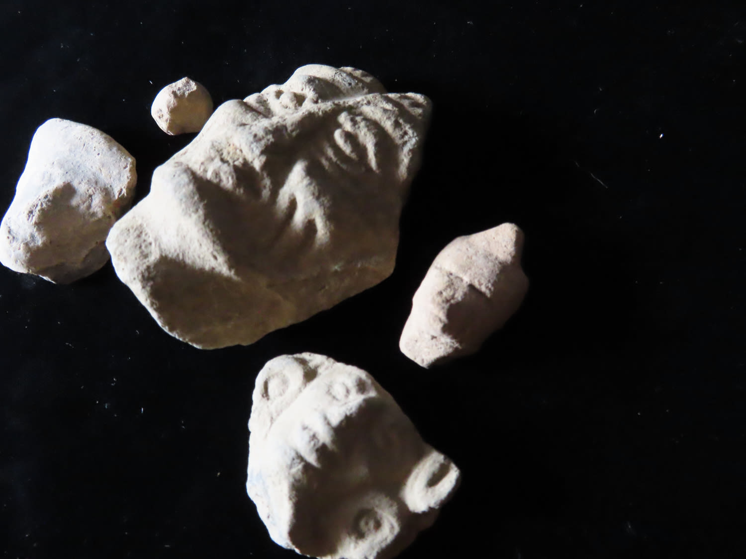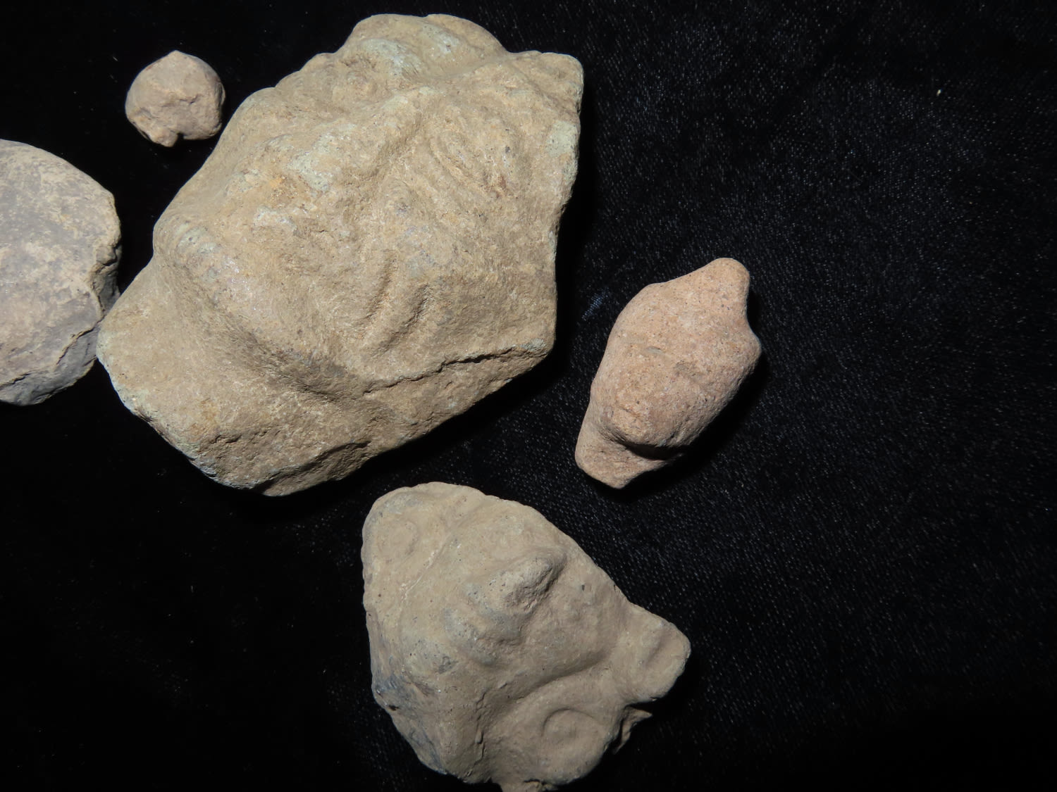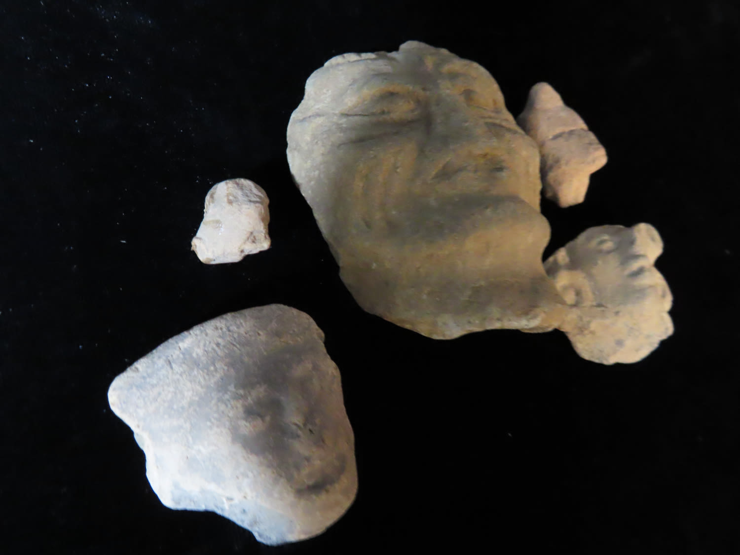 LOT OF 5 PRECOLUMBIAN HUMAN EFFIGY HEADS, NICE DETAILED EXAMPLES, PRE-COLUMBIAN ARTIFACTS FROM MEXICO