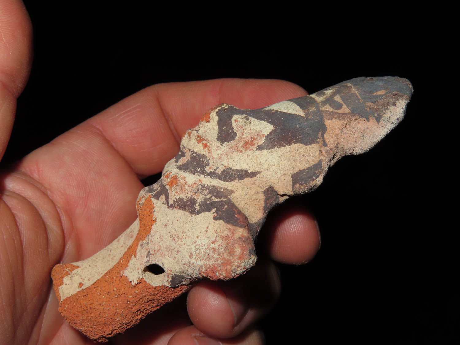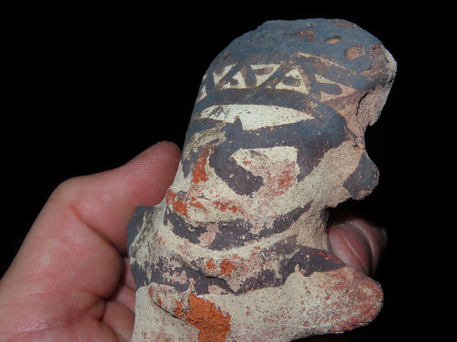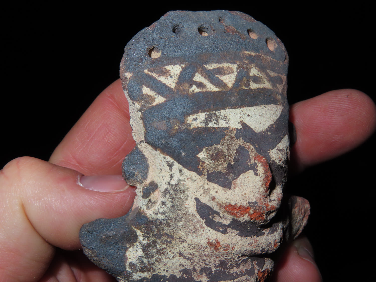 4″ PAINTED HUMAN EFFIGY CLAY FIGURE FROM MEXCIO, SOME DETERIORATION ON THE LEGS BUT OVERALL GREAT ORIGINAL CONDITION