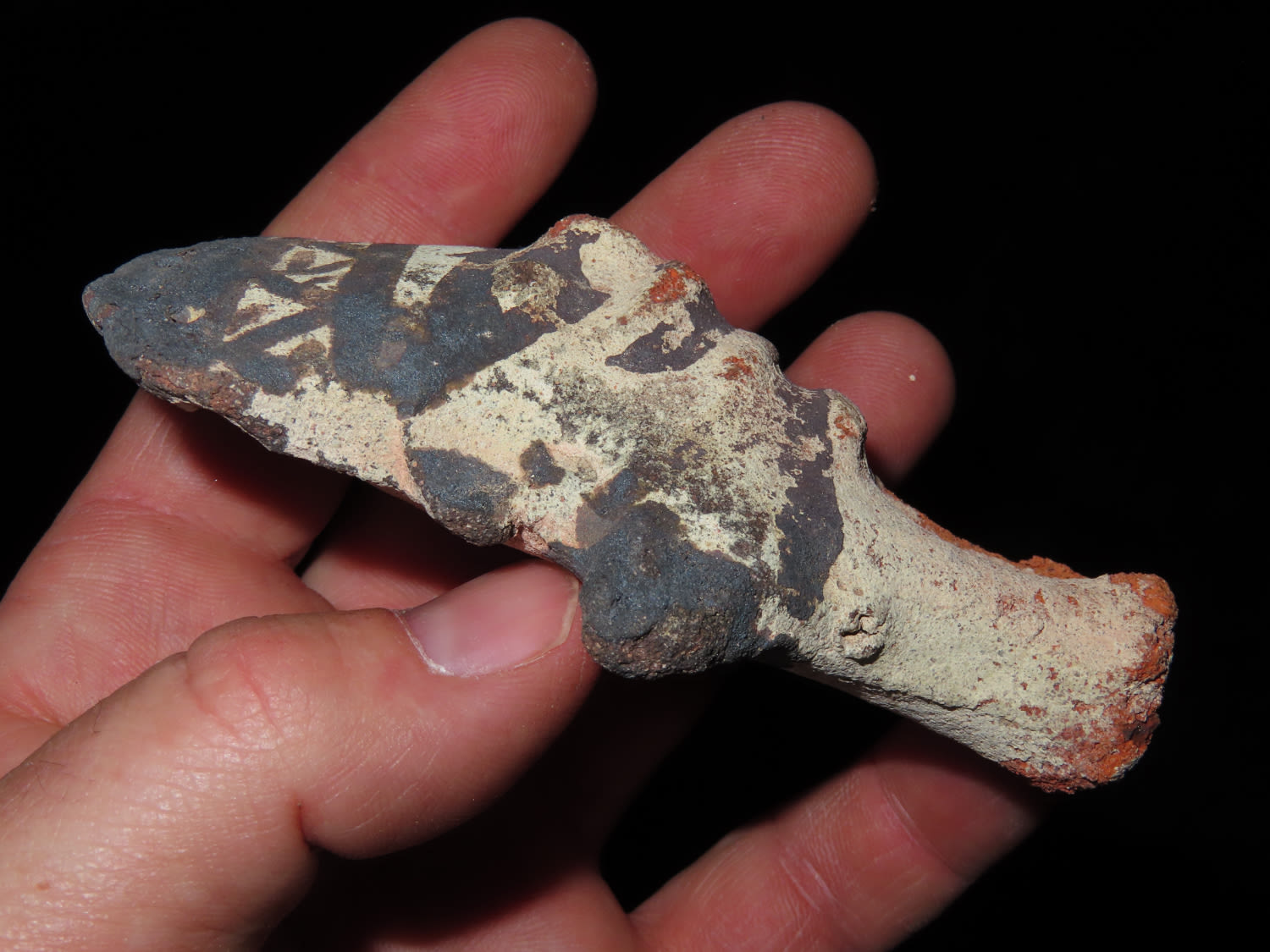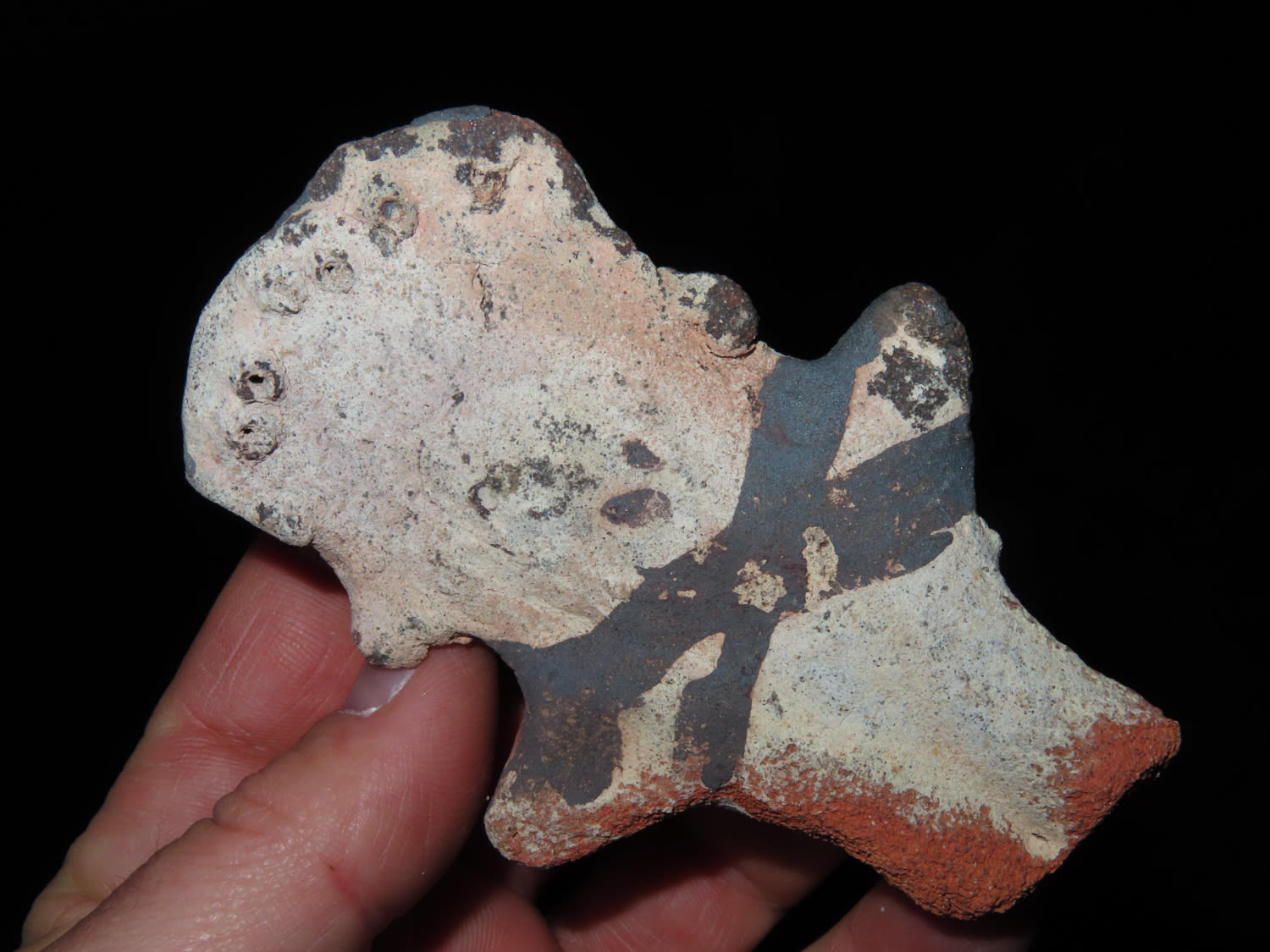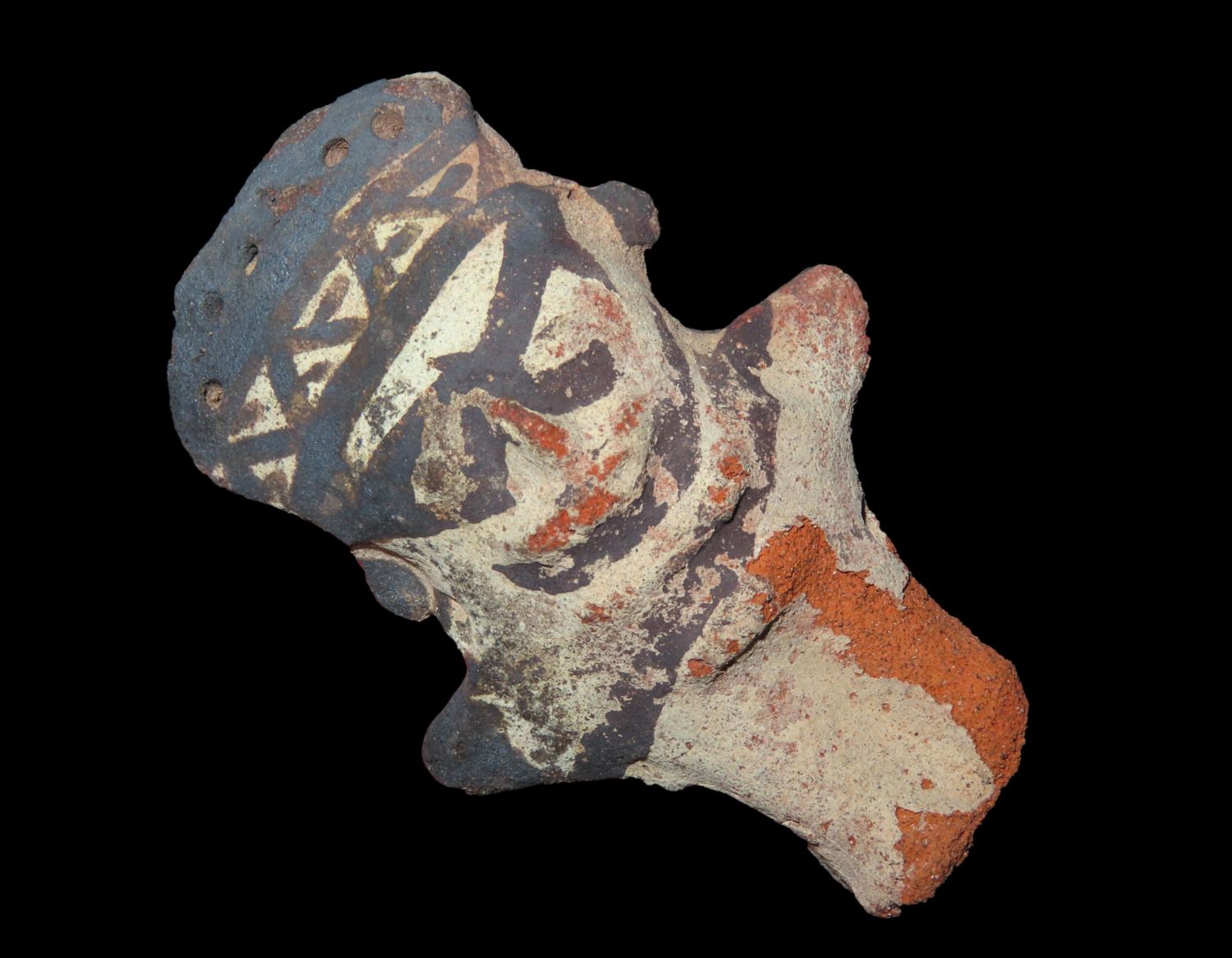 4″ PAINTED HUMAN EFFIGY CLAY FIGURE FROM MEXCIO, SOME DETERIORATION ON THE LEGS BUT OVERALL GREAT ORIGINAL CONDITION